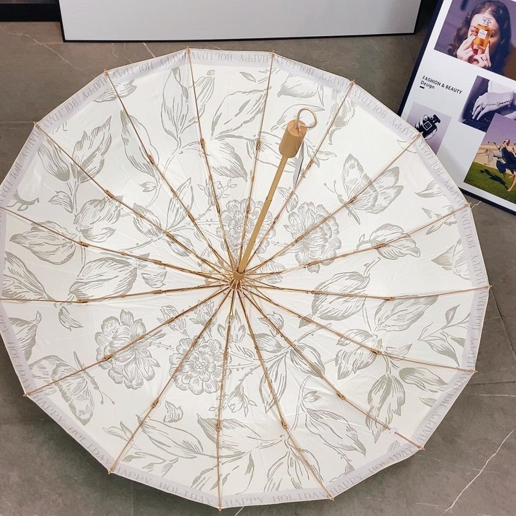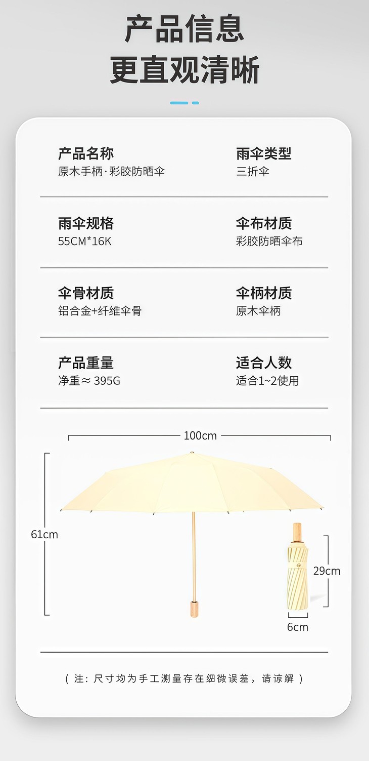 ❤️清仓雨季冲!💰39.9到手!真·铝合金!!🎀【原木伞柄16骨晴雨两用插画伞】,99%紫外线阻隔+UPF50+,0%零透光率。能抗9级大风🌬️