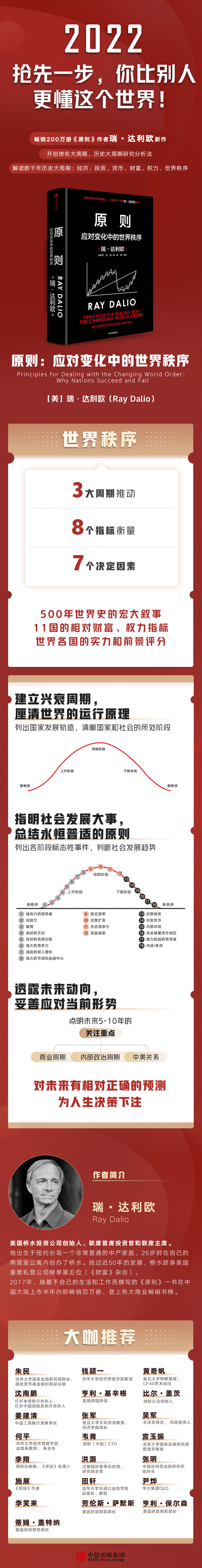 这本书的分析和探究建立在达利欧独创的债务大周期、历史大周期的基础之上,揭示的是变化背后的永恒和普遍的力量,以此展望未来,搞清世界的运行原理,总结出永恒普适的原则,从而妥善地应对当前形势。