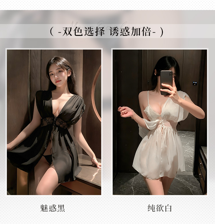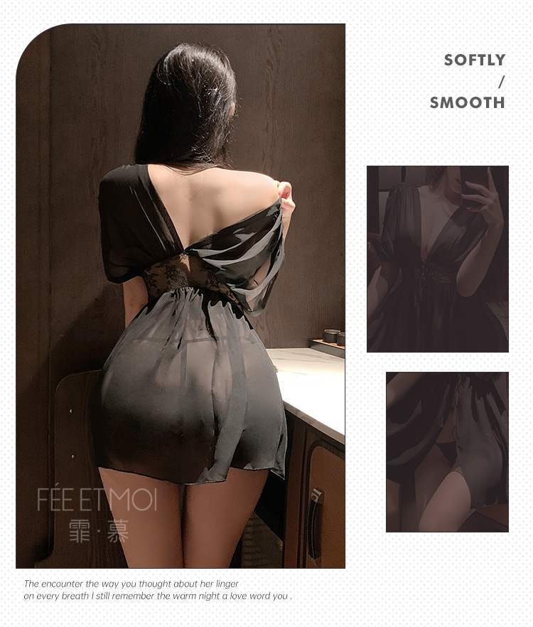 霏慕 法式深V宽袖透视睡袍ZY69 情趣内衣性感纯欲露臀免脱燃情之夜