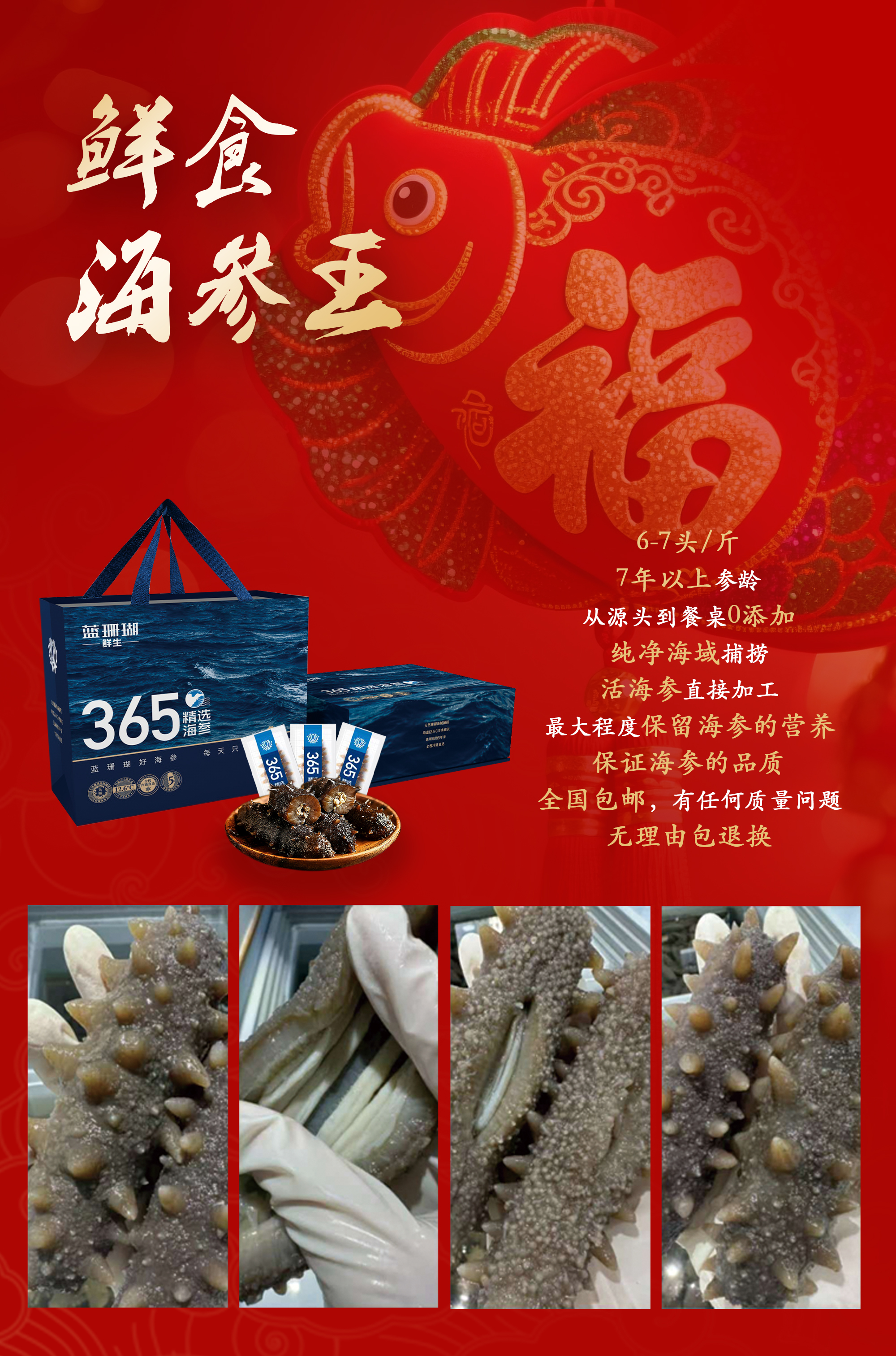 【春节好礼】999元4斤鲜食海参王