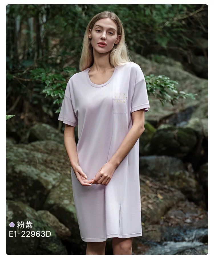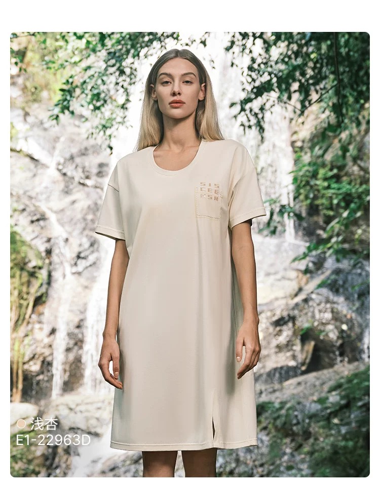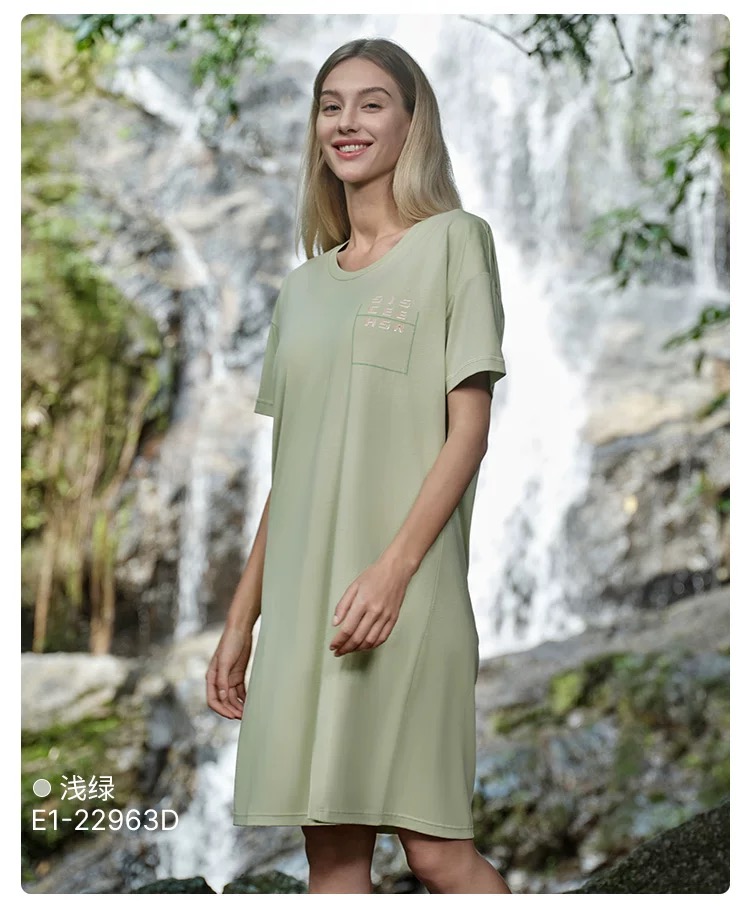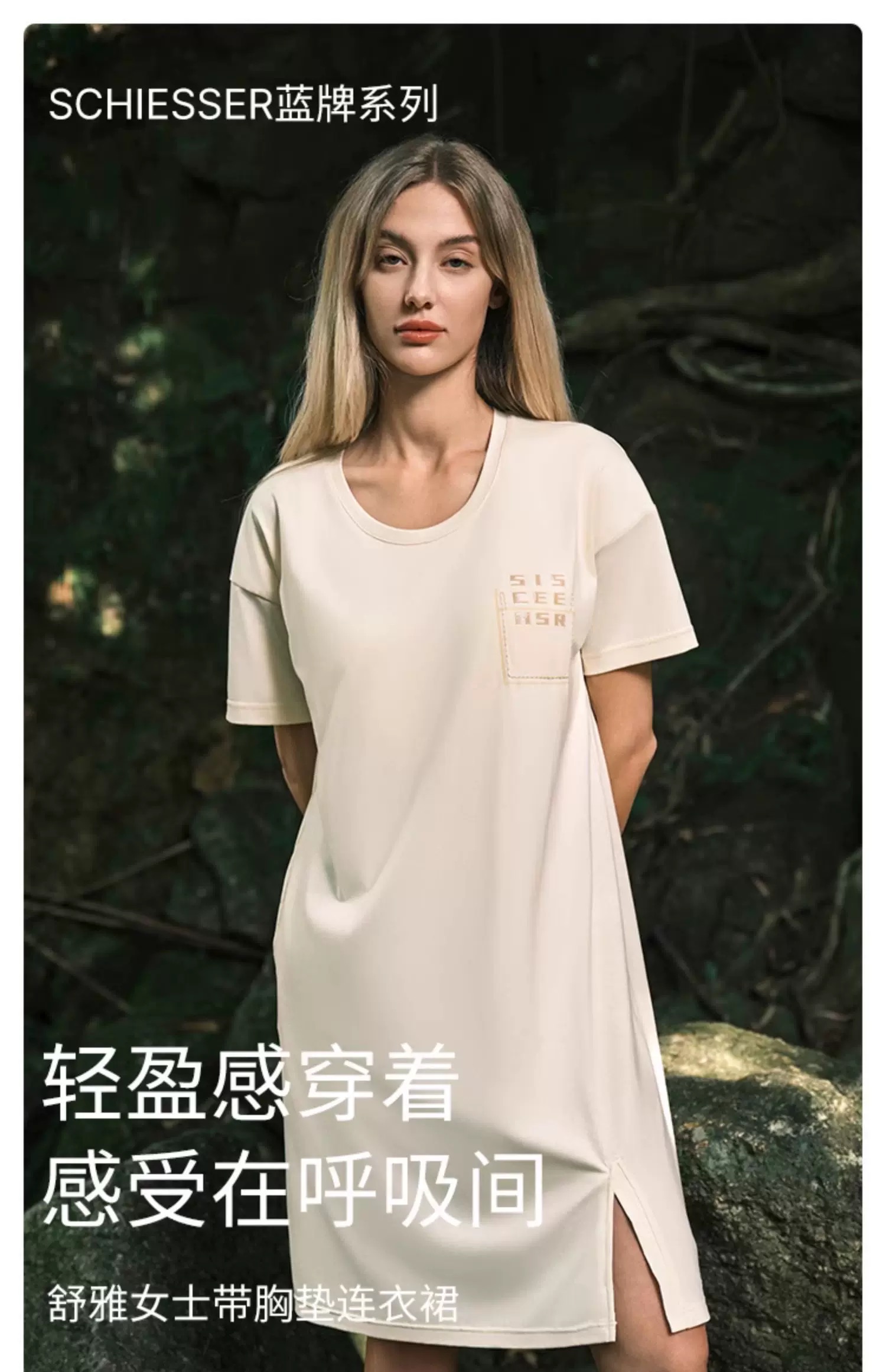 【透气棉带胸垫】SCHIESSER德国舒雅女士春夏纯棉软糯亲肤透气带胸垫家居裙E1-22963D