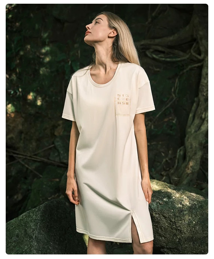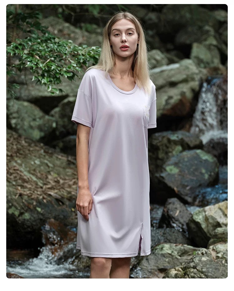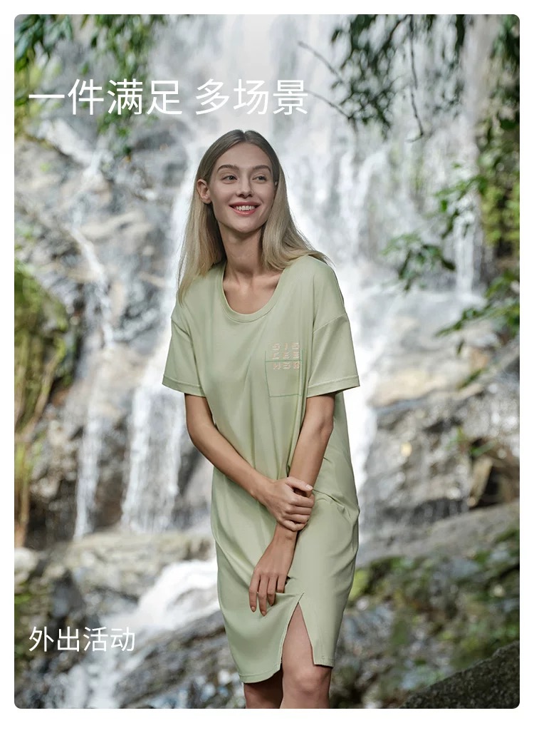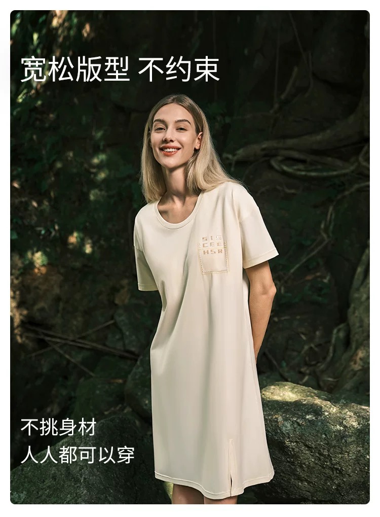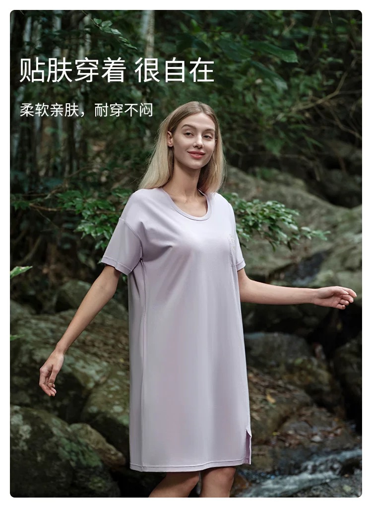 【透气棉带胸垫】SCHIESSER德国舒雅女士春夏纯棉软糯亲肤透气带胸垫家居裙E1-22963D