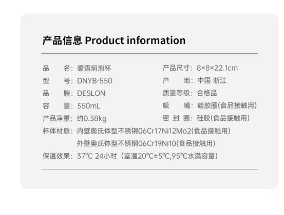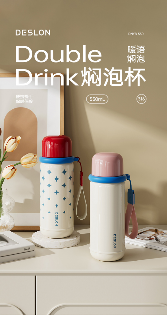 🔥颜值品质在线,杯身质感满满【德世朗DNYB-550暖语双饮焖泡杯】💥方便随身携带的水杯🧀不锈钢真空内胆 放心用🎁保温保冷效果都不错,很适合日常通勤