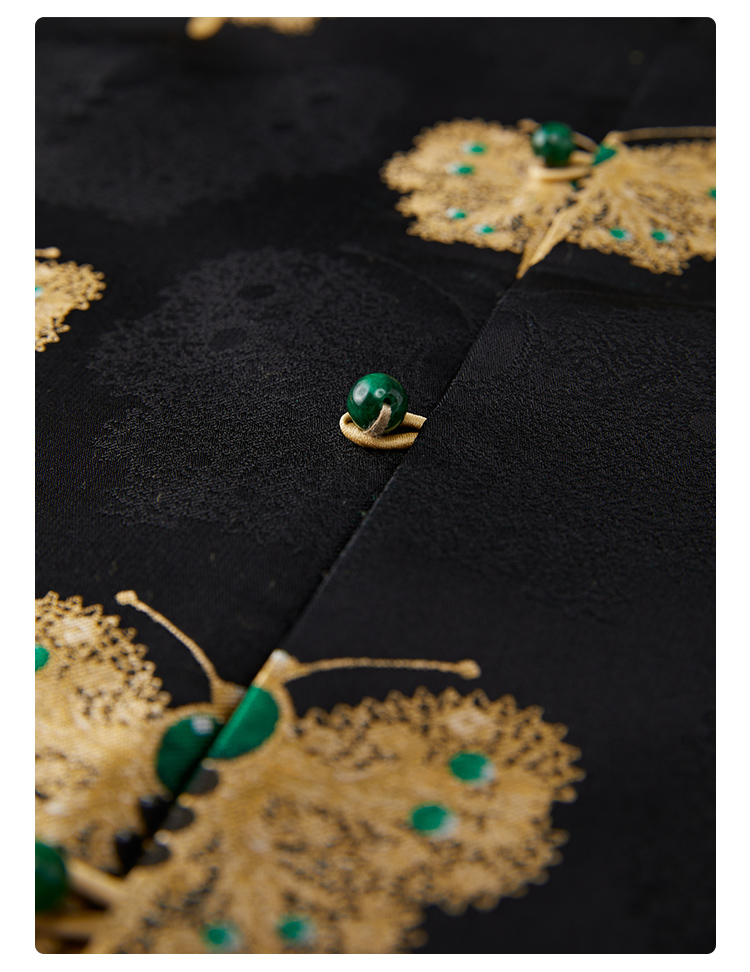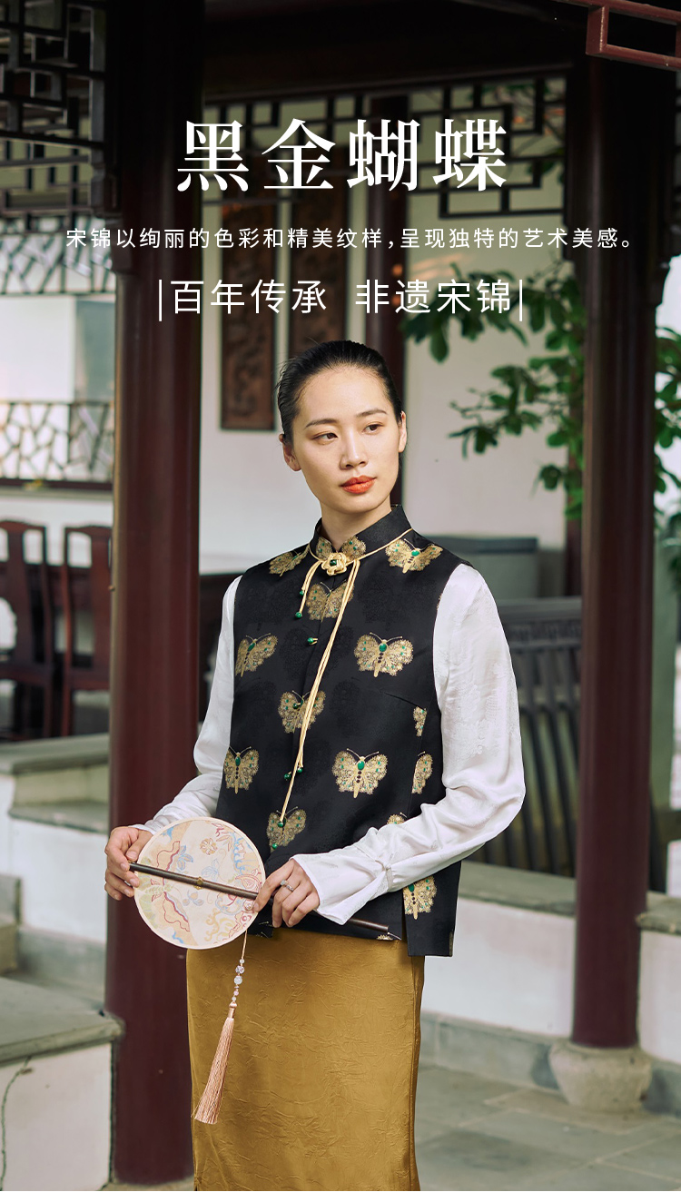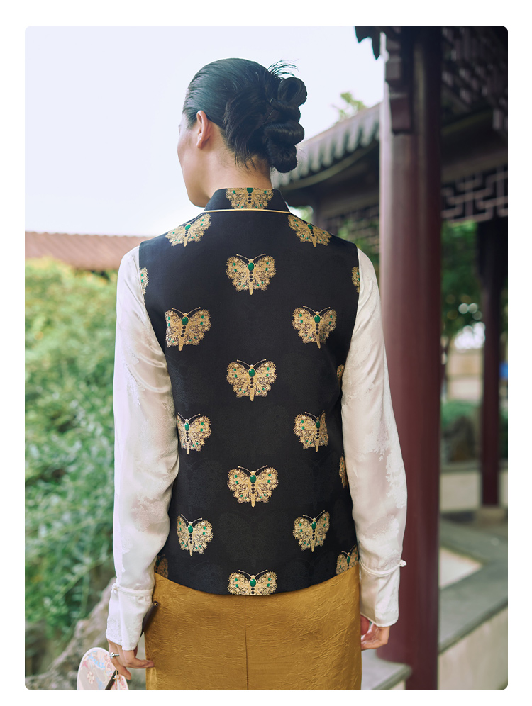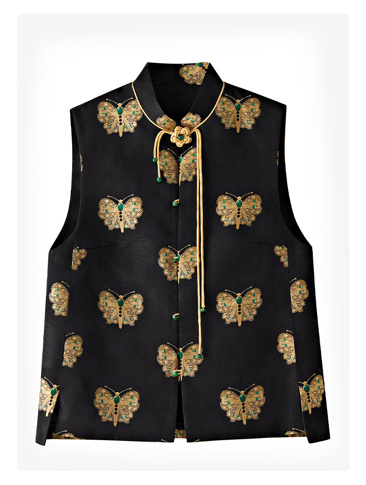 SAINTJOY/上久楷 女式宋锦马甲 中式上衣 中国风 复古 黑金蝴蝶 黑金绿 CY1044207005