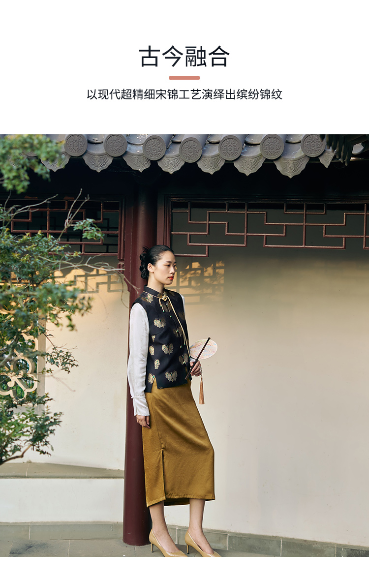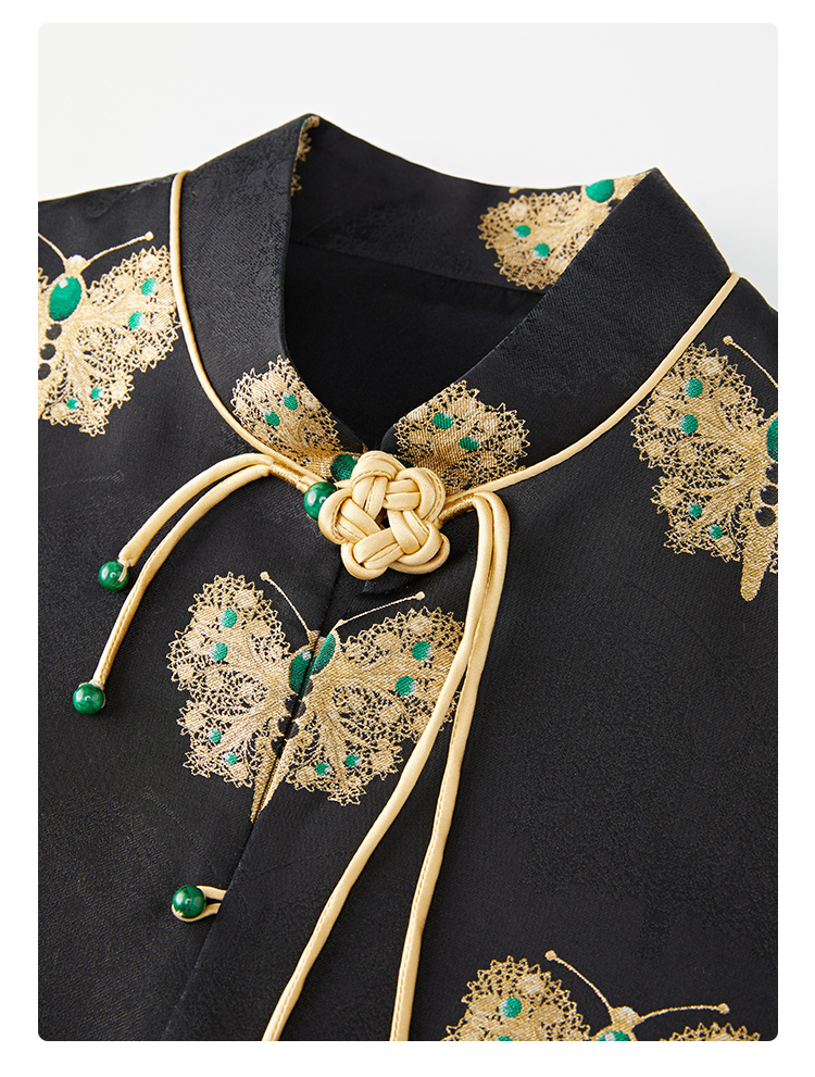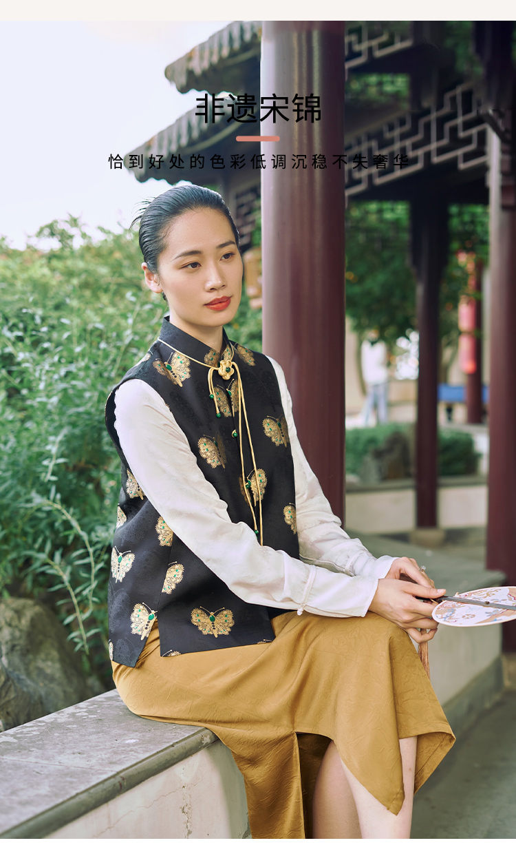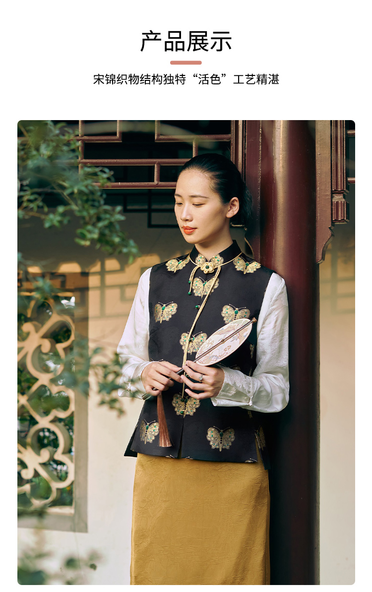 SAINTJOY/上久楷 女式宋锦马甲 中式上衣 中国风 复古 黑金蝴蝶 黑金绿 CY1044207005