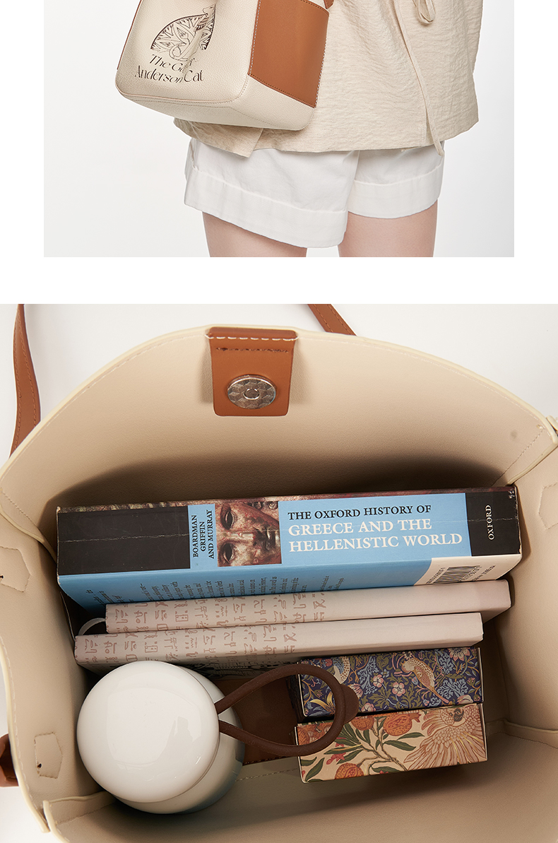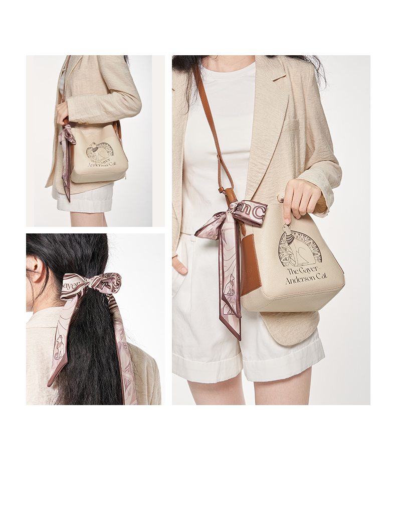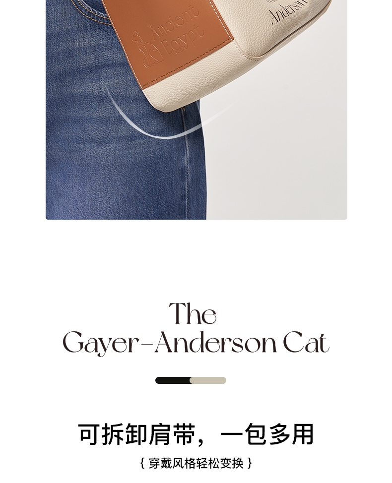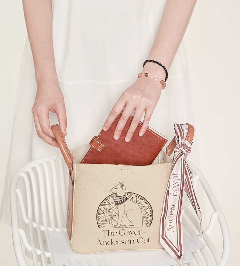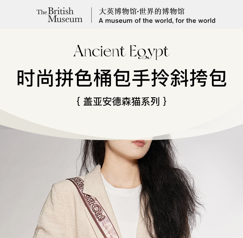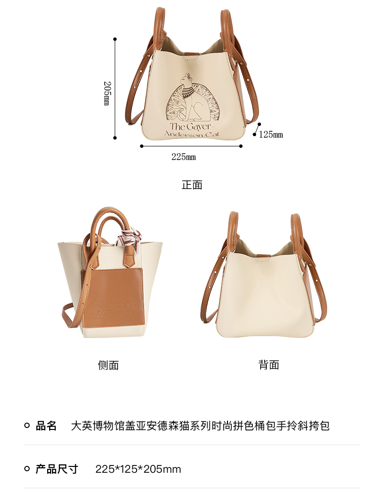 大英博物馆 盖亚·安德森猫系列 时尚拼色桶包手拎斜挎包