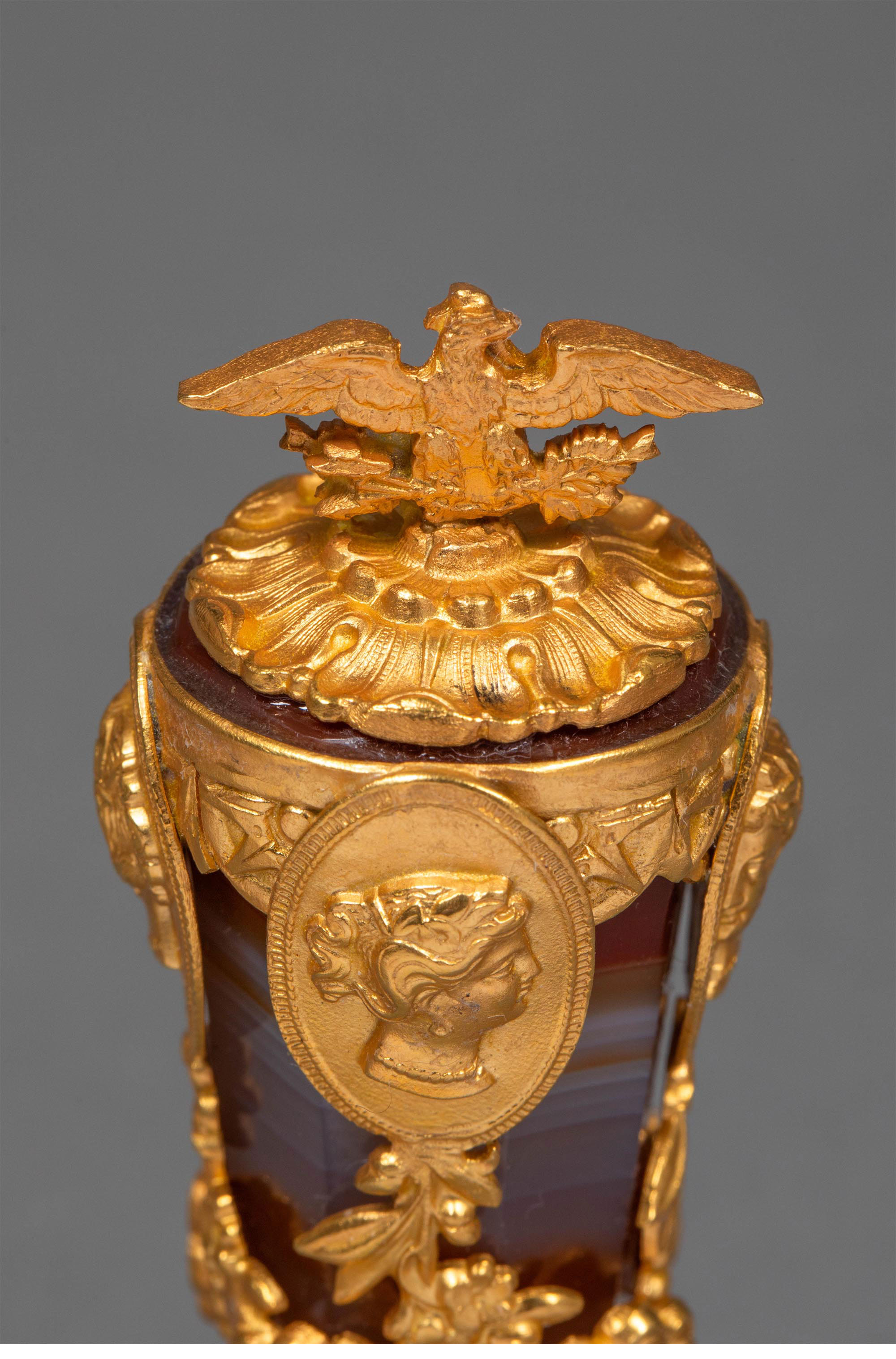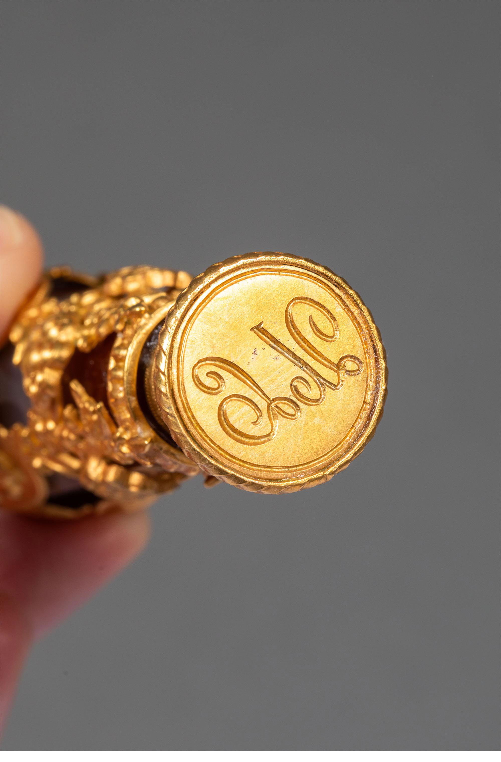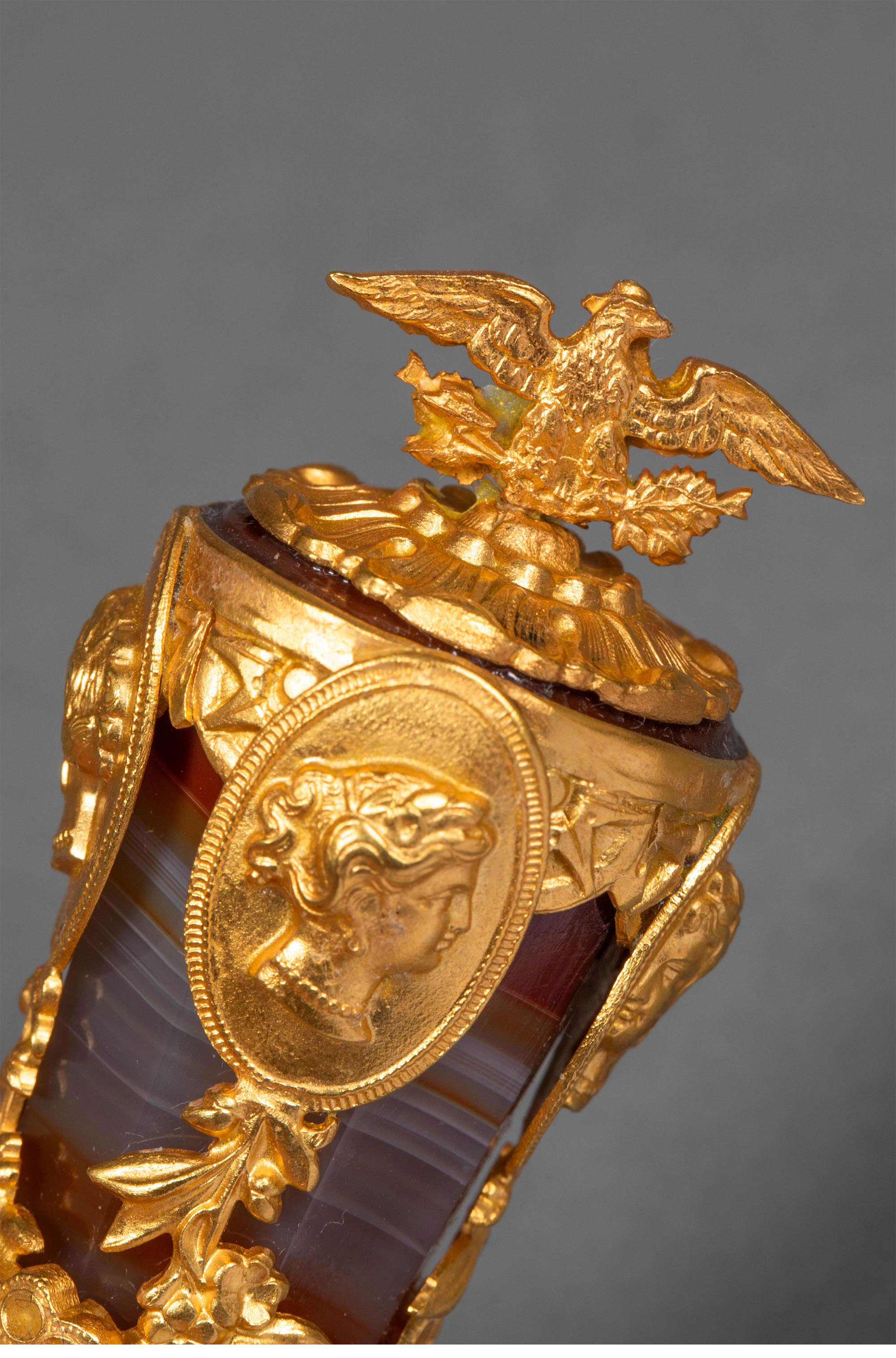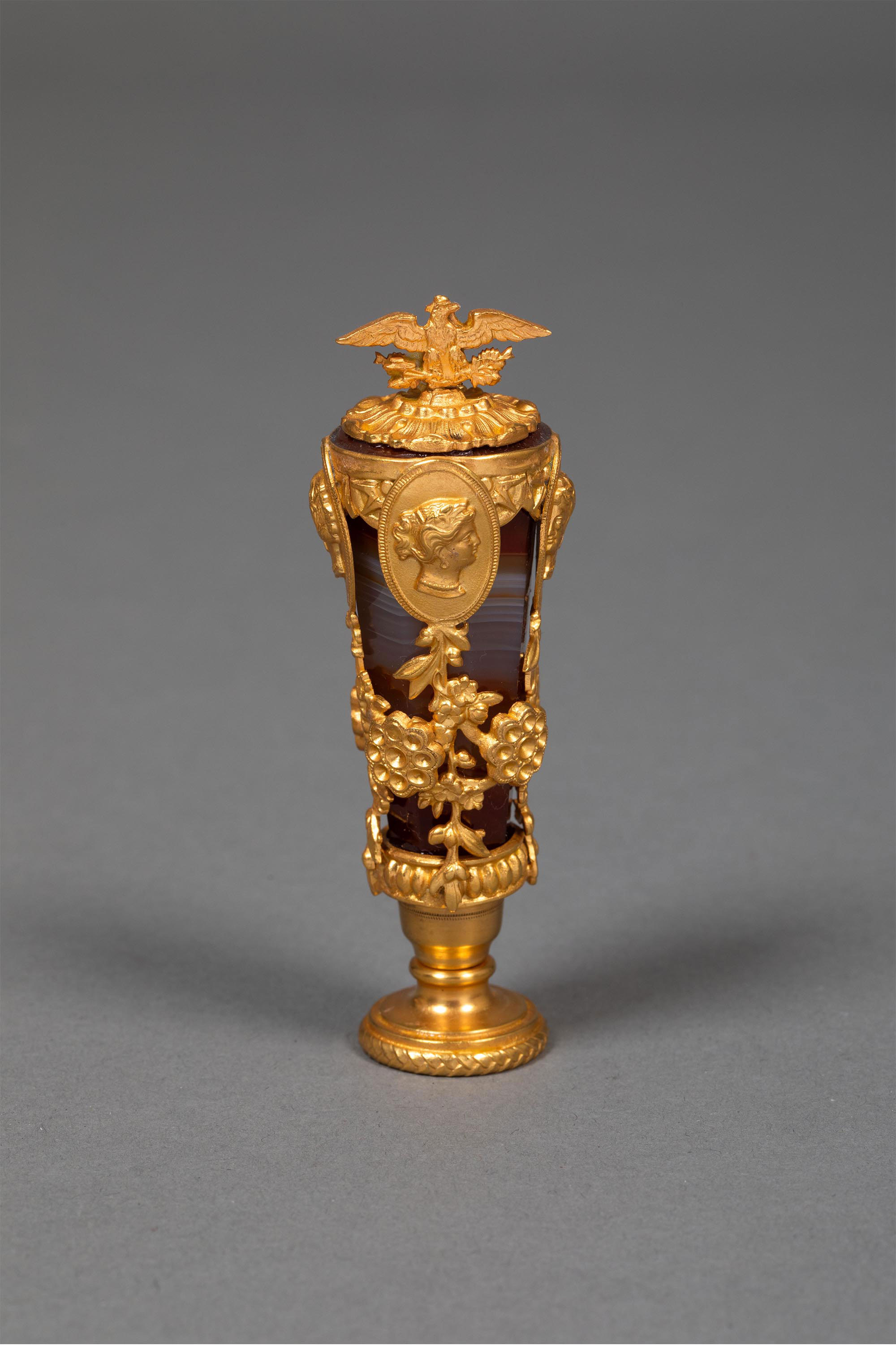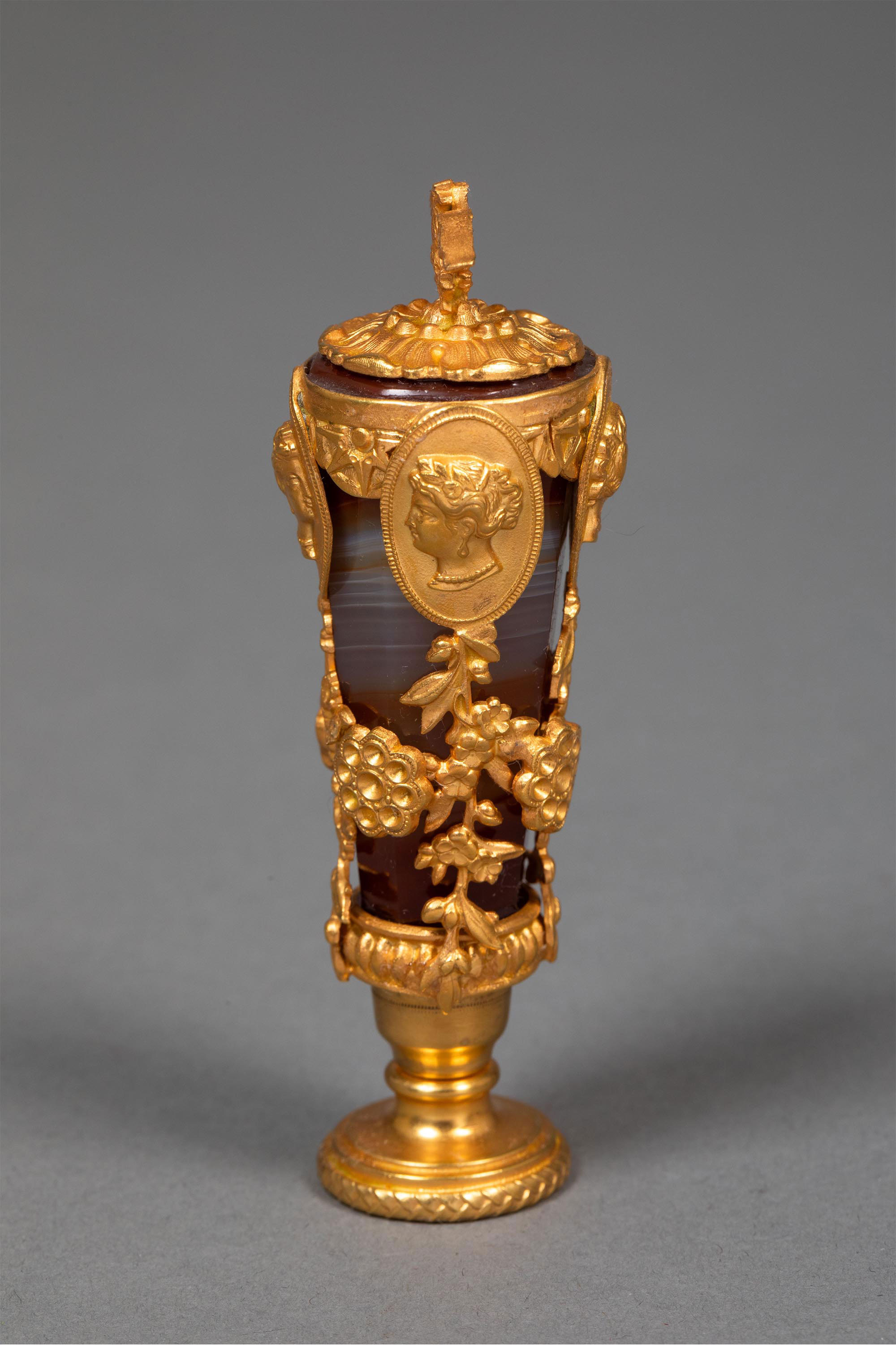 19世纪末法国出品帝政风格铜鎏金精雕镶嵌古典头像玛瑙火漆印章