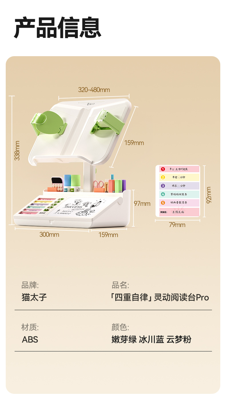 开学季福利!应采儿代言!【四合一阅读收纳架 赠白板可擦笔】猫太子阅读架儿童看书架学生绘本学习看书神器桌面床上落地多功能收纳支架可升降桌上宝宝伸缩读书书立架书夹