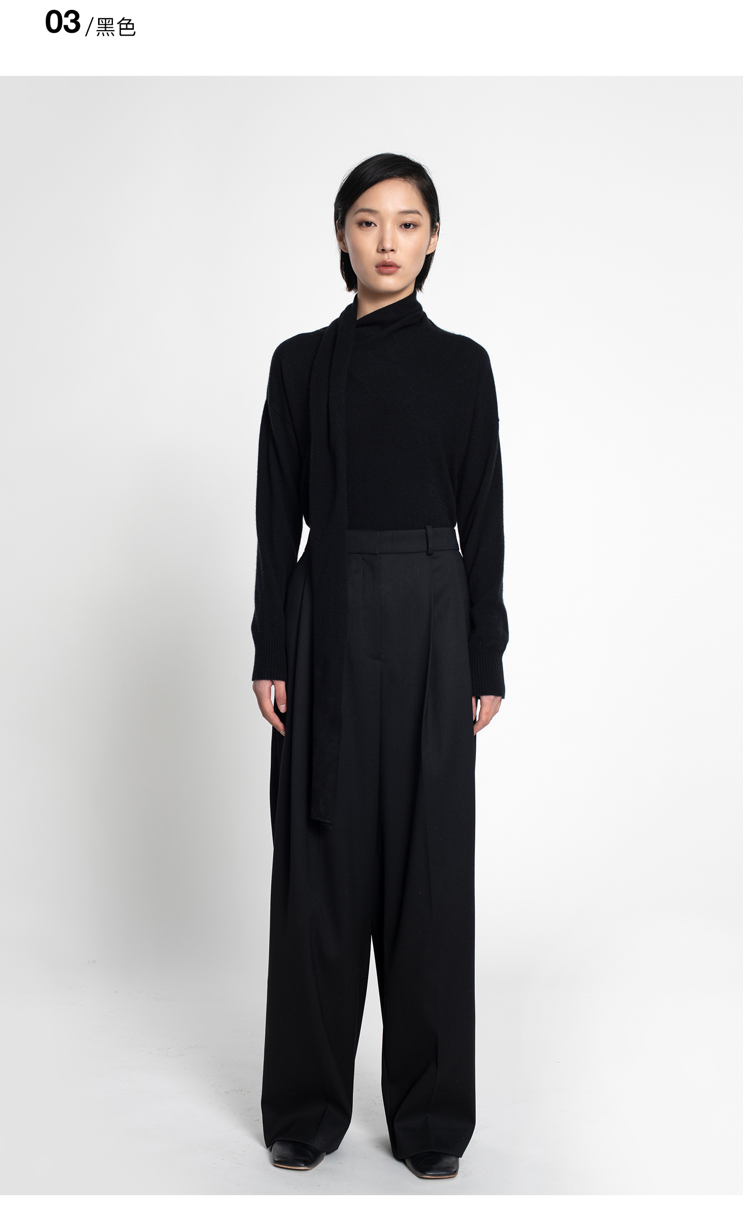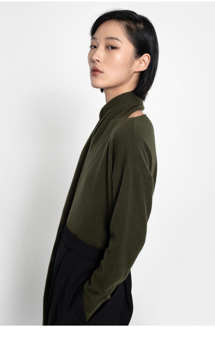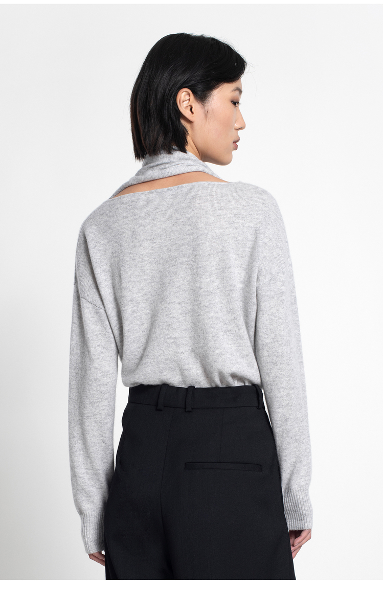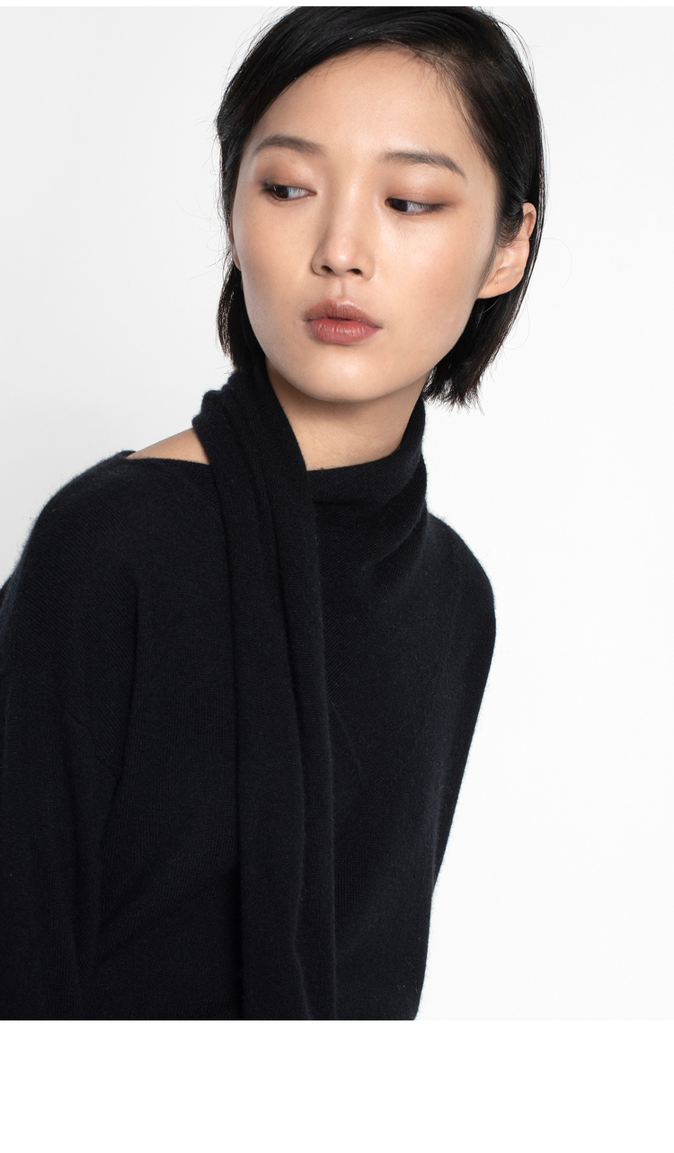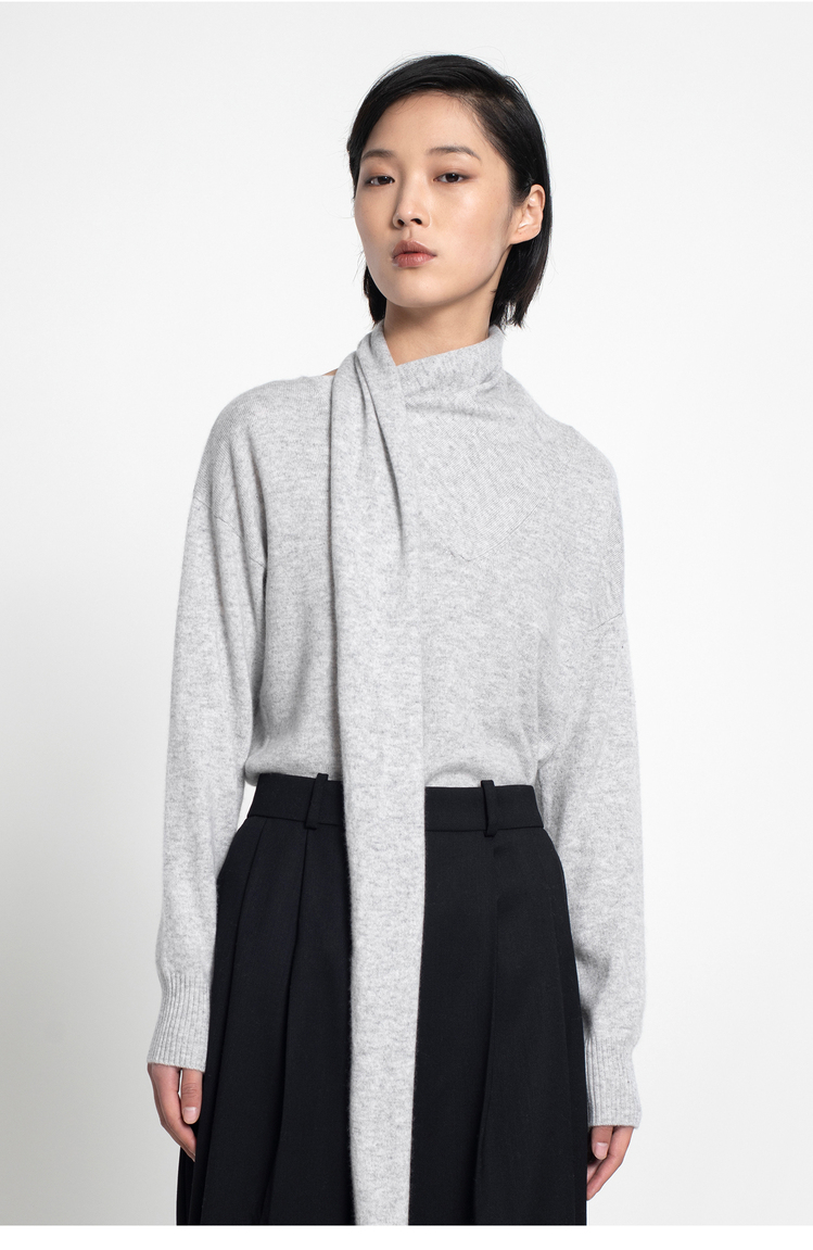 女士2021新款纯山羊绒单股平纹围巾领套头衫