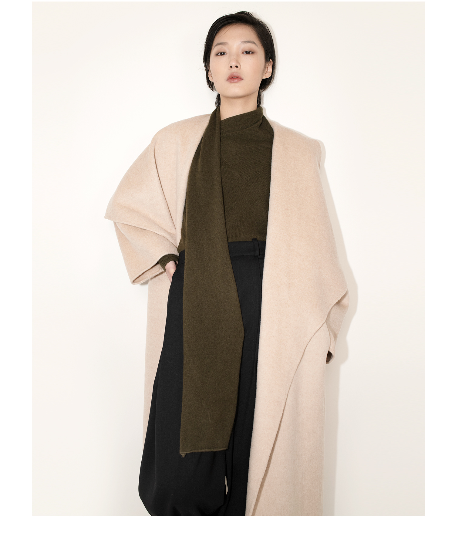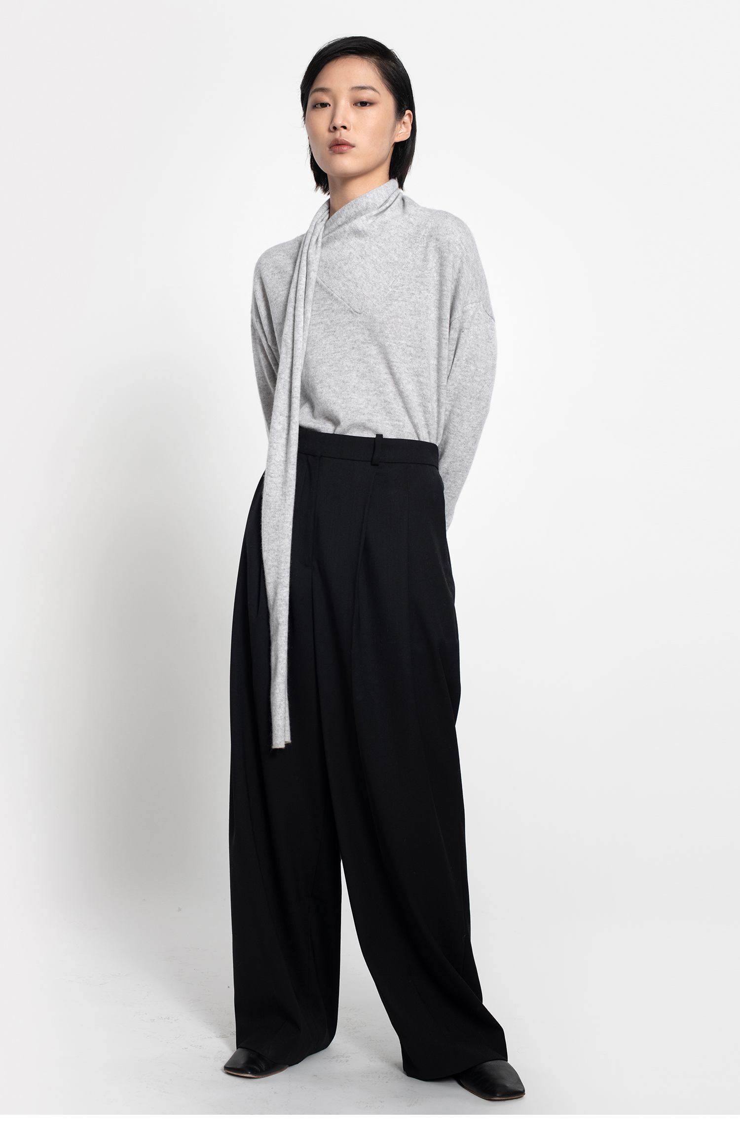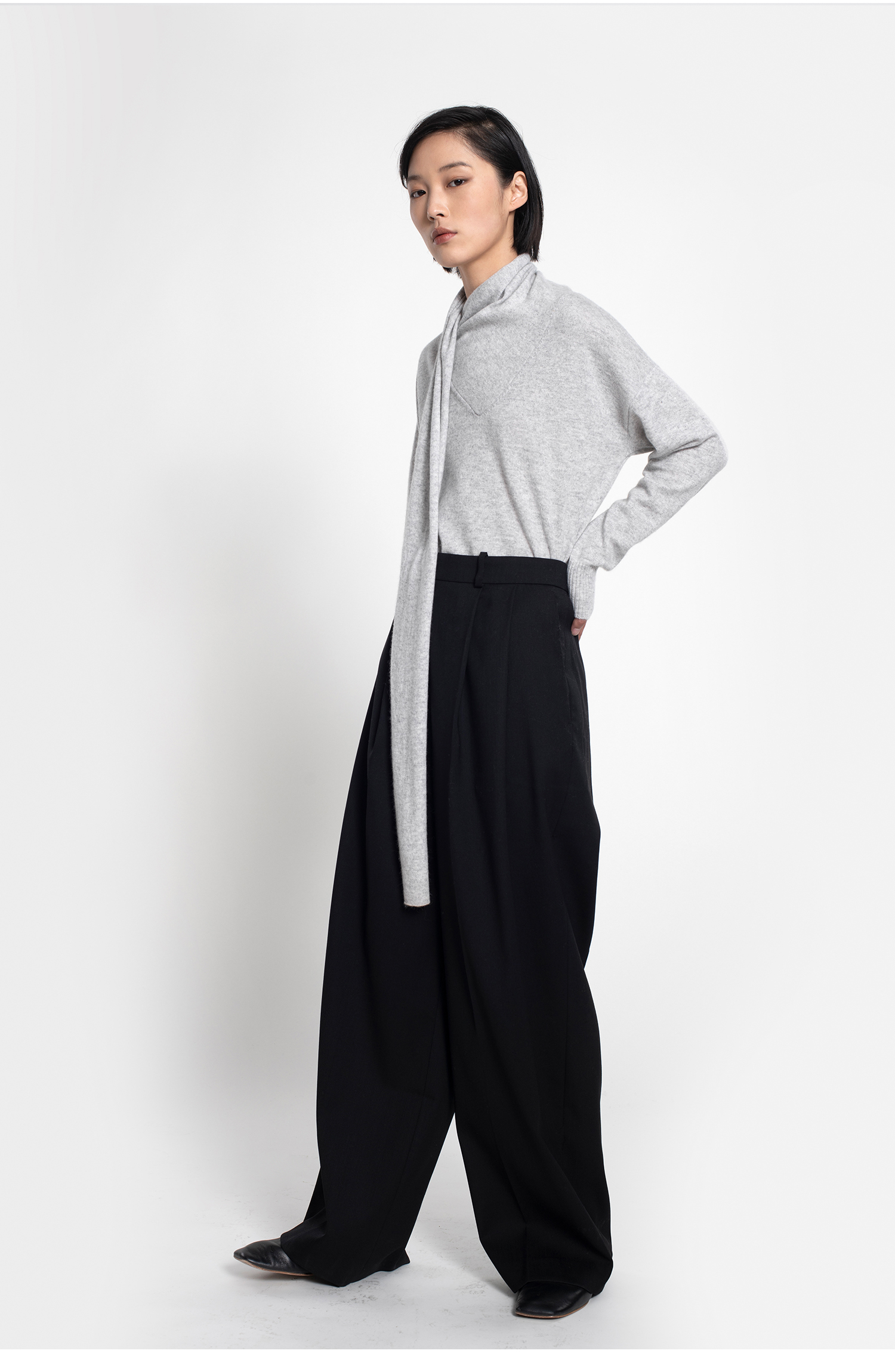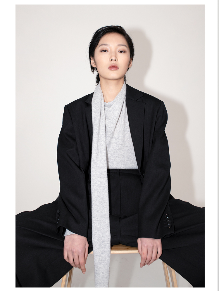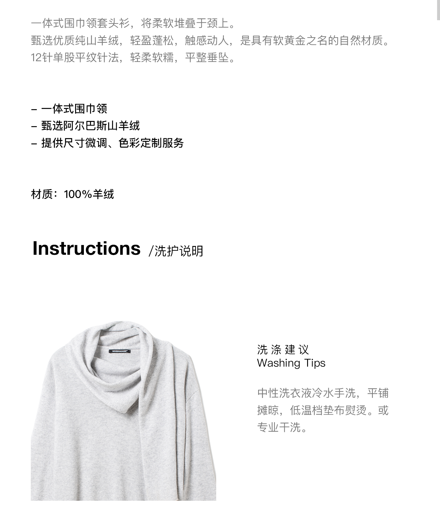 女士2021新款纯山羊绒单股平纹围巾领套头衫