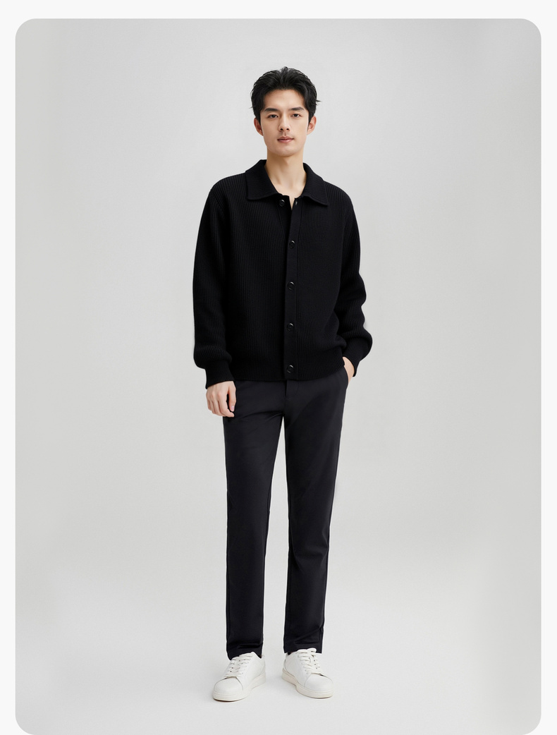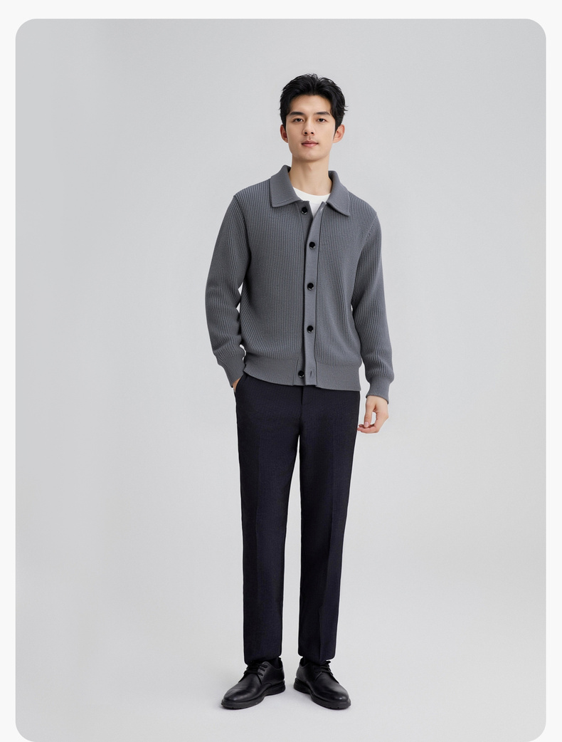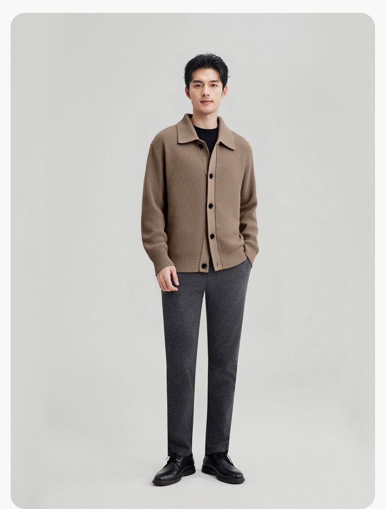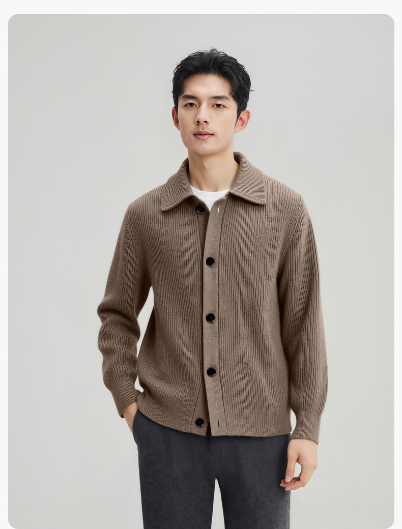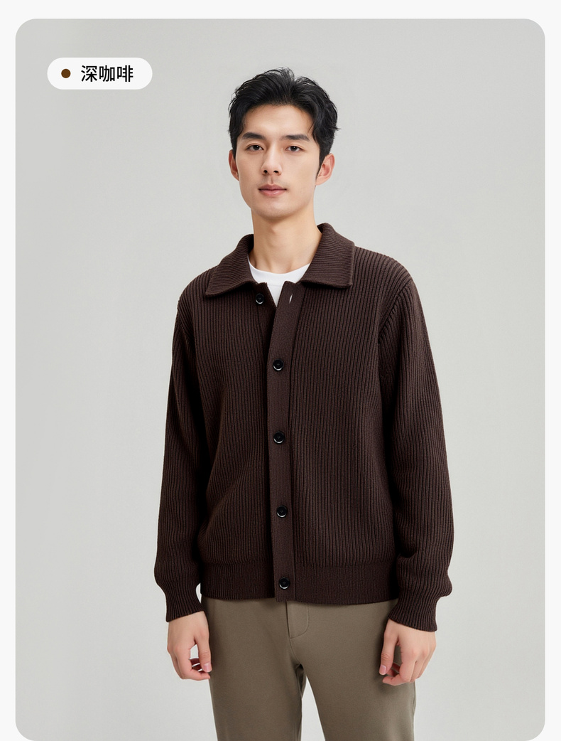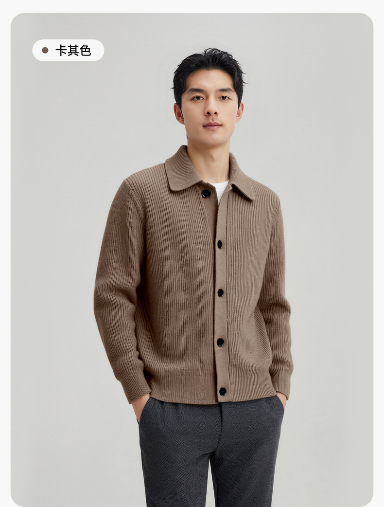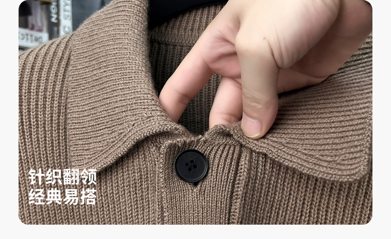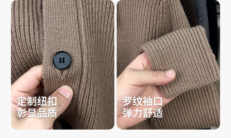 【100%绵羊毛】圣得西男粗织复古羊毛开衫2025秋新款简约百搭毛衣