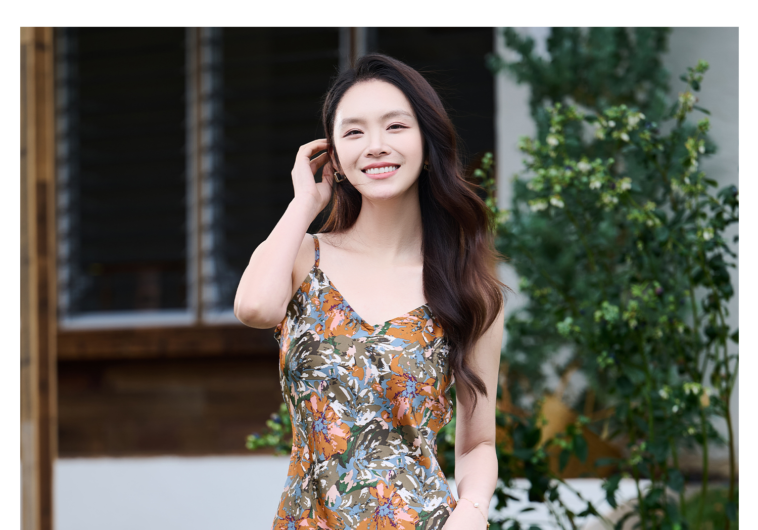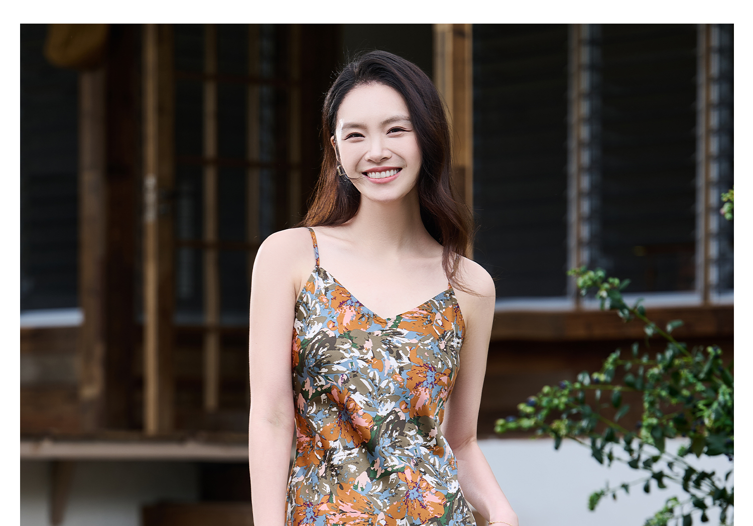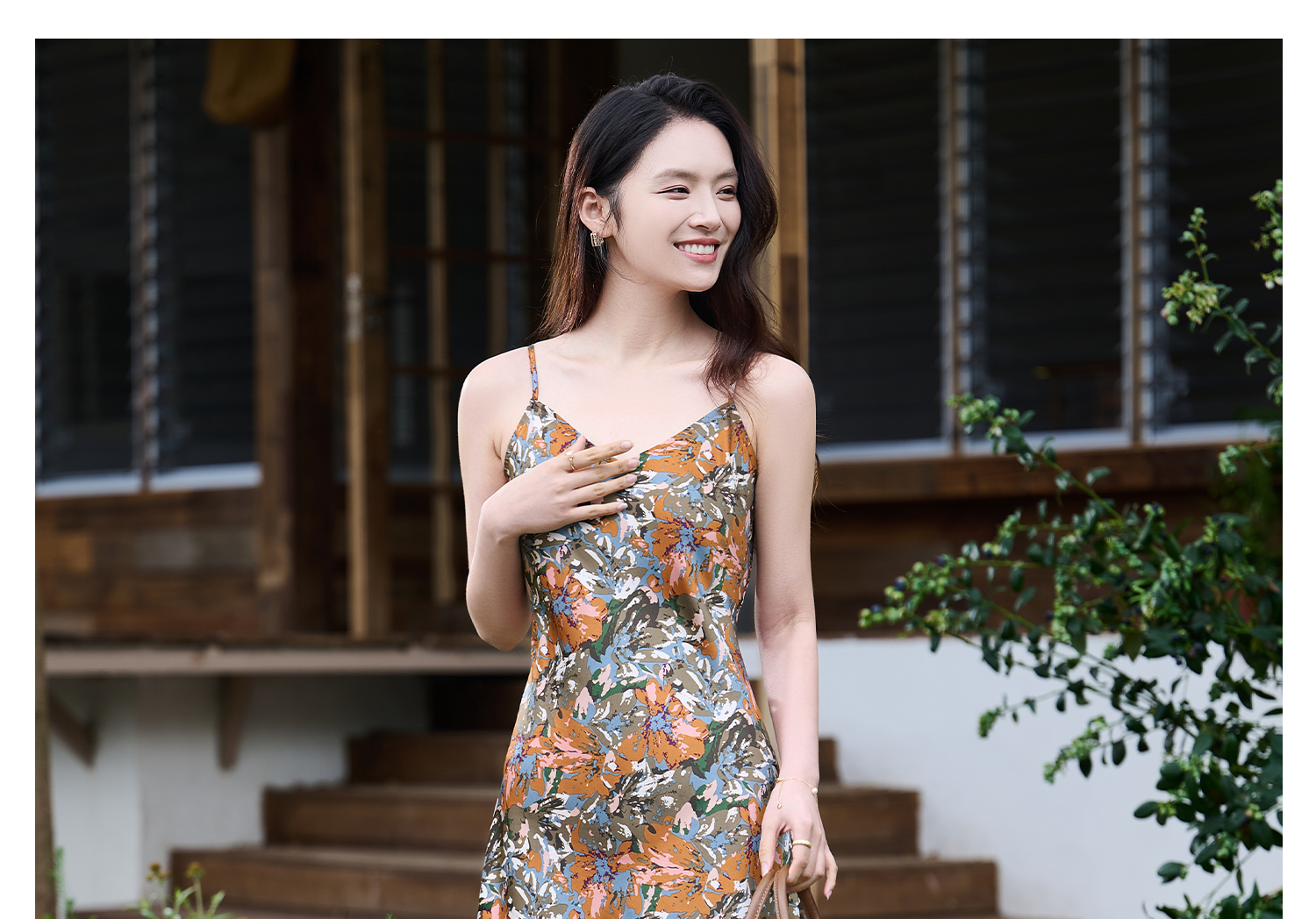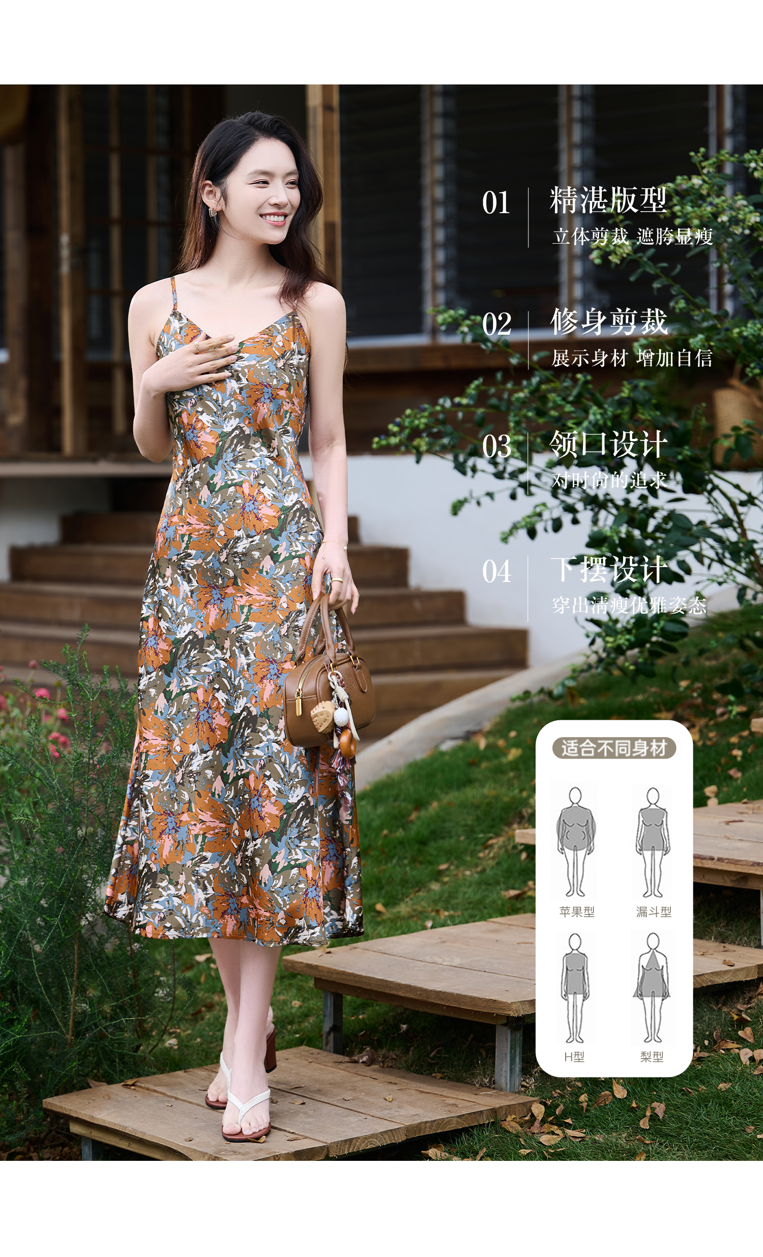 米思阳2026夏季新款印花吊带裙优雅淑女气质显瘦连衣裙1241/1036