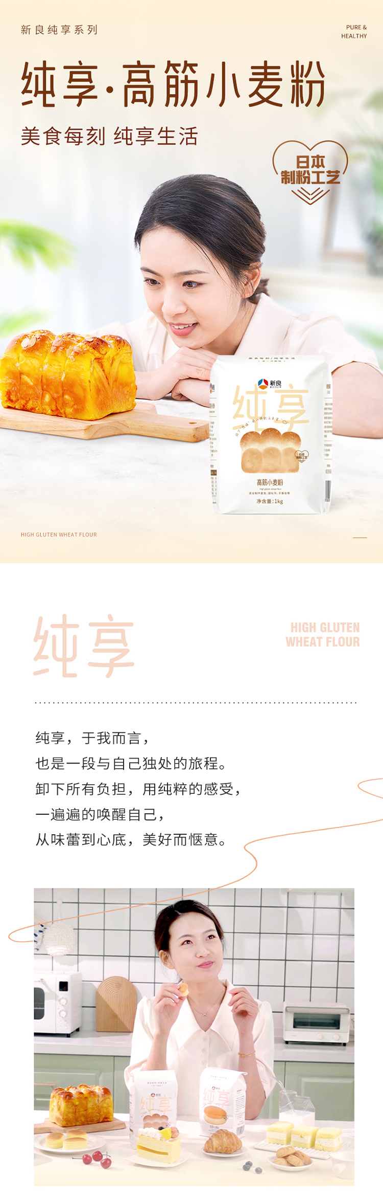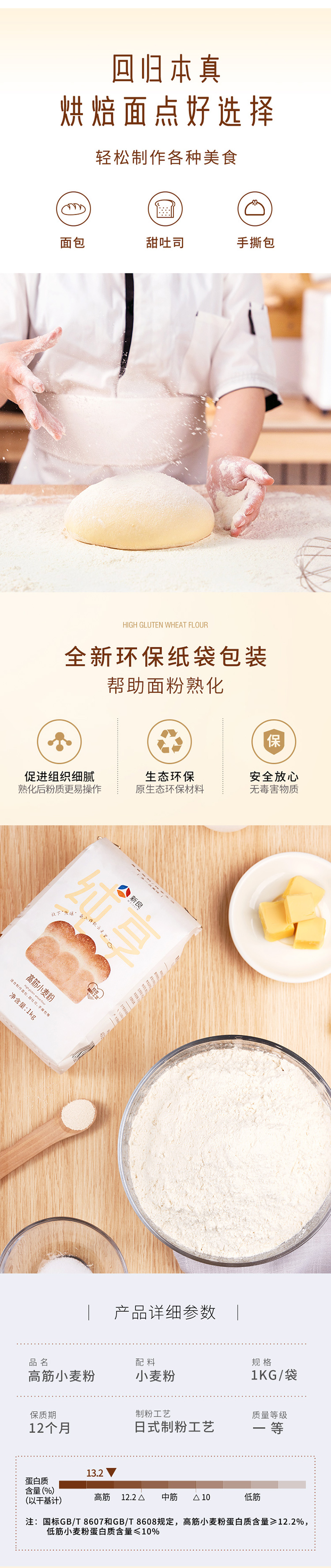 新良纯享高筋小麦粉1kg面包烘焙专用披萨日式吐司粉原材料家用