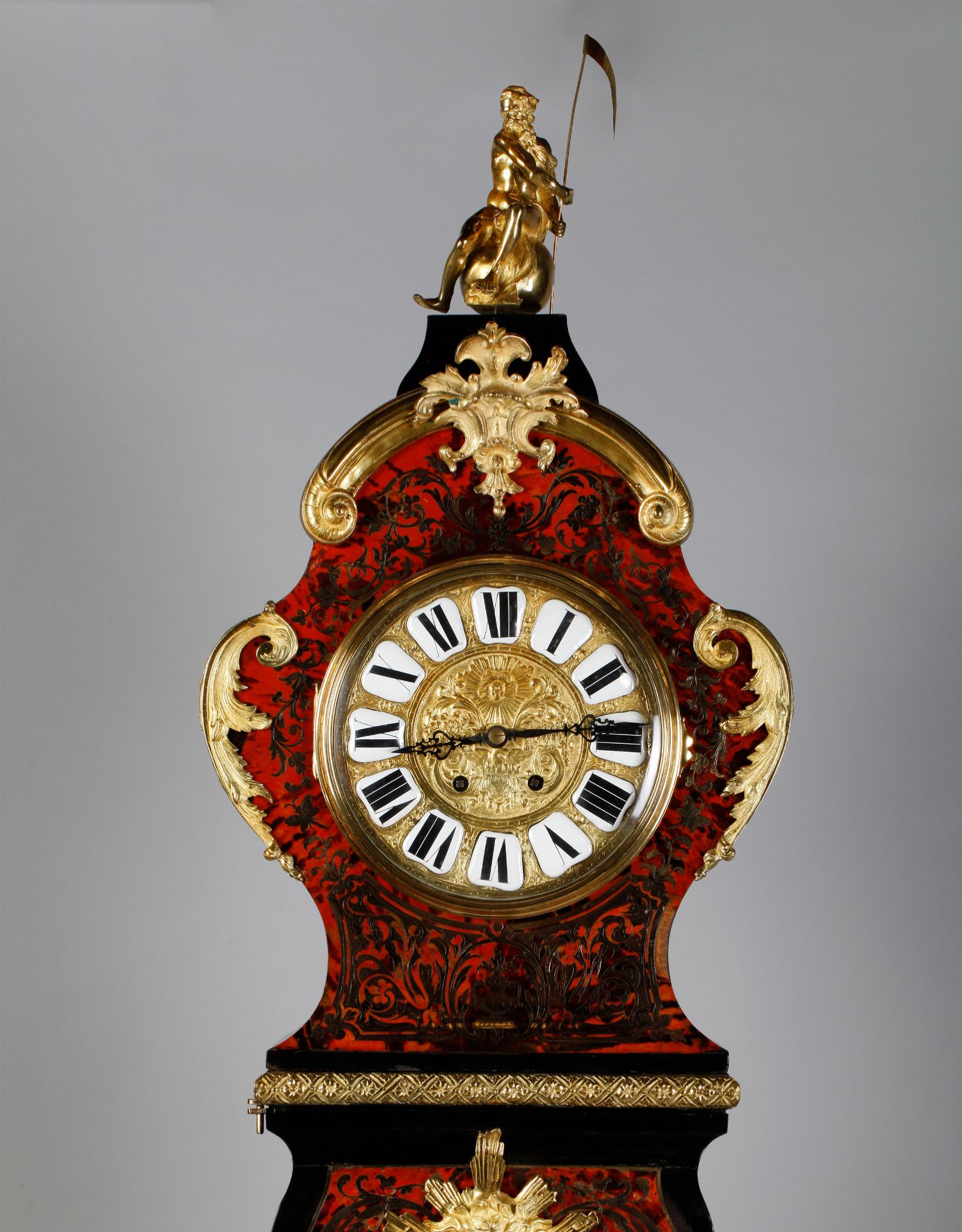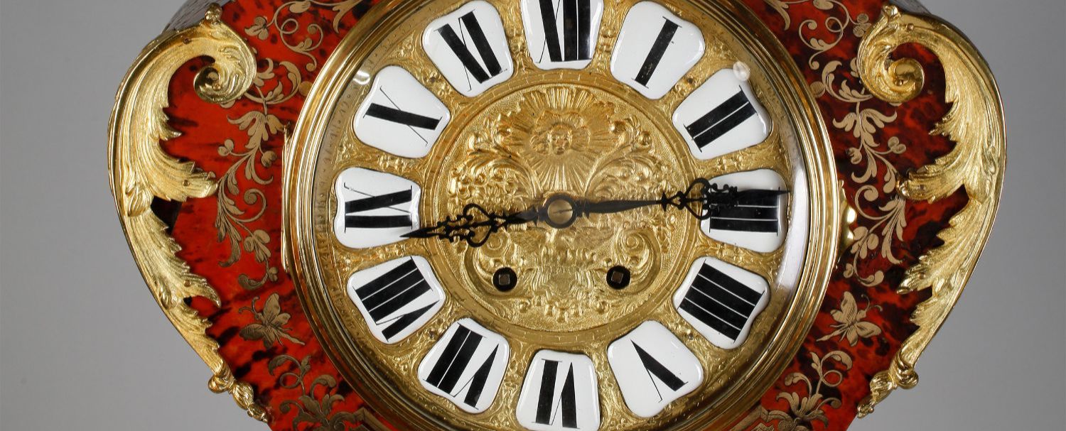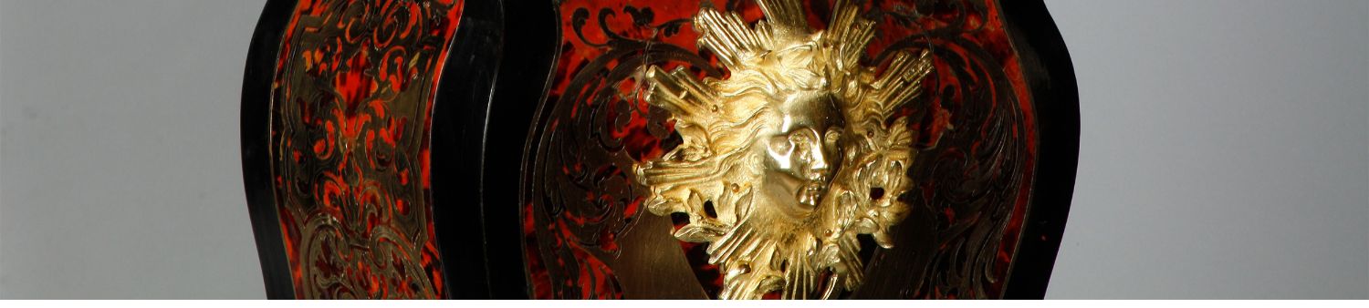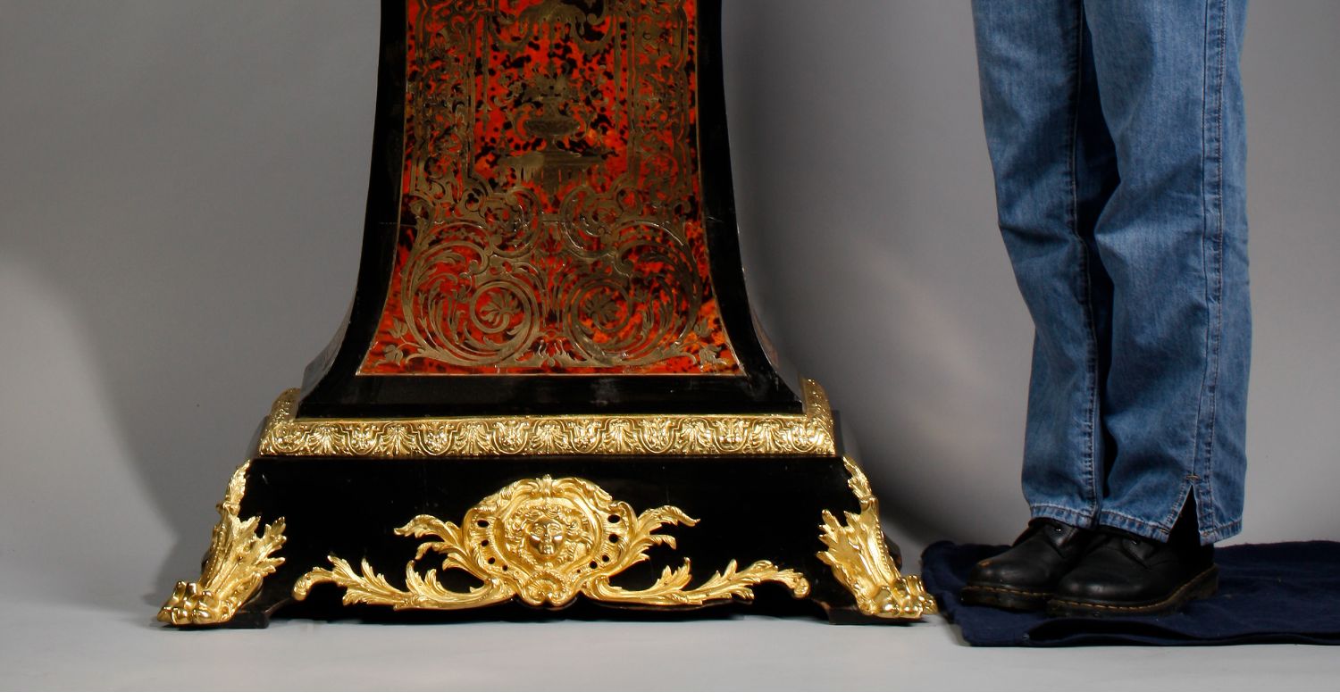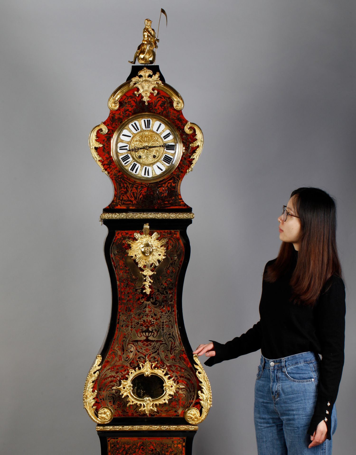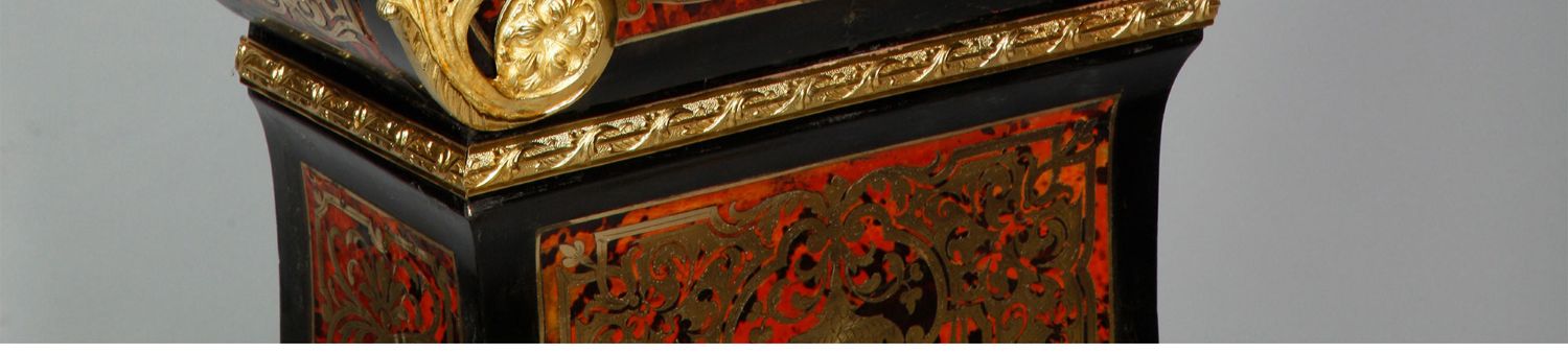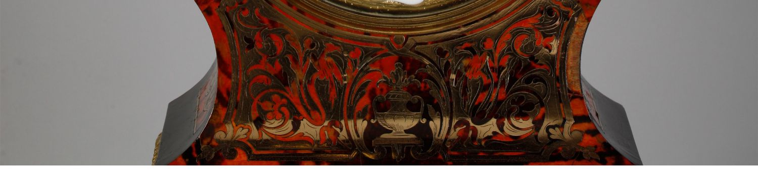 独角鹿西洋古董1890年代法国布勒镶嵌木质座钟古董钟