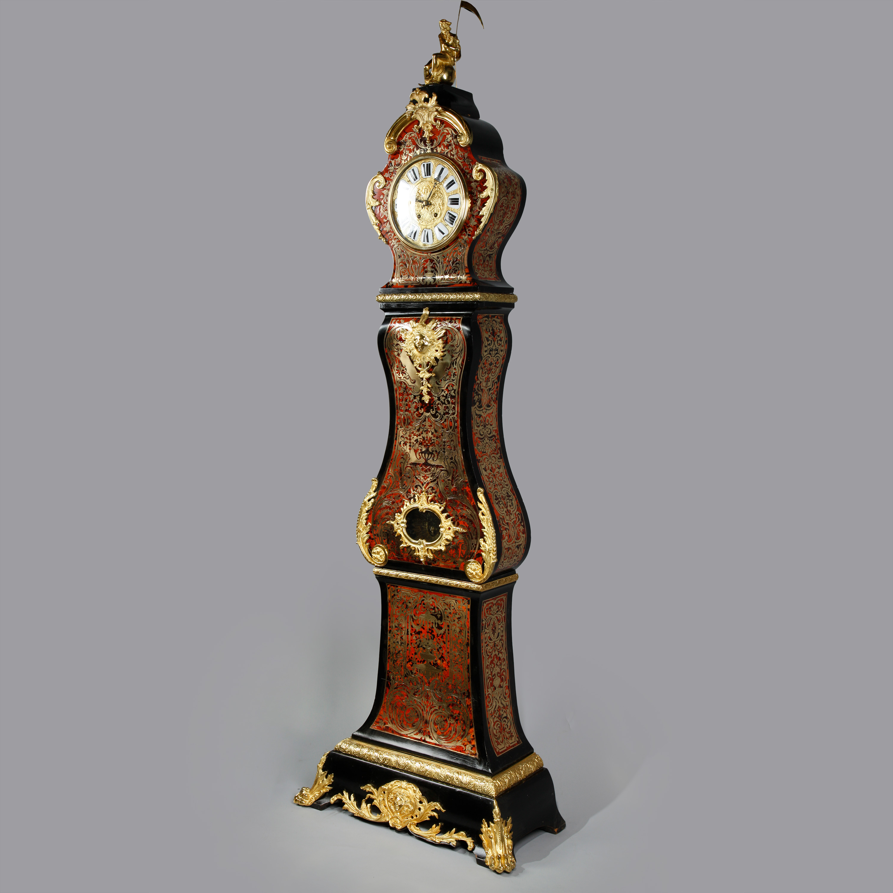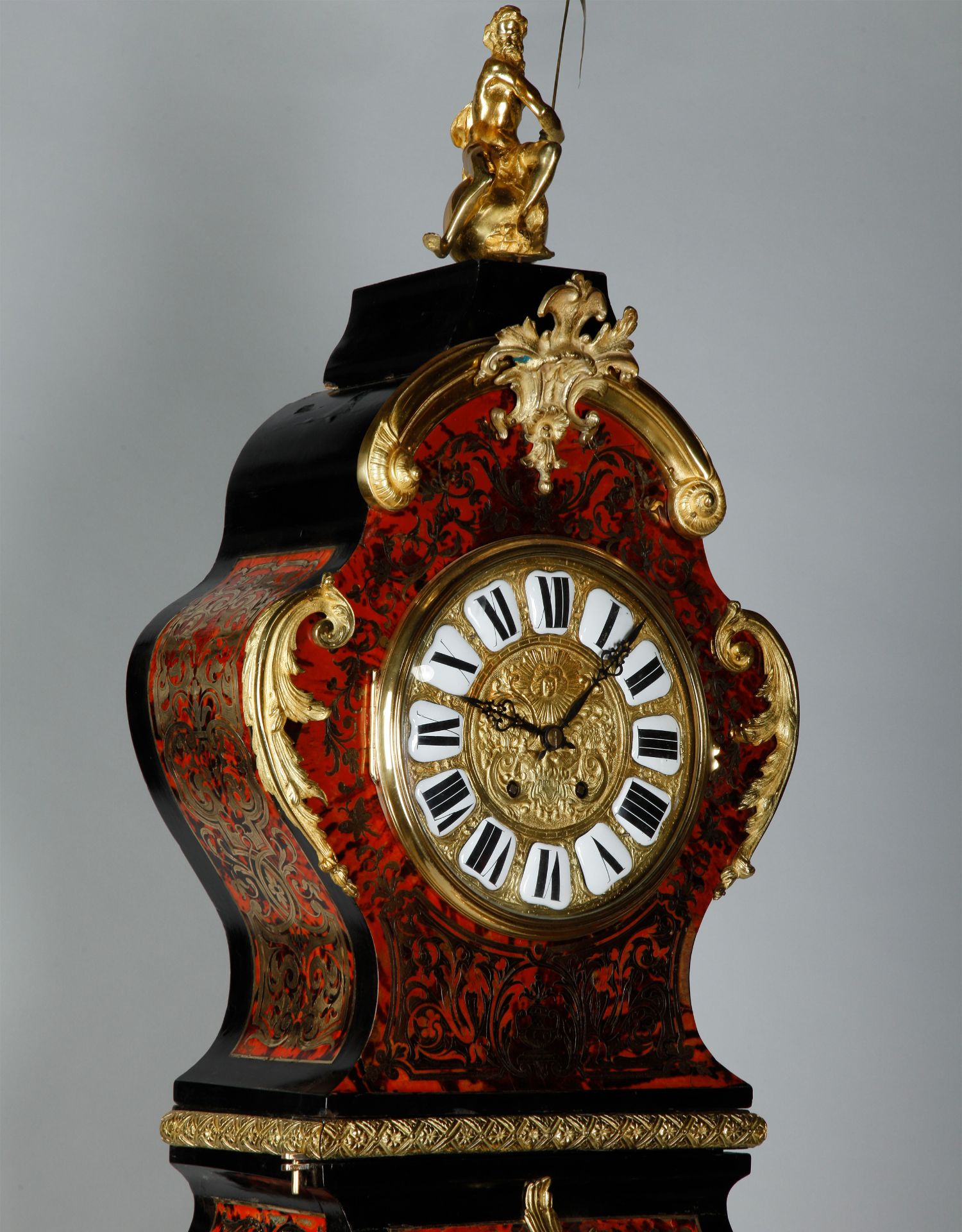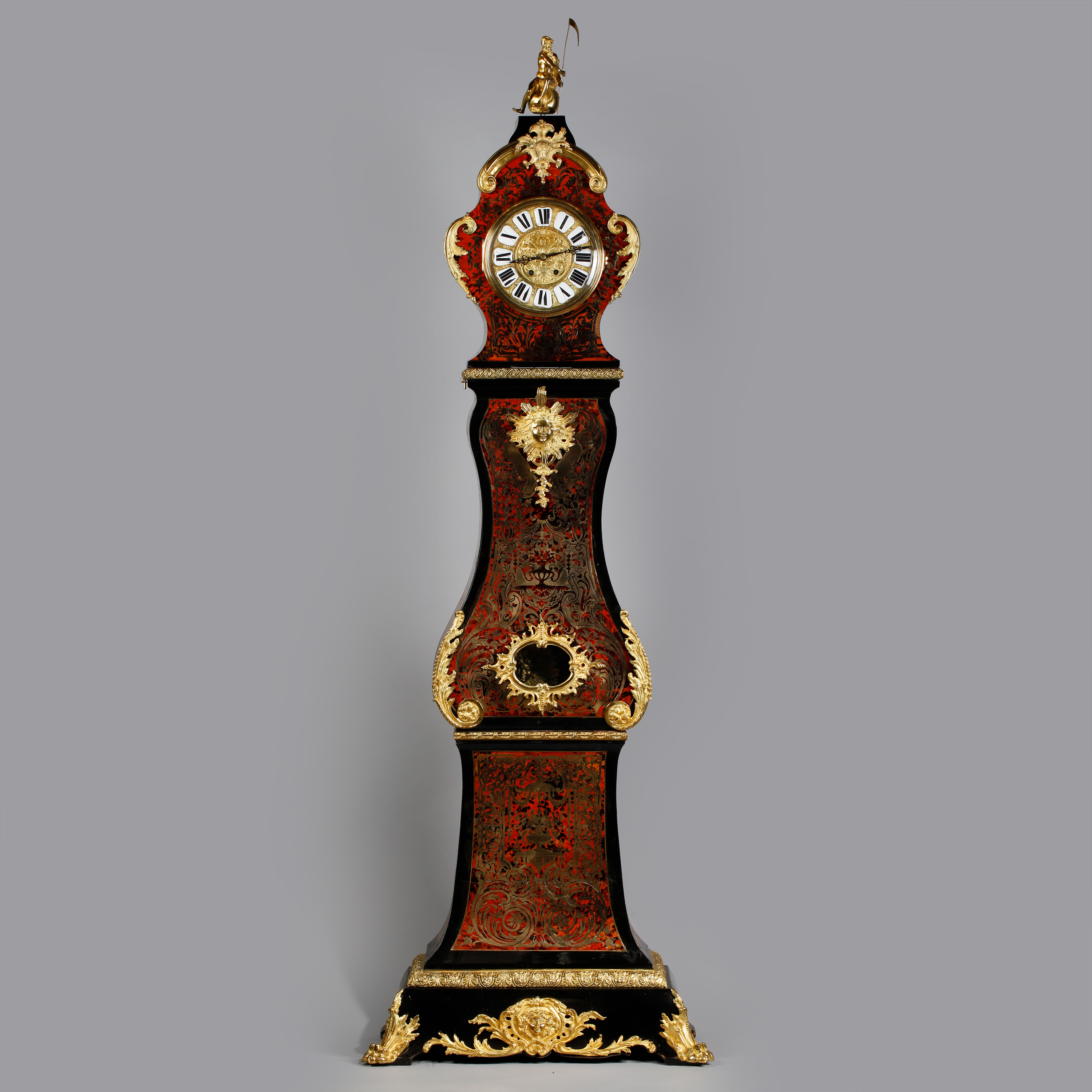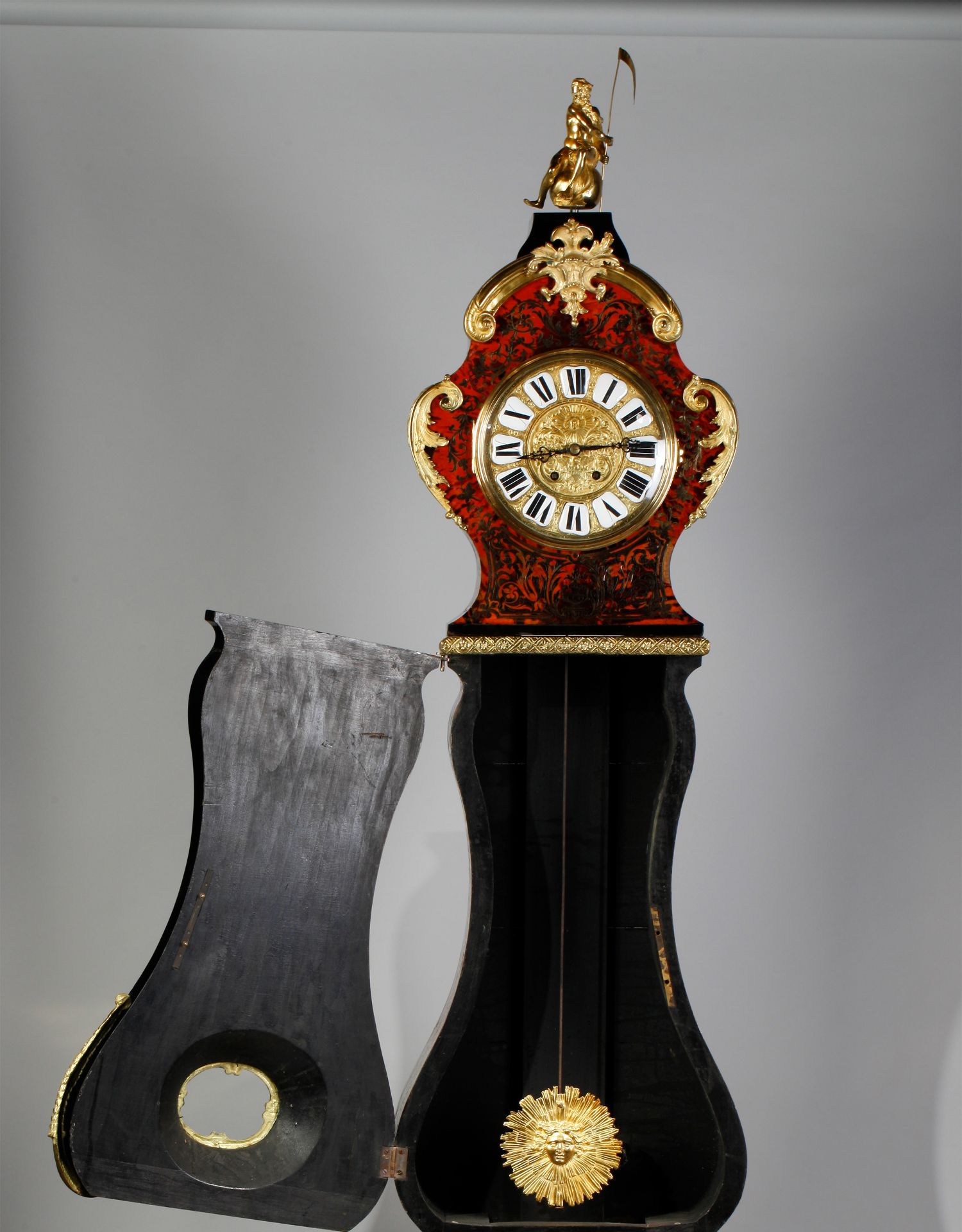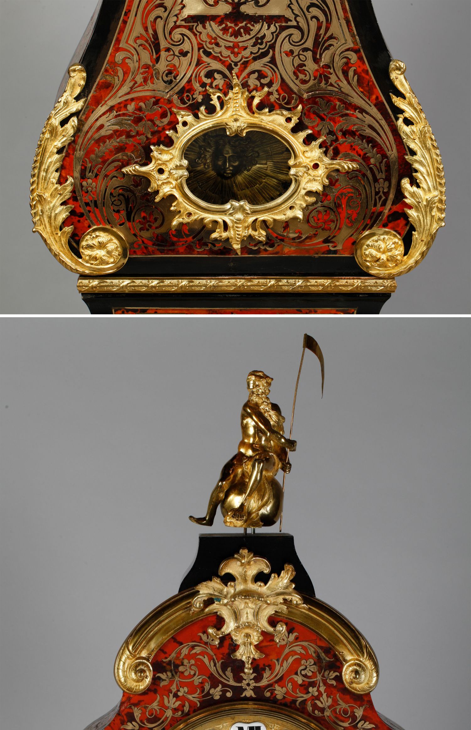 独角鹿西洋古董1890年代法国布勒镶嵌木质座钟古董钟