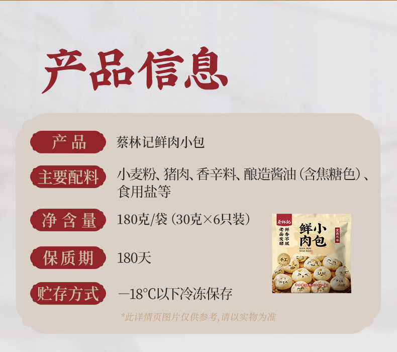 【89元任选8件】蔡林记鲜肉小包180克*1袋