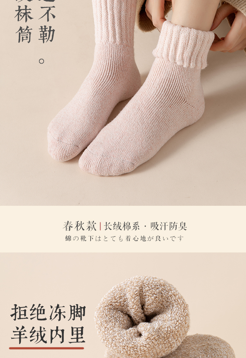 厚袜子女秋冬季保暖中筒袜冬天加厚加绒松口袜cnk01