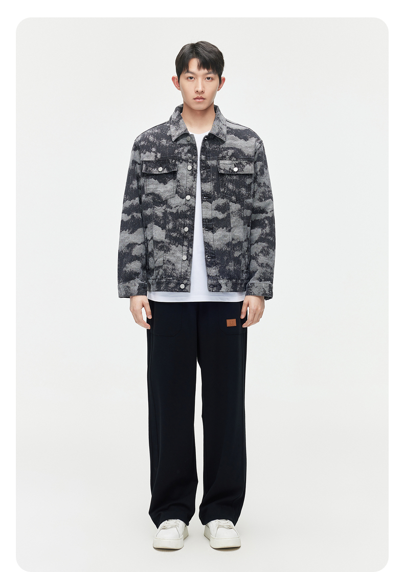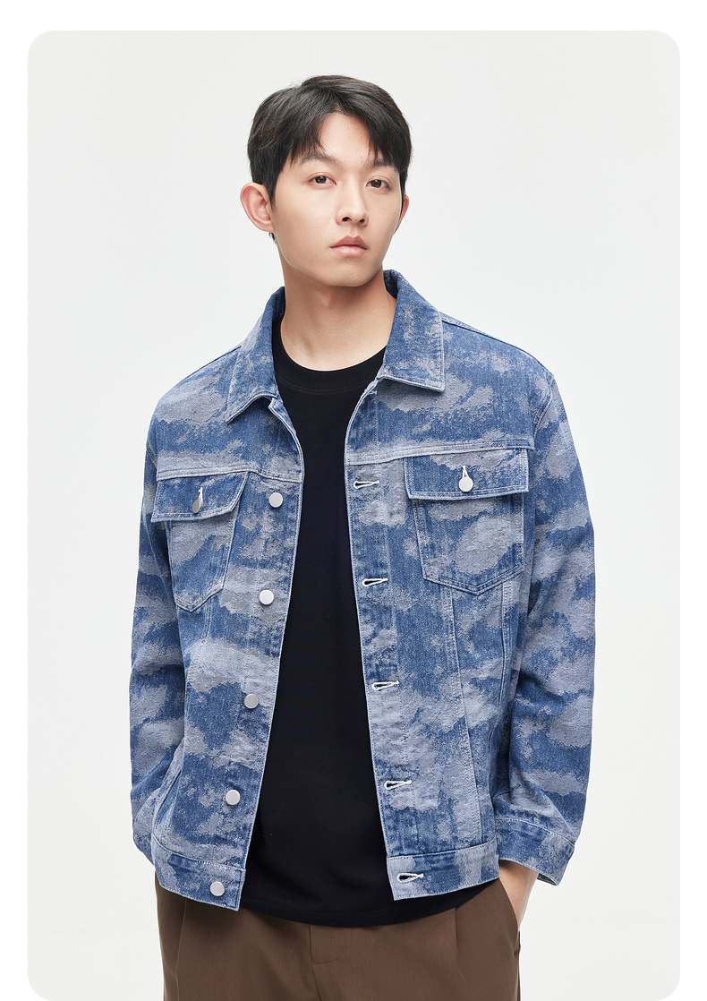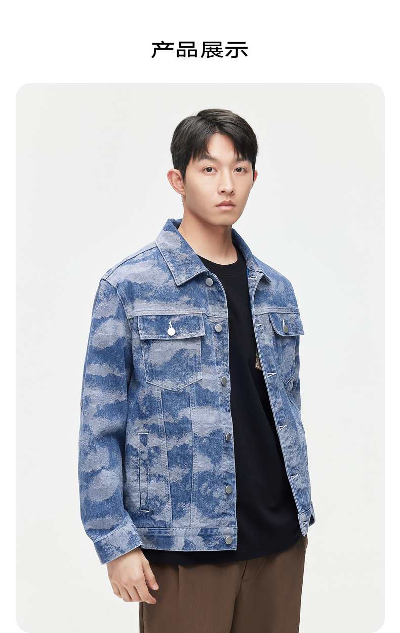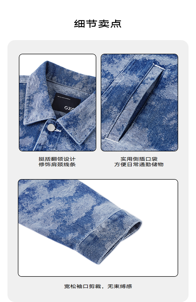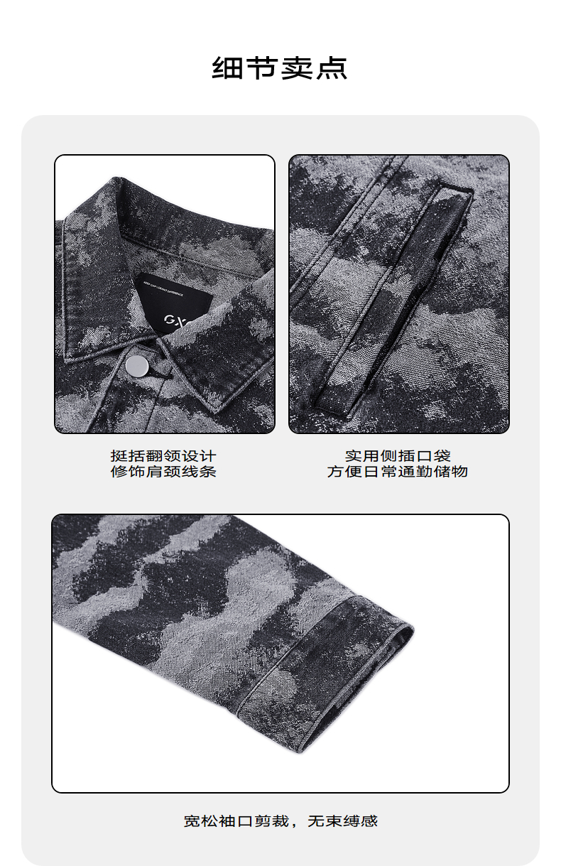 GXG男装 2024春季热卖翻领休闲男士花色水洗牛仔夹克外套男上衣
