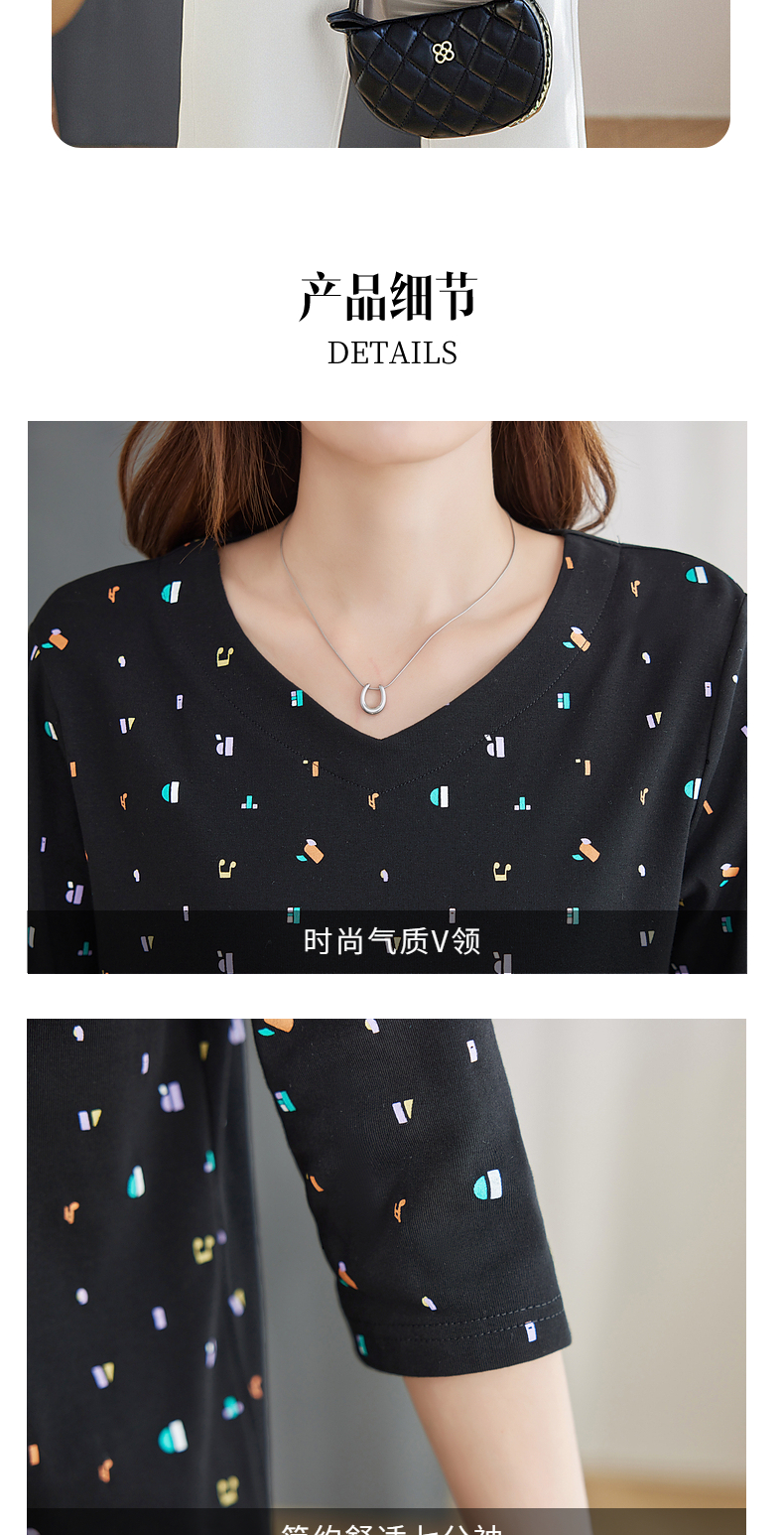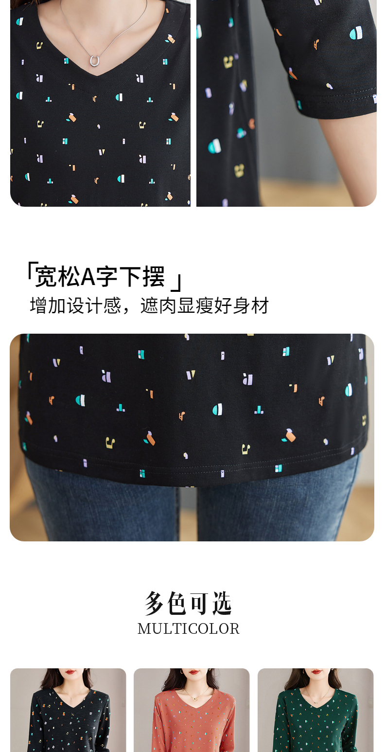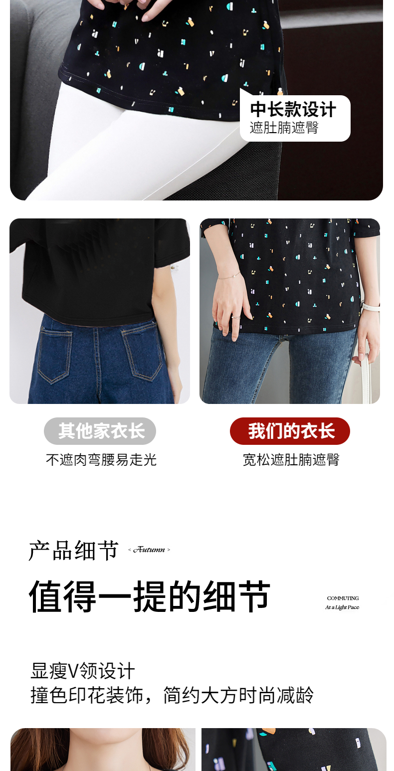 黑色V领印花短袖T恤女2026夏季新款大码女装宽松遮肚气质显瘦上衣