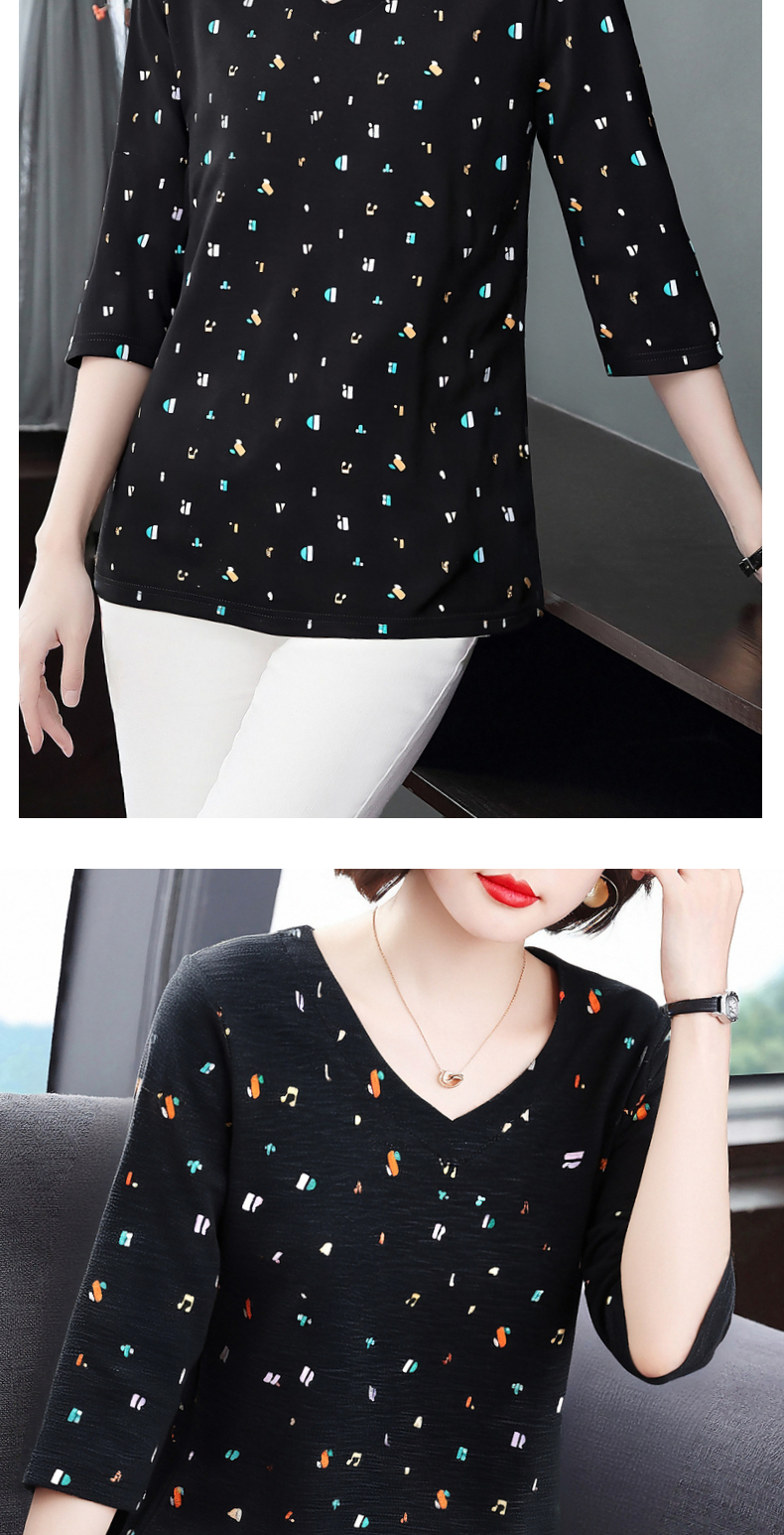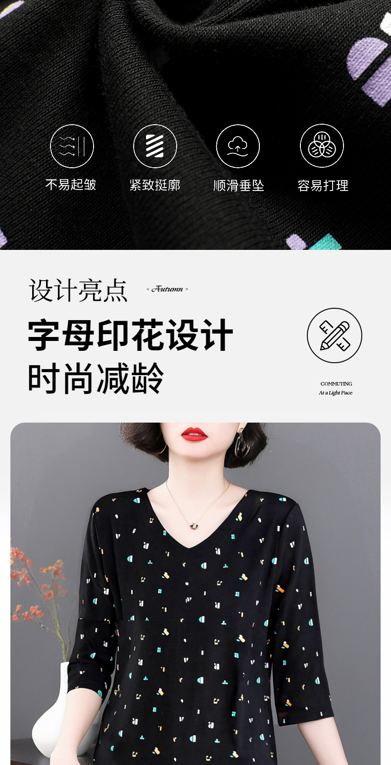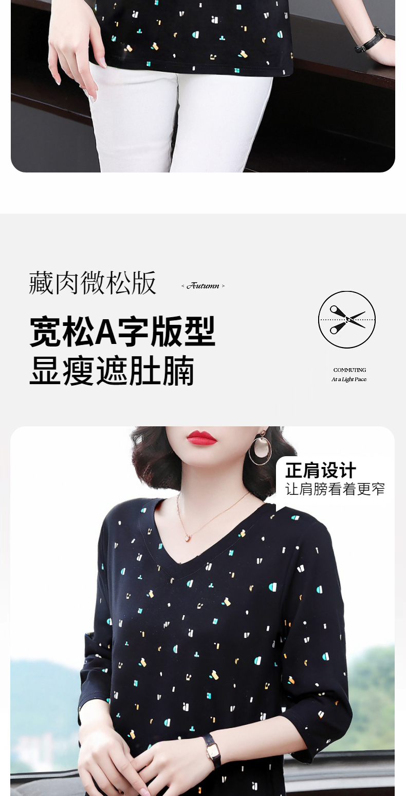 黑色V领印花短袖T恤女2026夏季新款大码女装宽松遮肚气质显瘦上衣