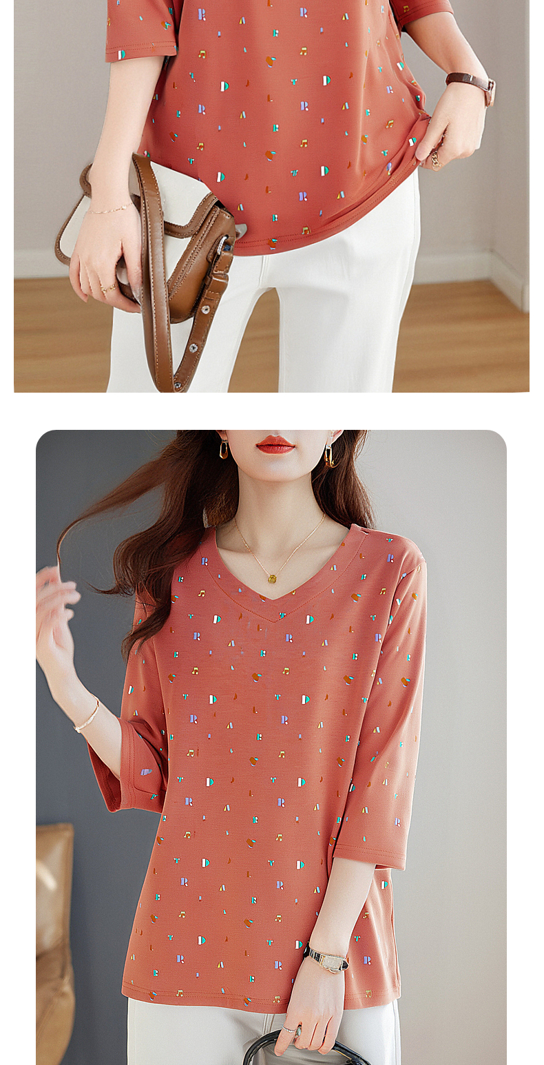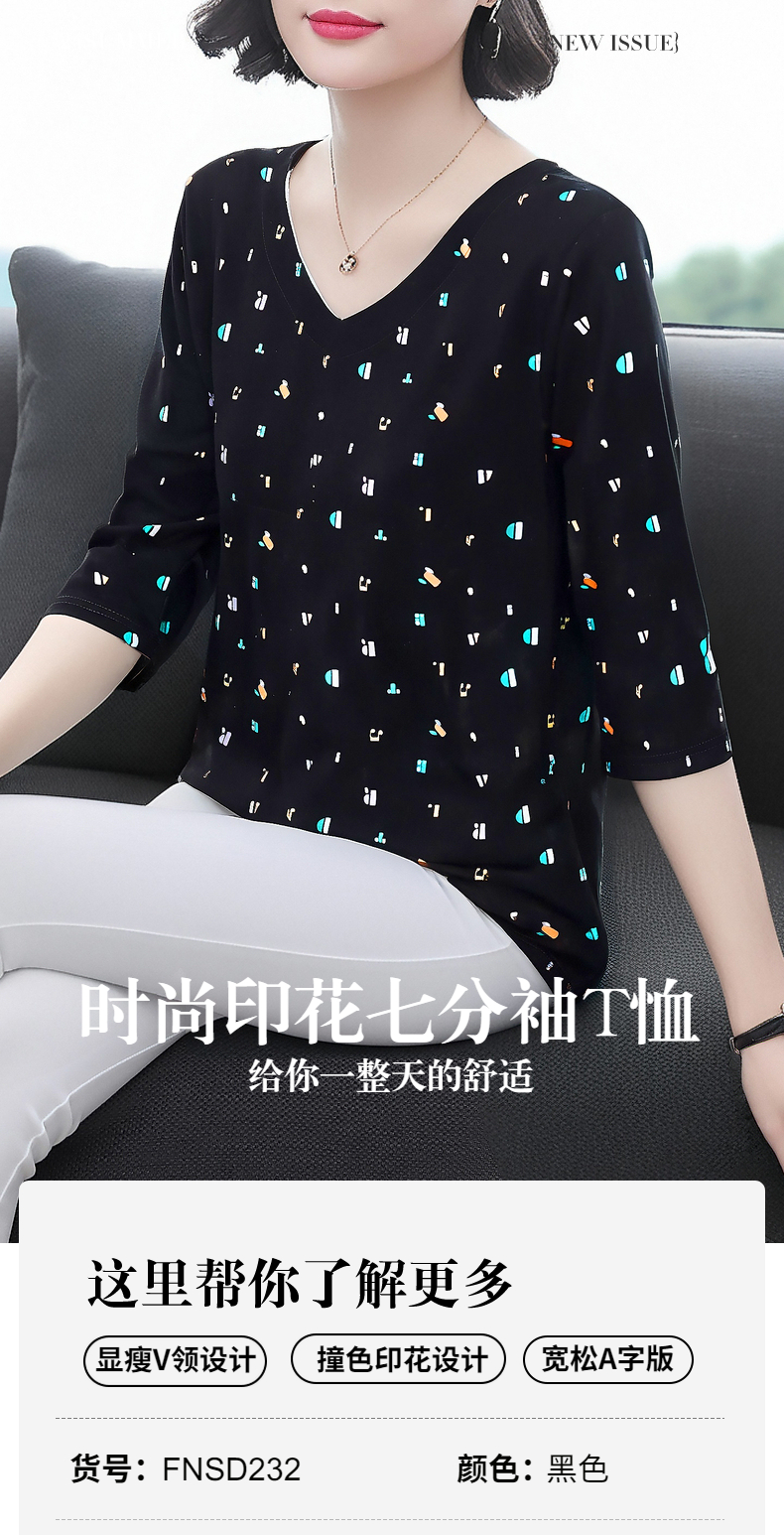 大码七分袖上衣女夏季2026年新款女装短袖妈妈宽松纯棉中袖t恤女