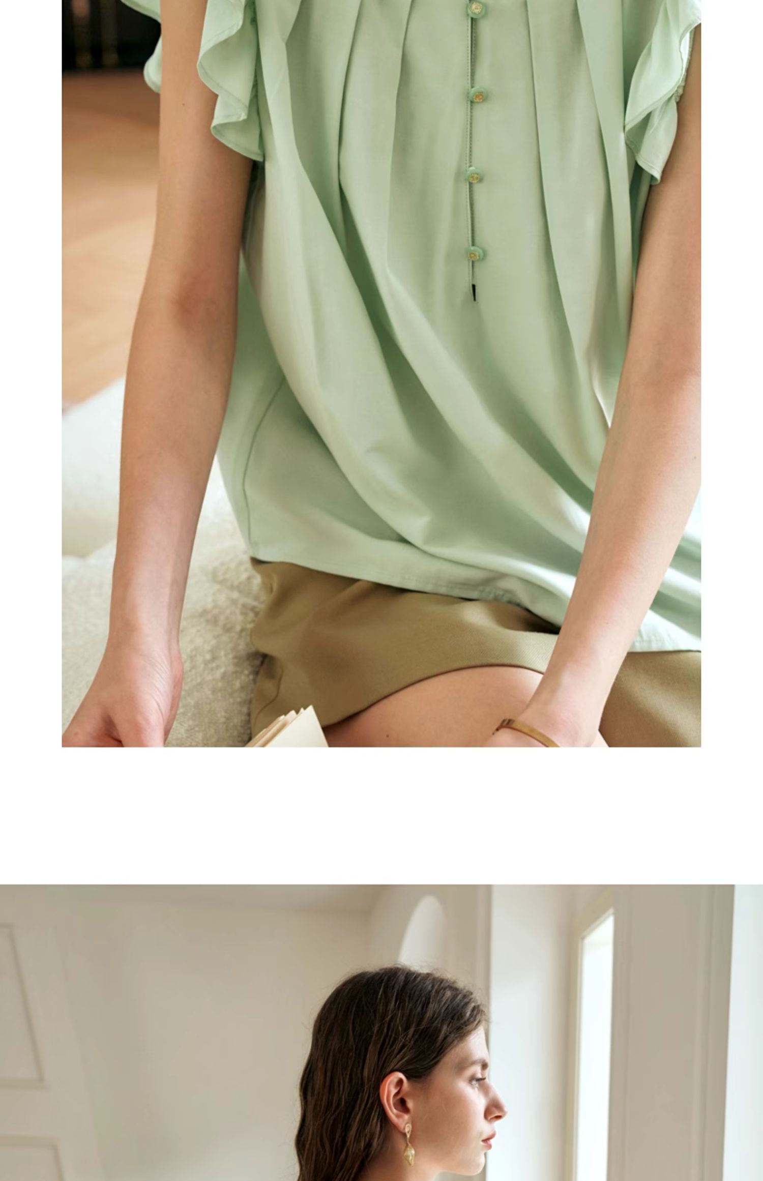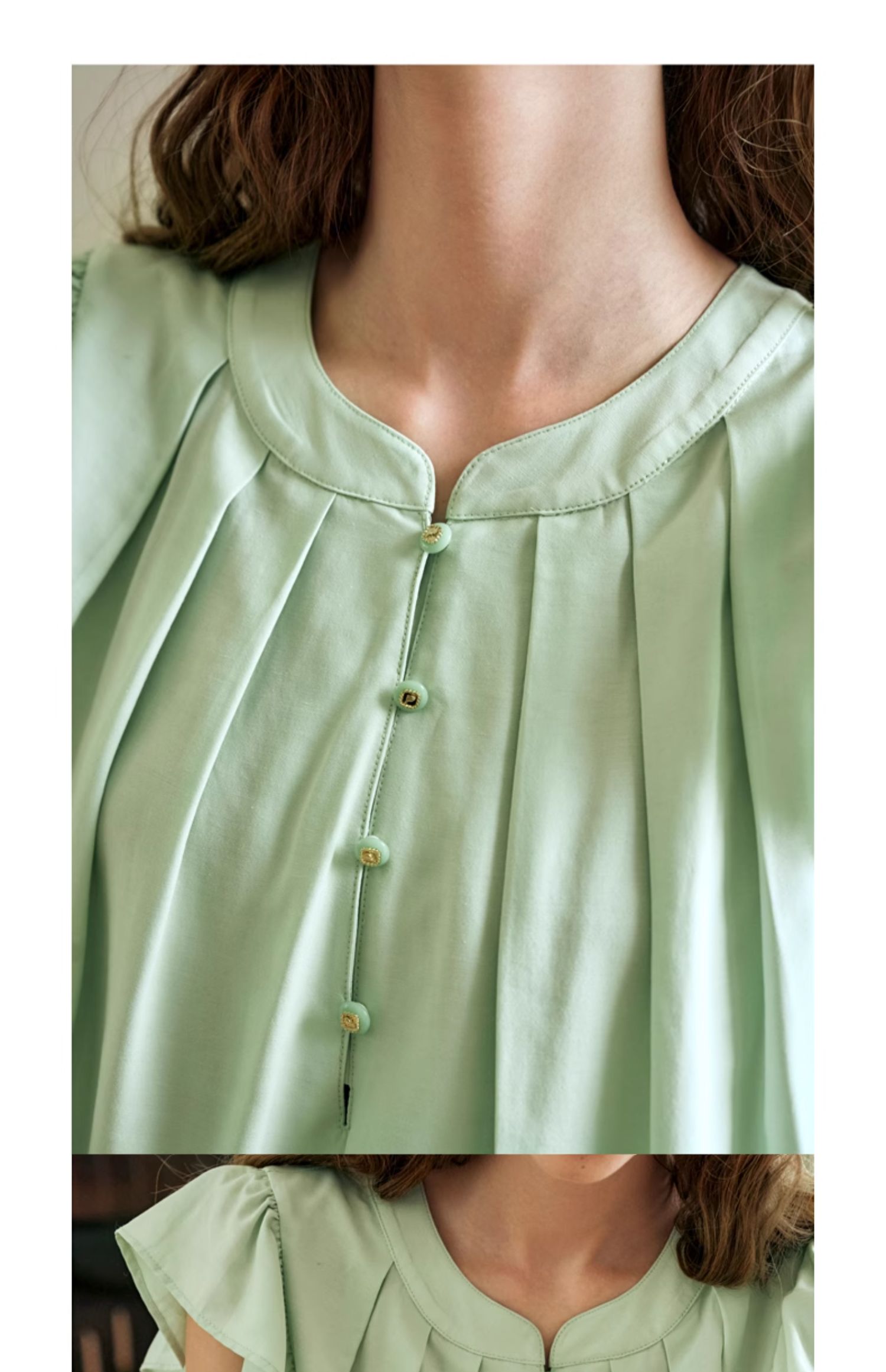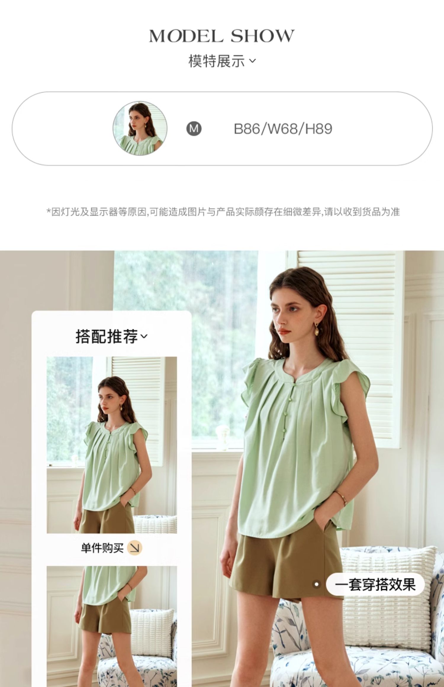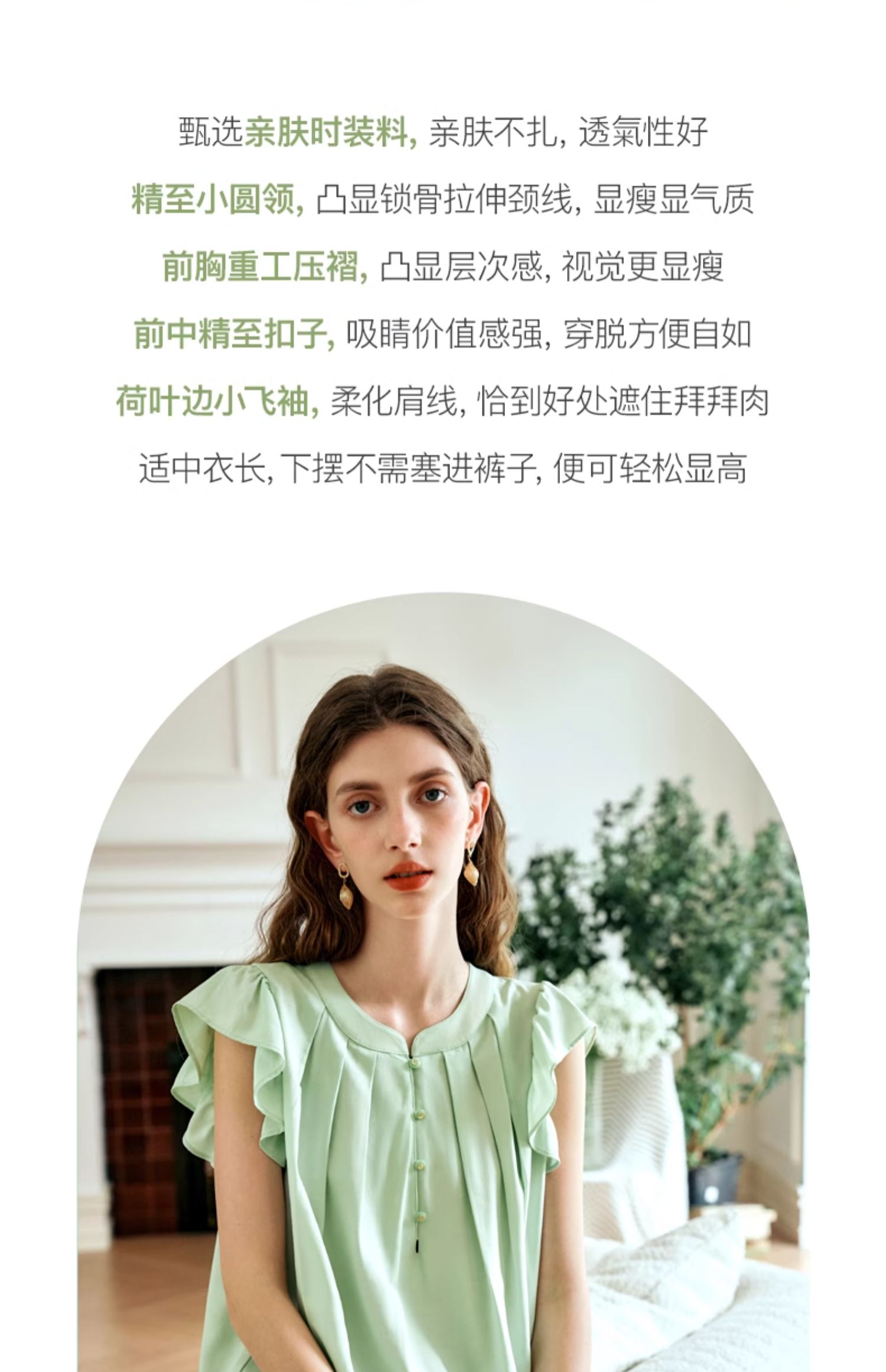 OLrain欧芮儿法式圆领衬衫女夏季2024新款设计感荷叶边小飞袖上衣