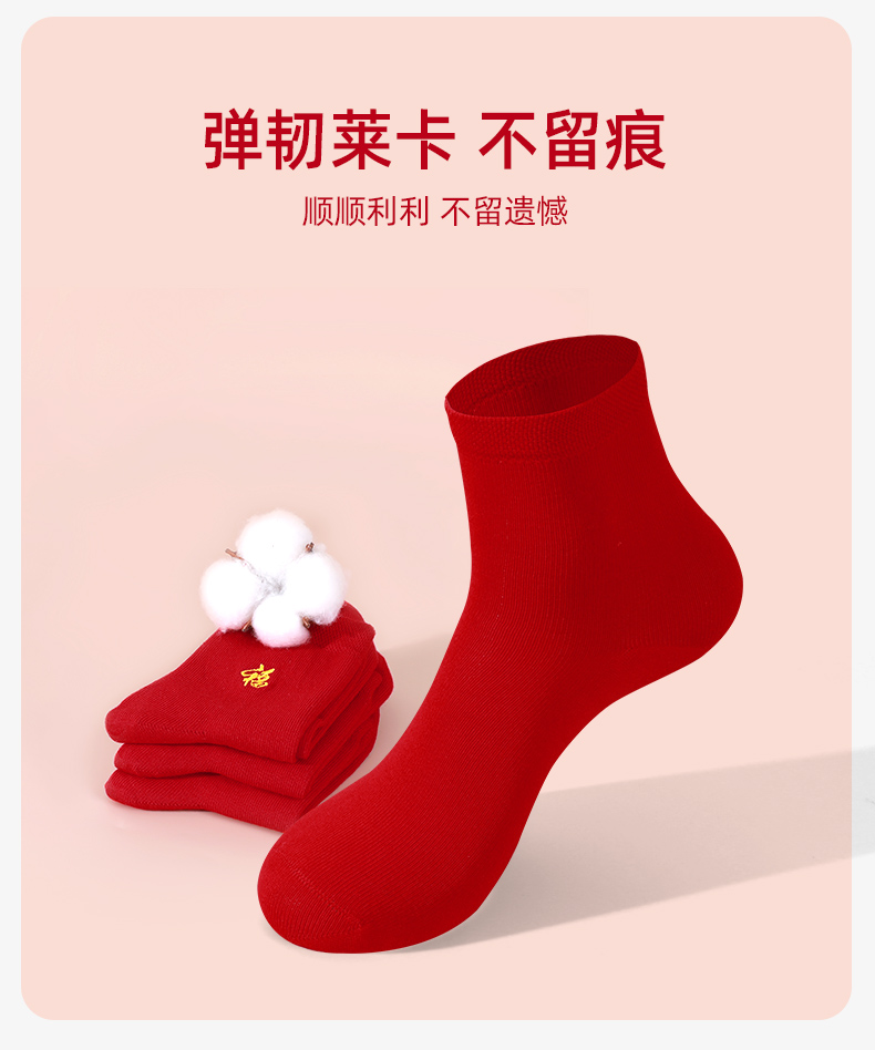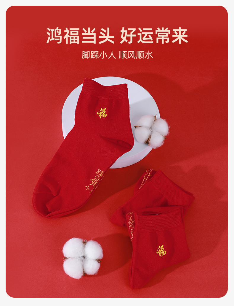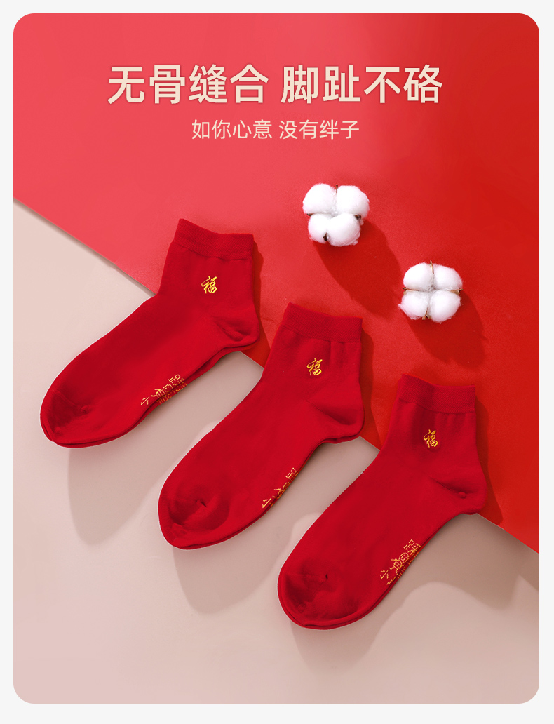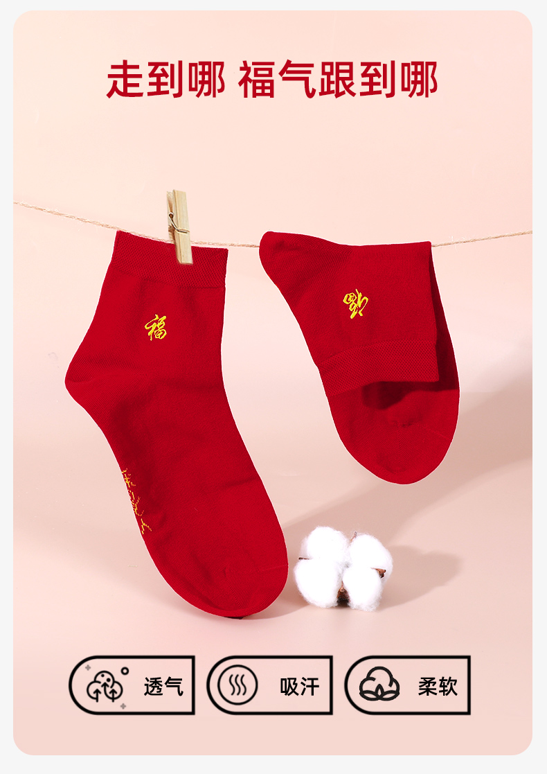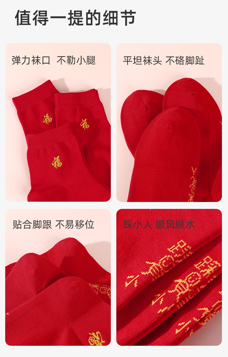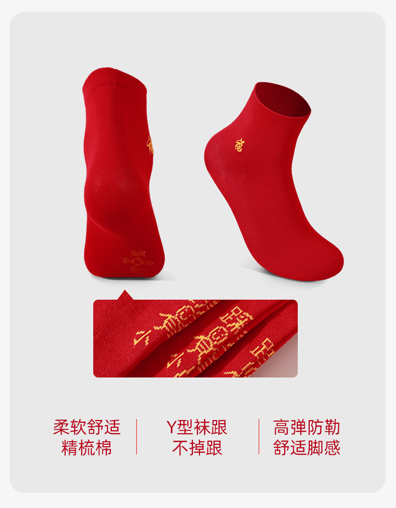 【拍3双39元】熳洁儿 男袜装精梳棉刺绣中筒袜柔软舒适本命年踩小人红品袜23714902