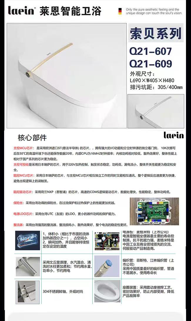 【德国莱恩】智能马桶 全功能+脚踢冲水Q21- 607/Q21-609
