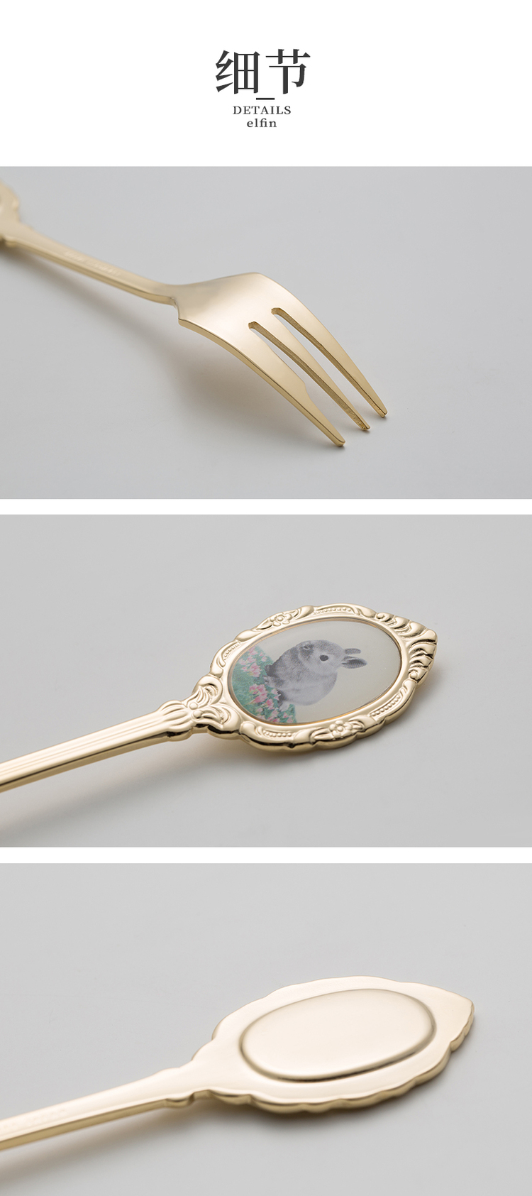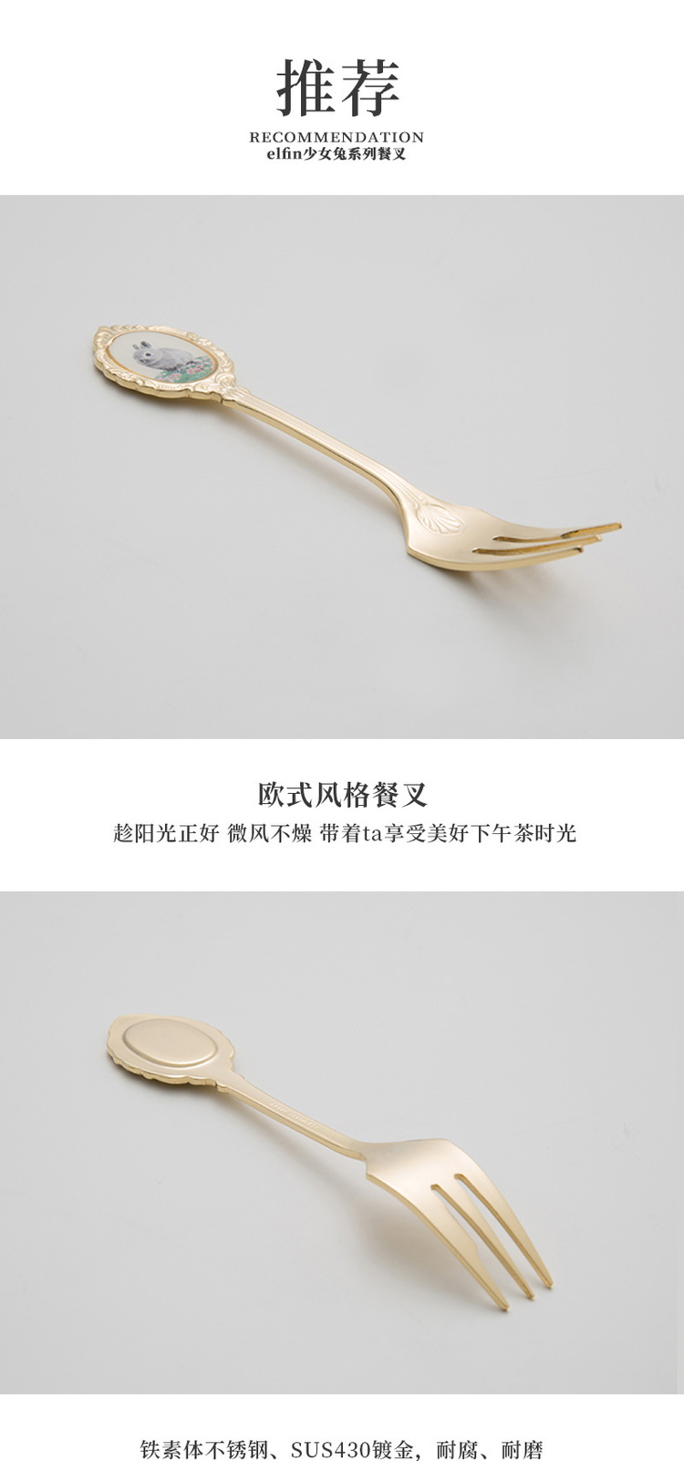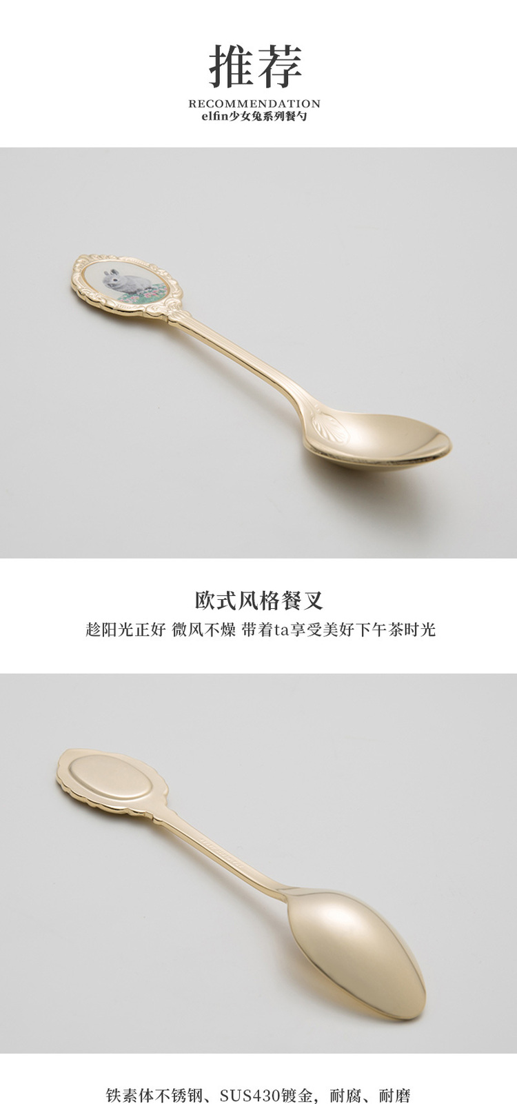 日本elfin少女兔系列餐叉叉子餐勺饭勺咖啡勺