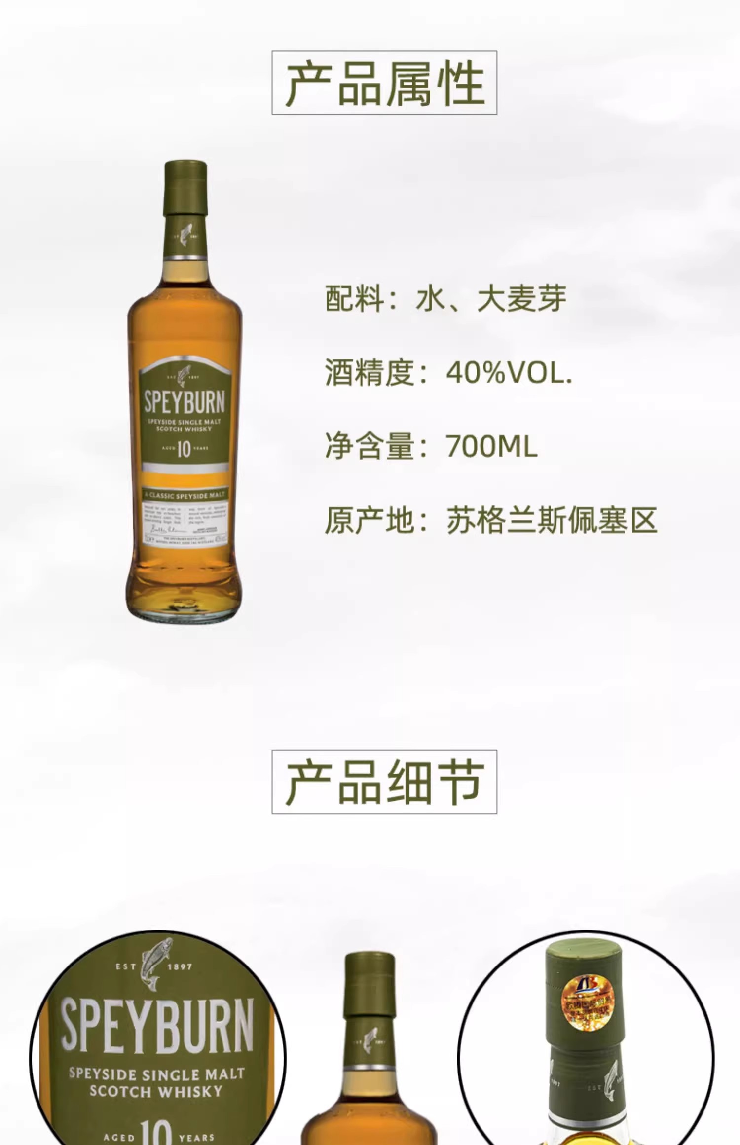 40° 盛贝本10年单一麦芽威士忌 700ml