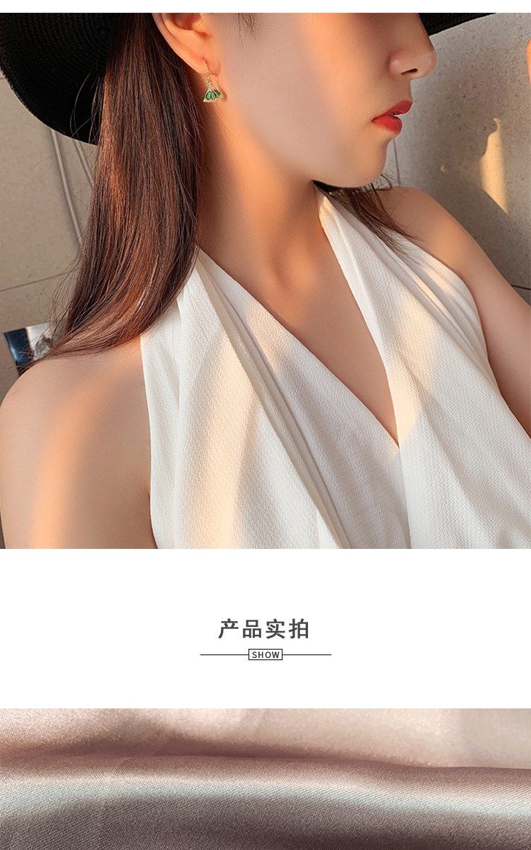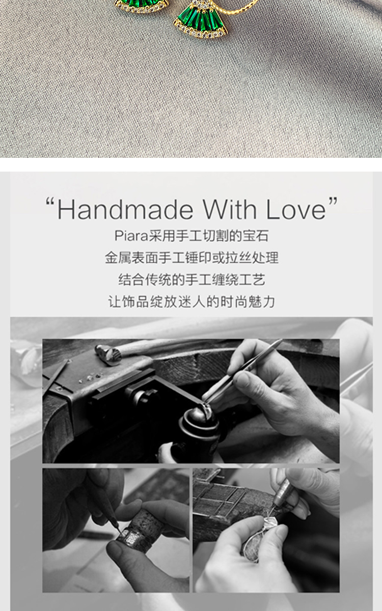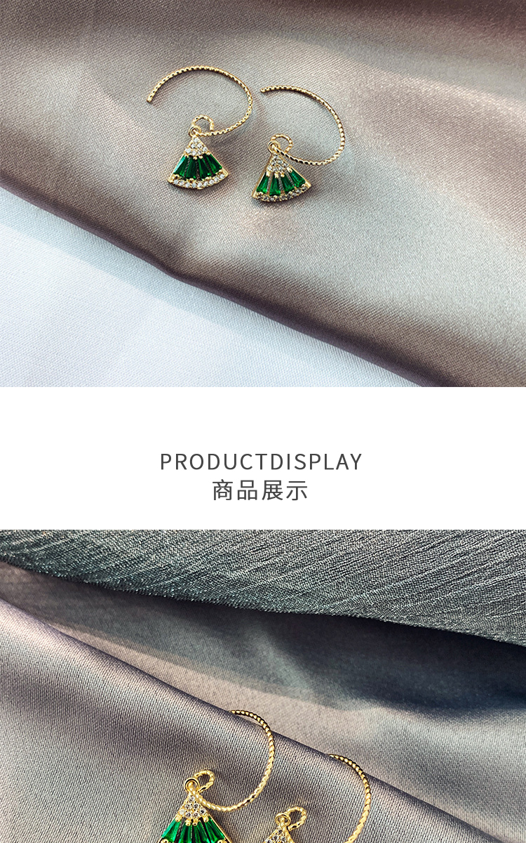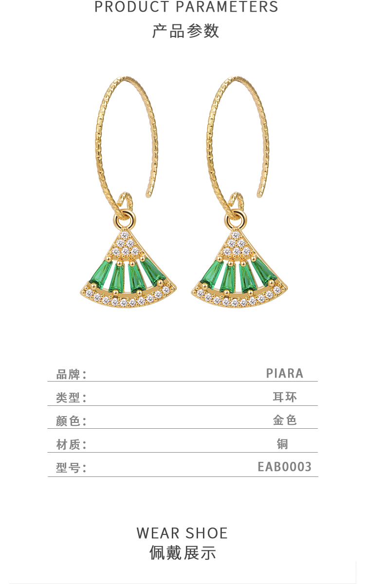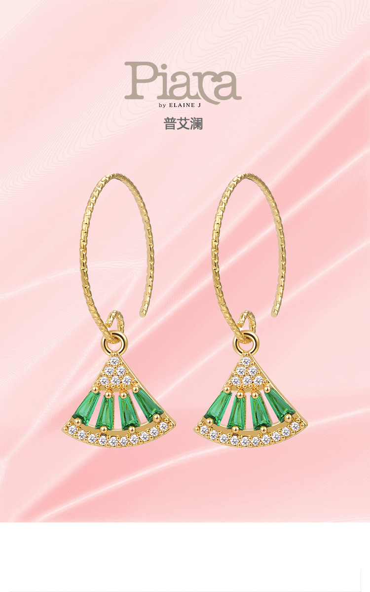 PIARA法式复古耳圈耳环气质锆石祖母绿扇影耳坠女微镶耳饰EAB0003