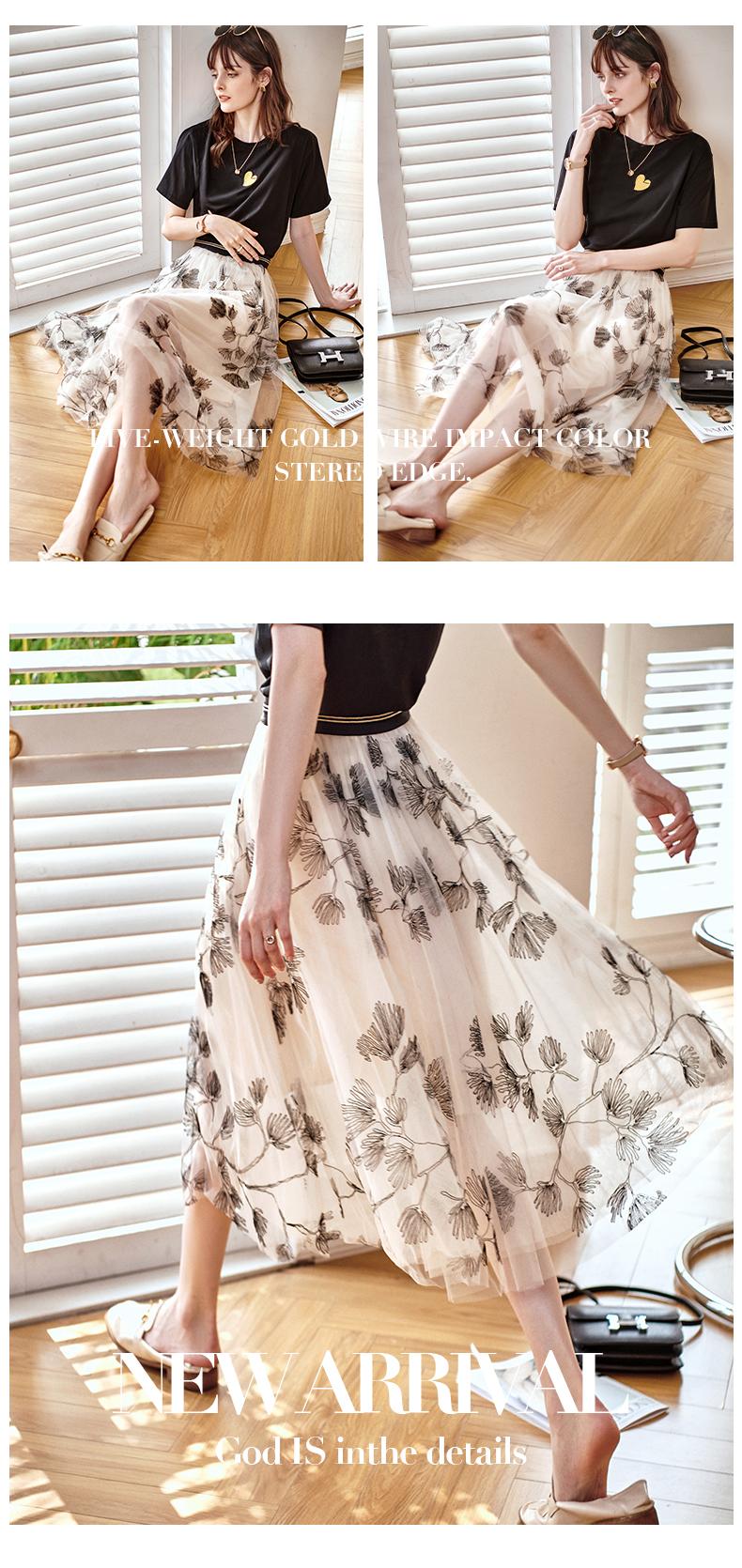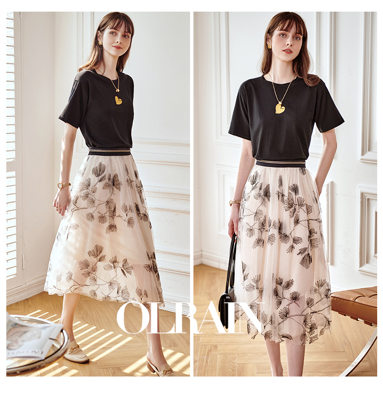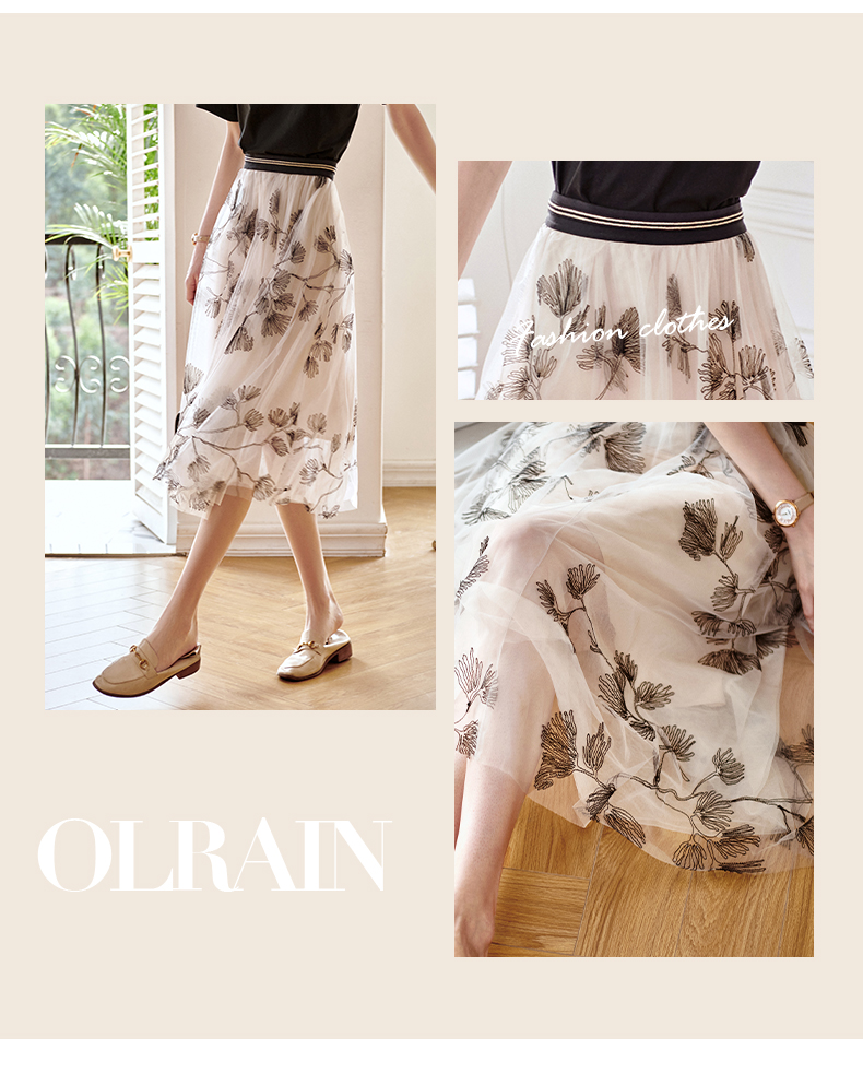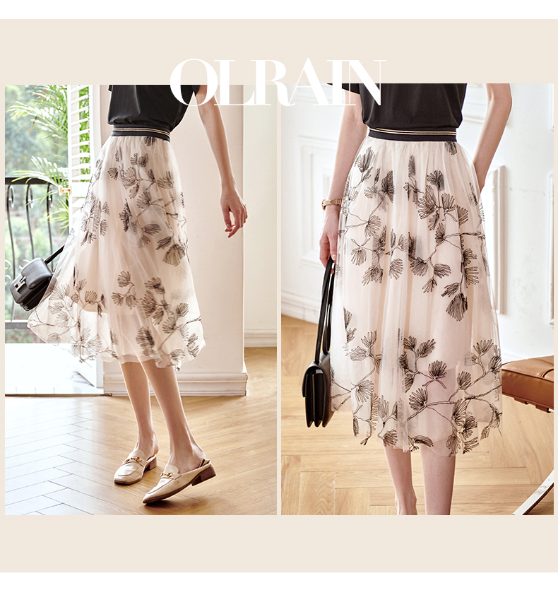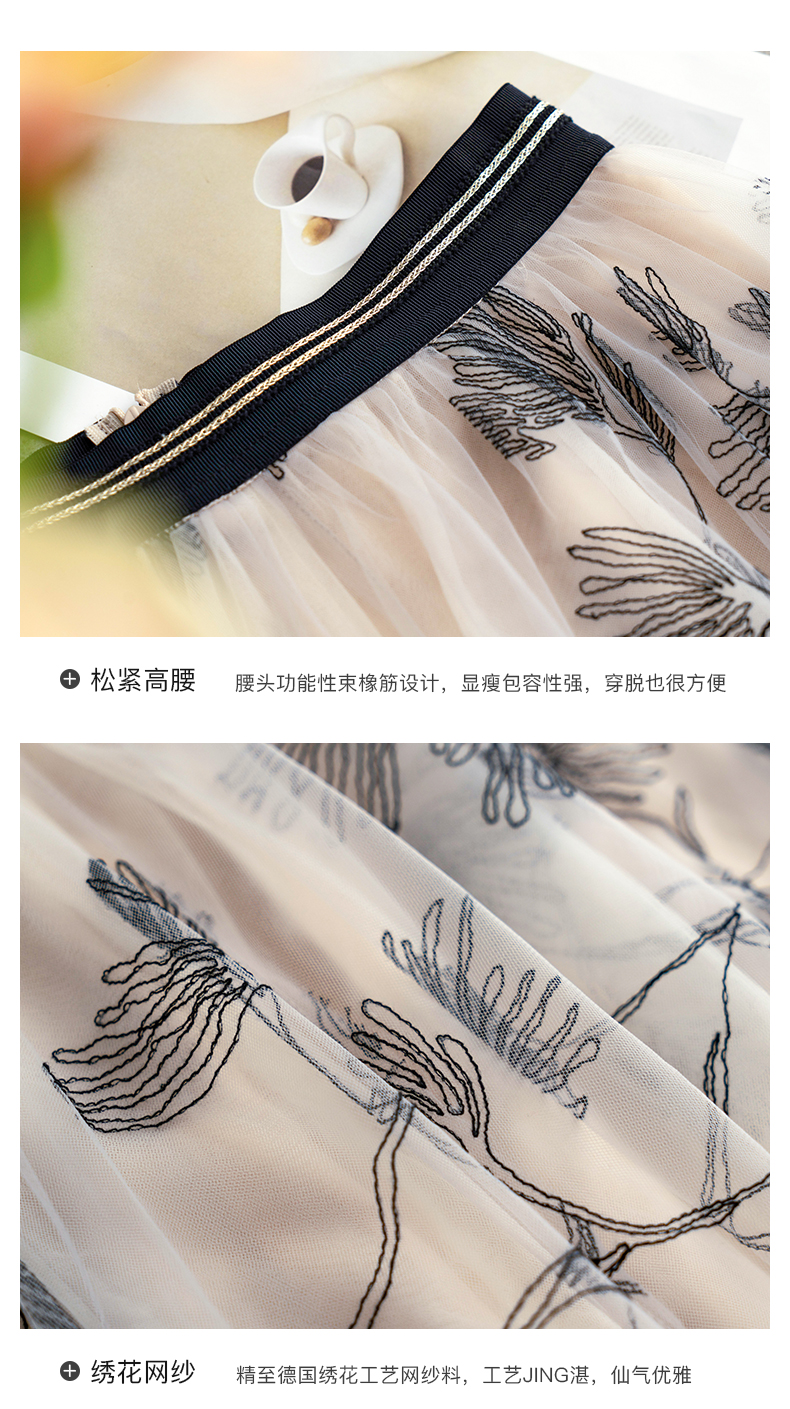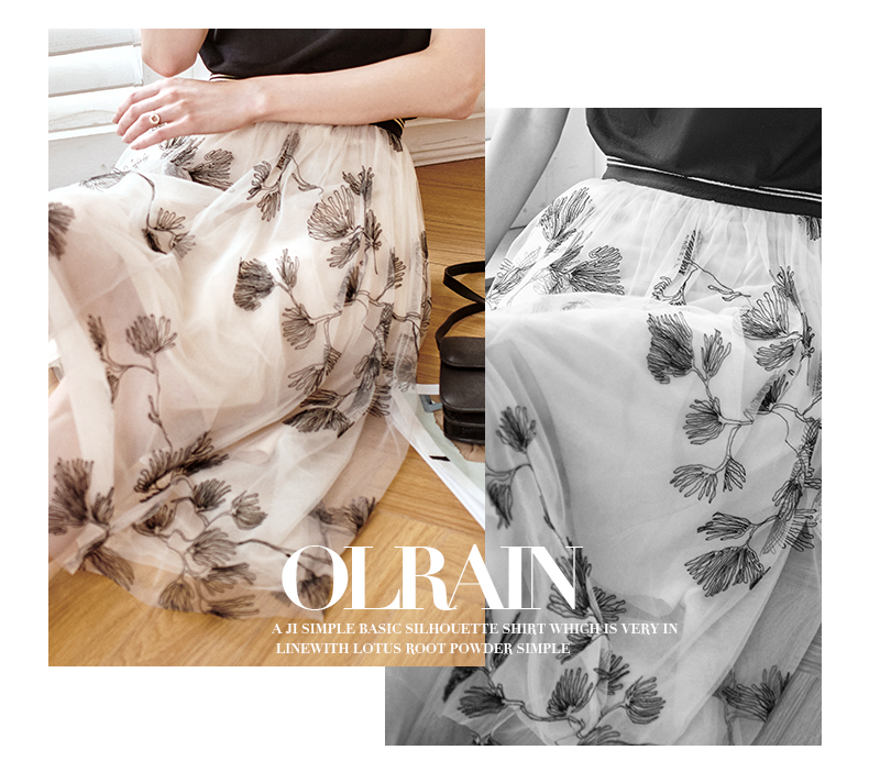 欧芮儿绣花网纱半身裙女夏2021新款高腰显瘦气质复古艺术感a字裙