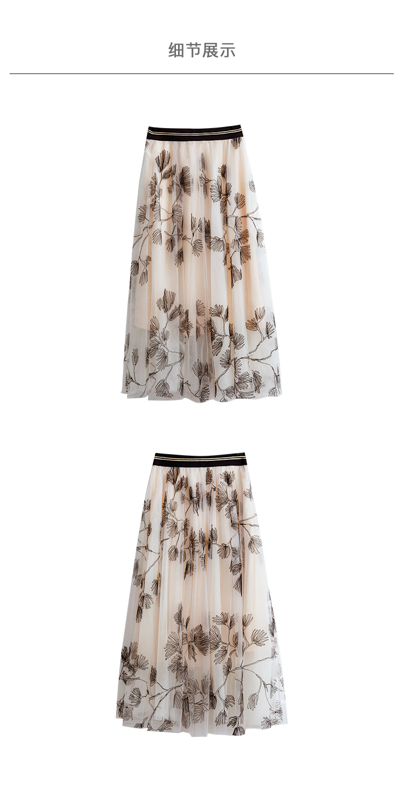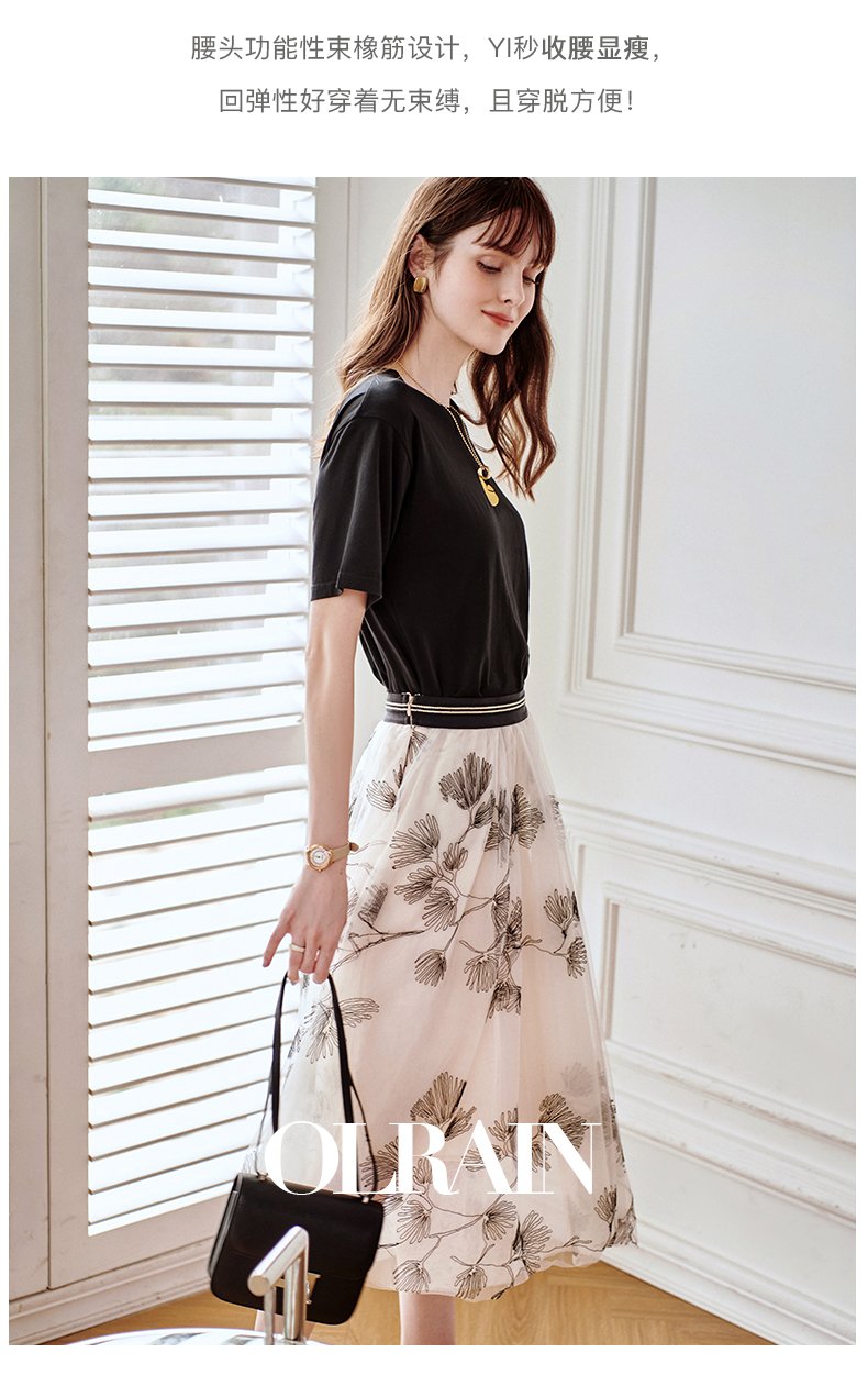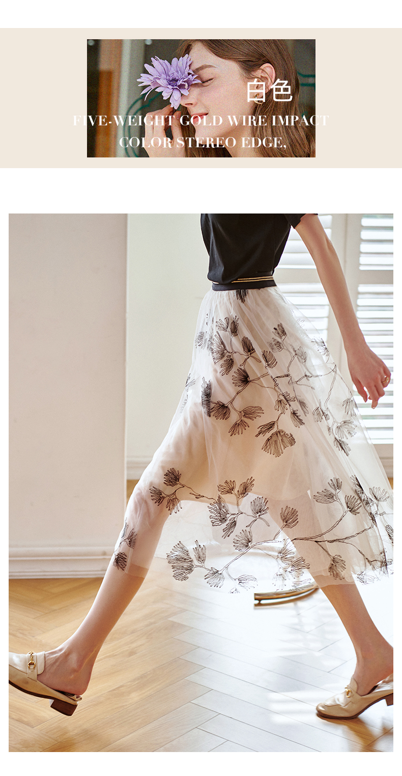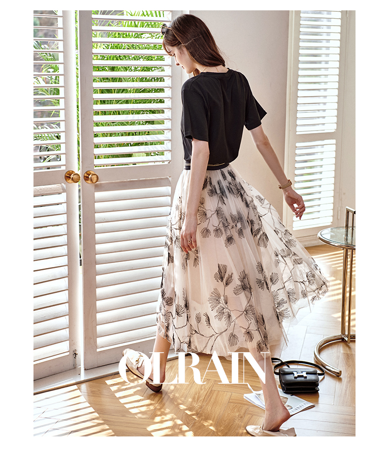 欧芮儿绣花网纱半身裙女夏2021新款高腰显瘦气质复古艺术感a字裙