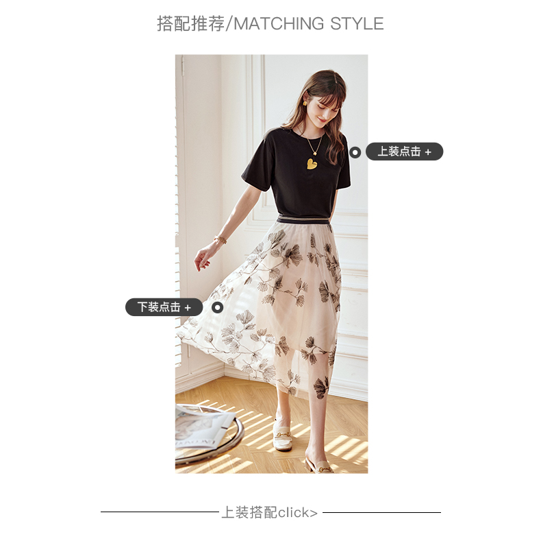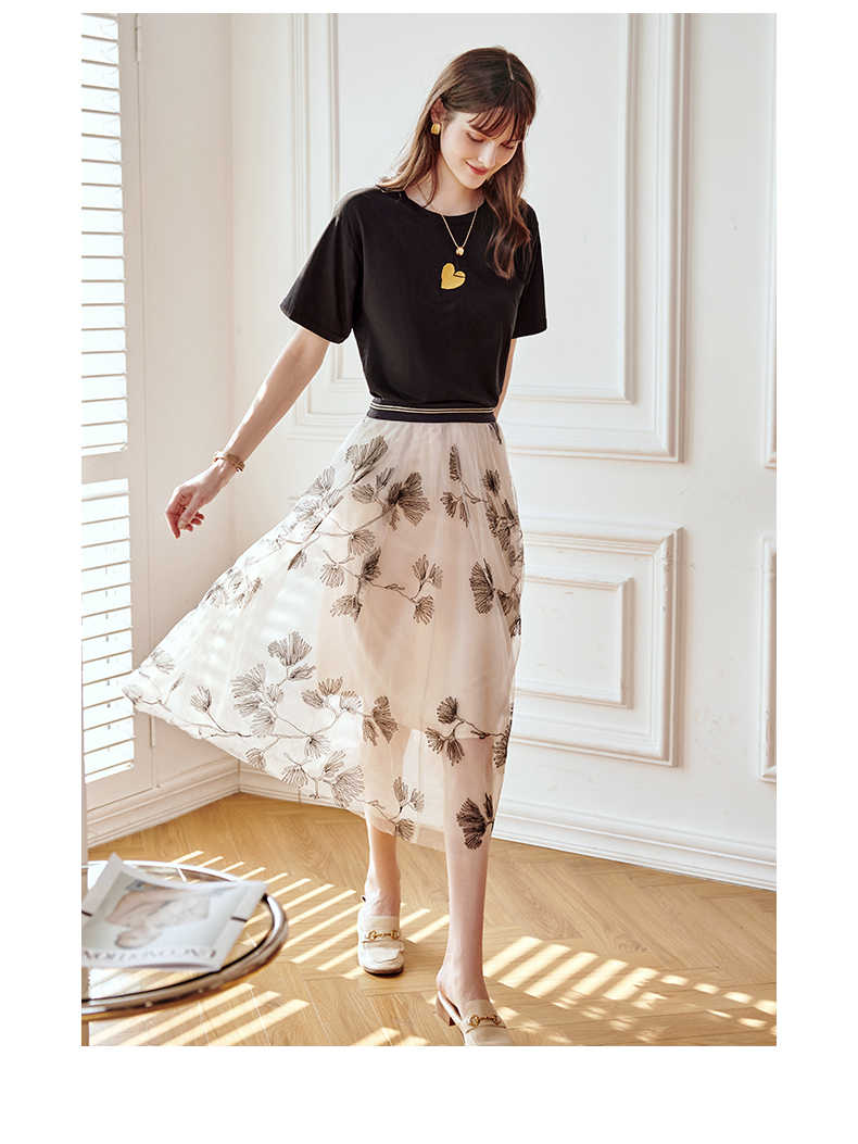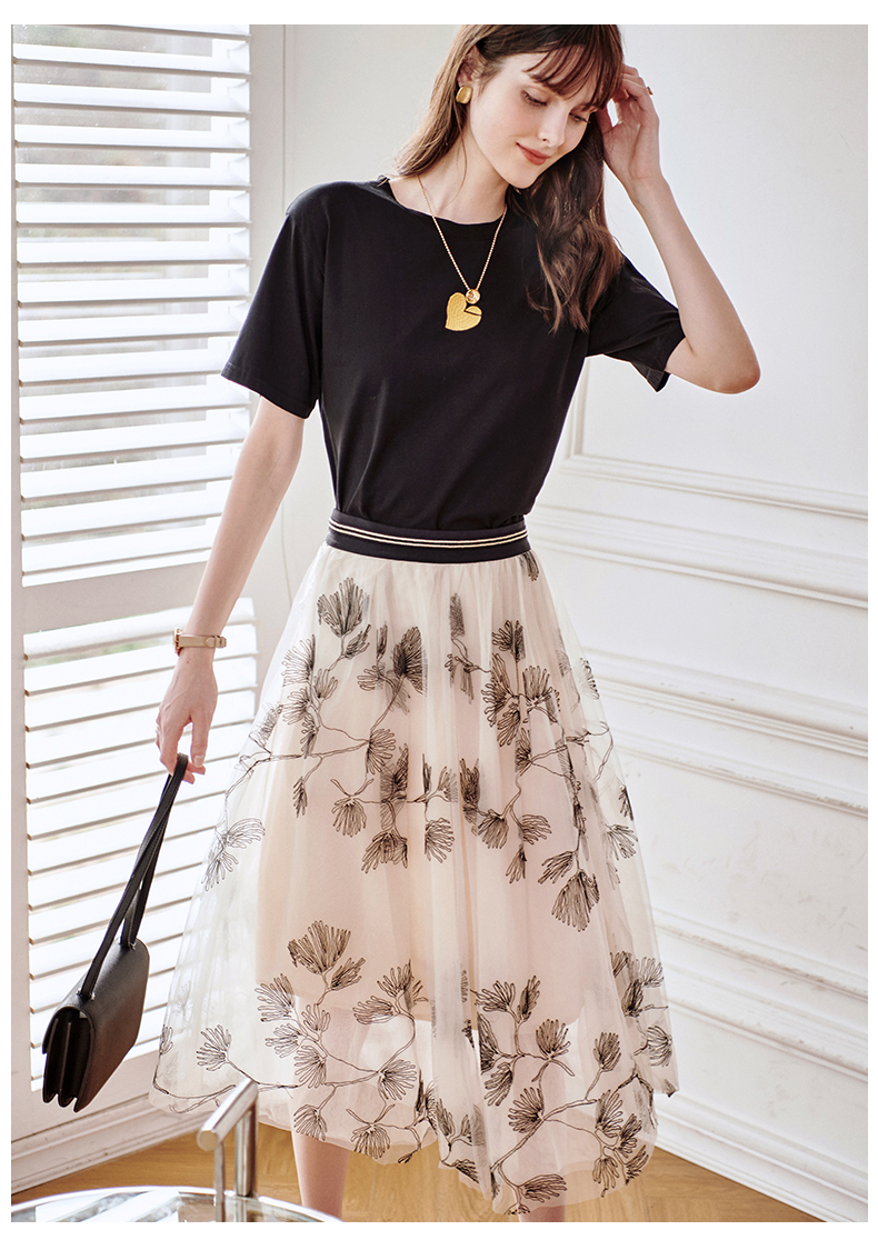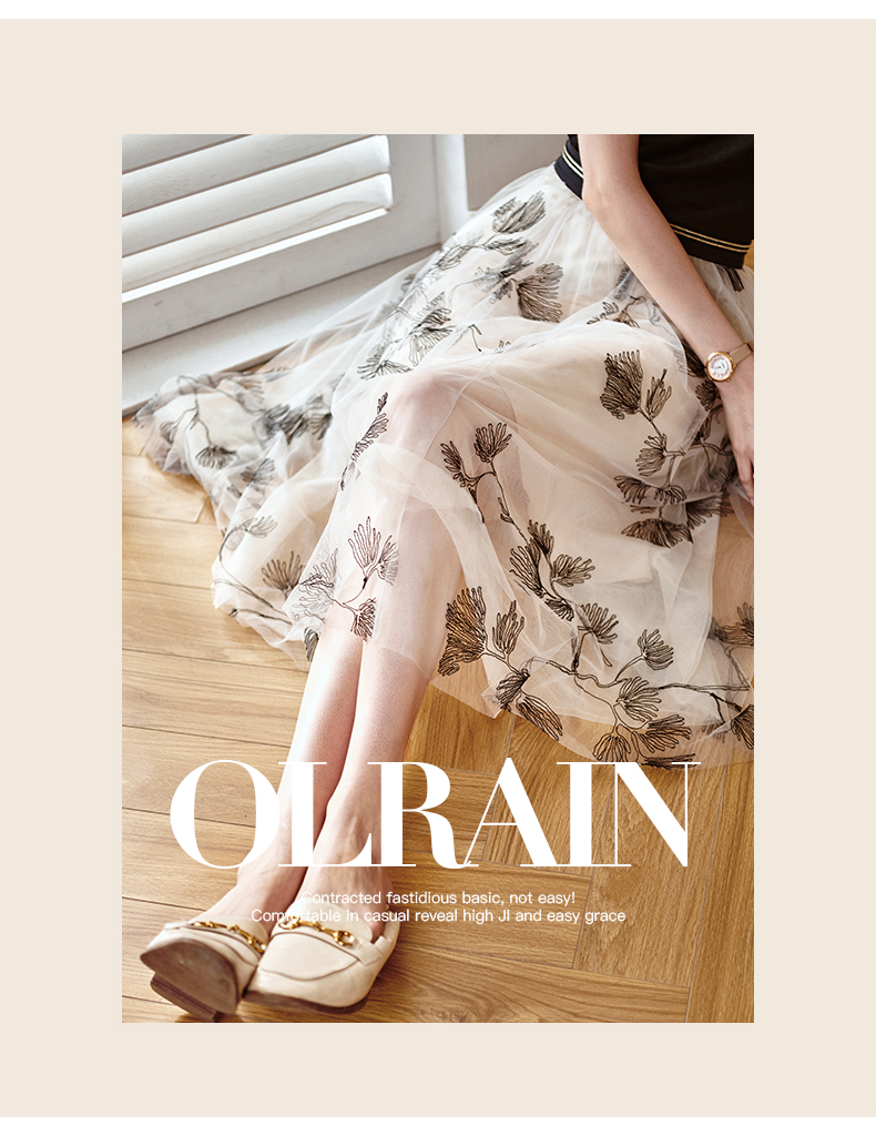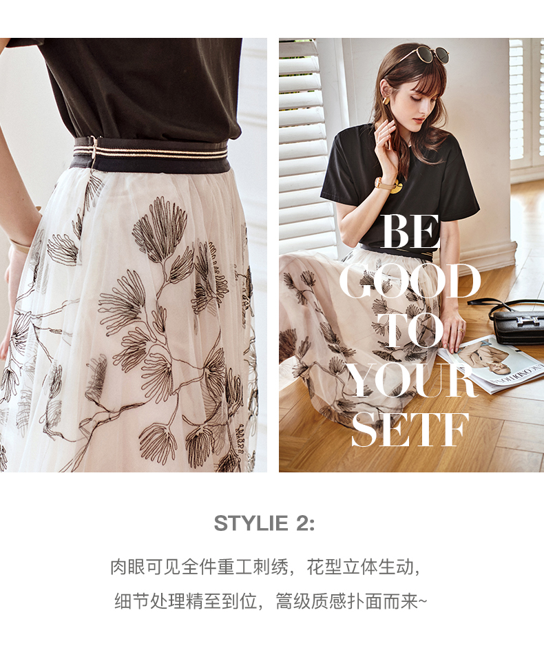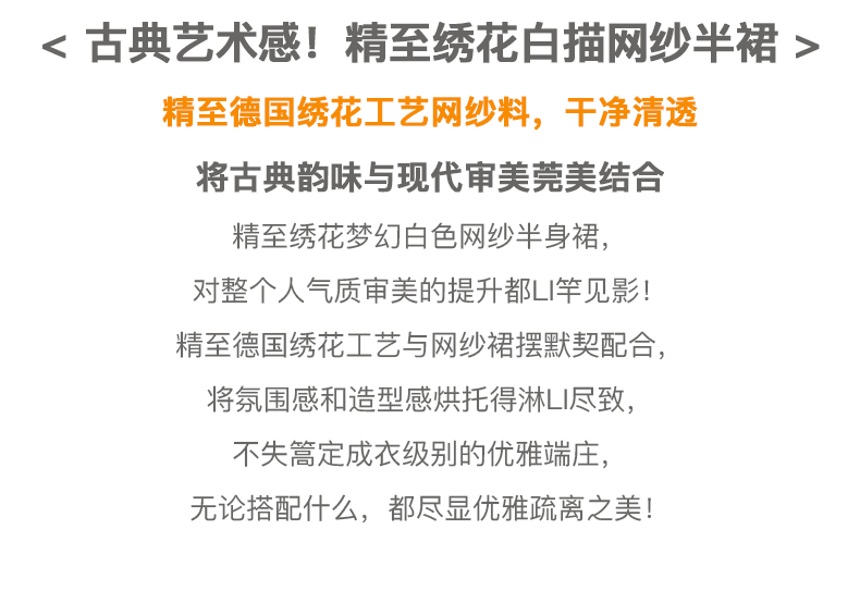 欧芮儿绣花网纱半身裙女夏2021新款高腰显瘦气质复古艺术感a字裙
