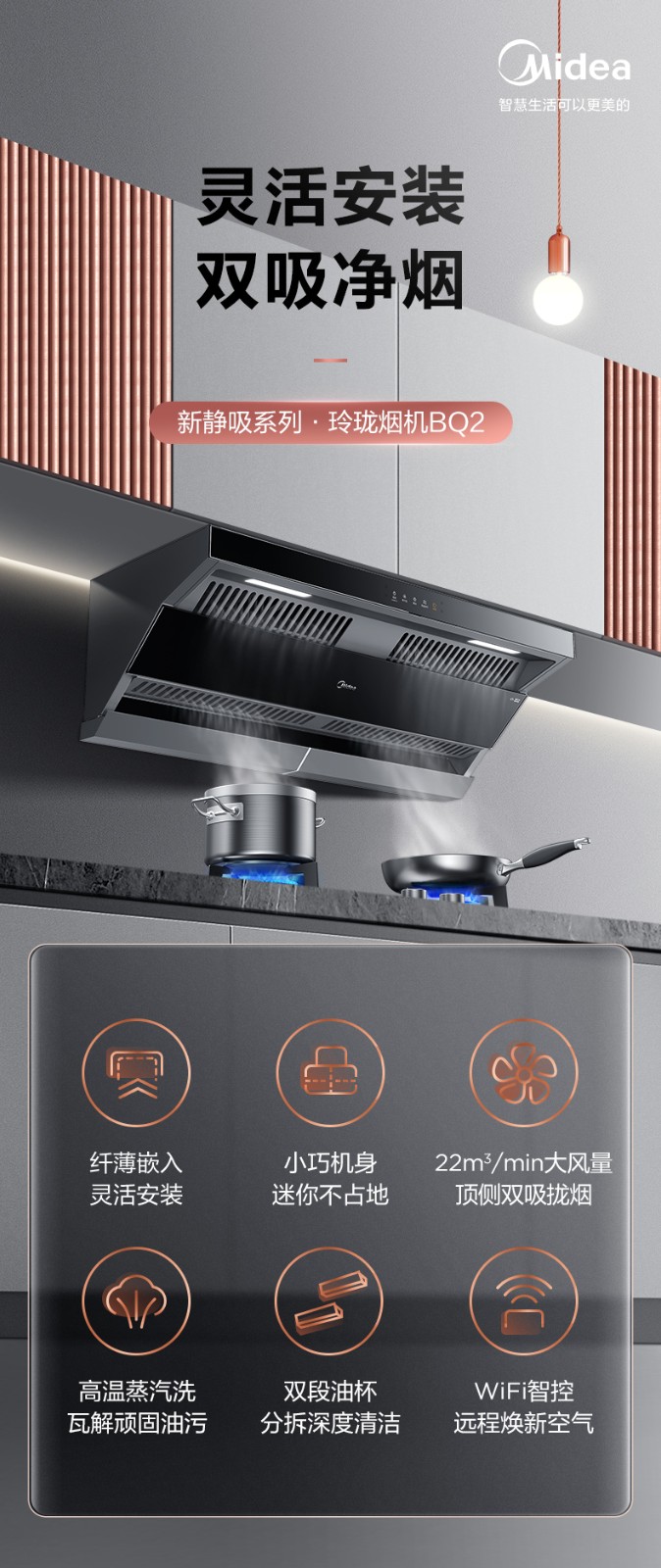 美的顶侧双吸抽油烟排烟CXW-280-BQ2 单烟 厨房电器