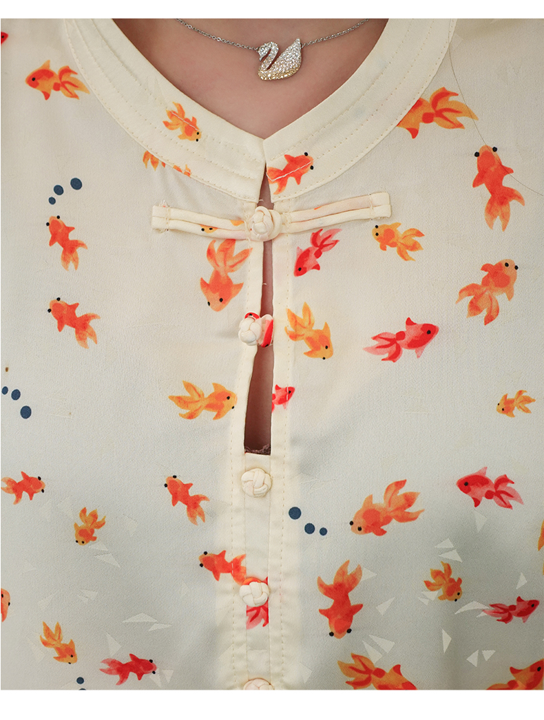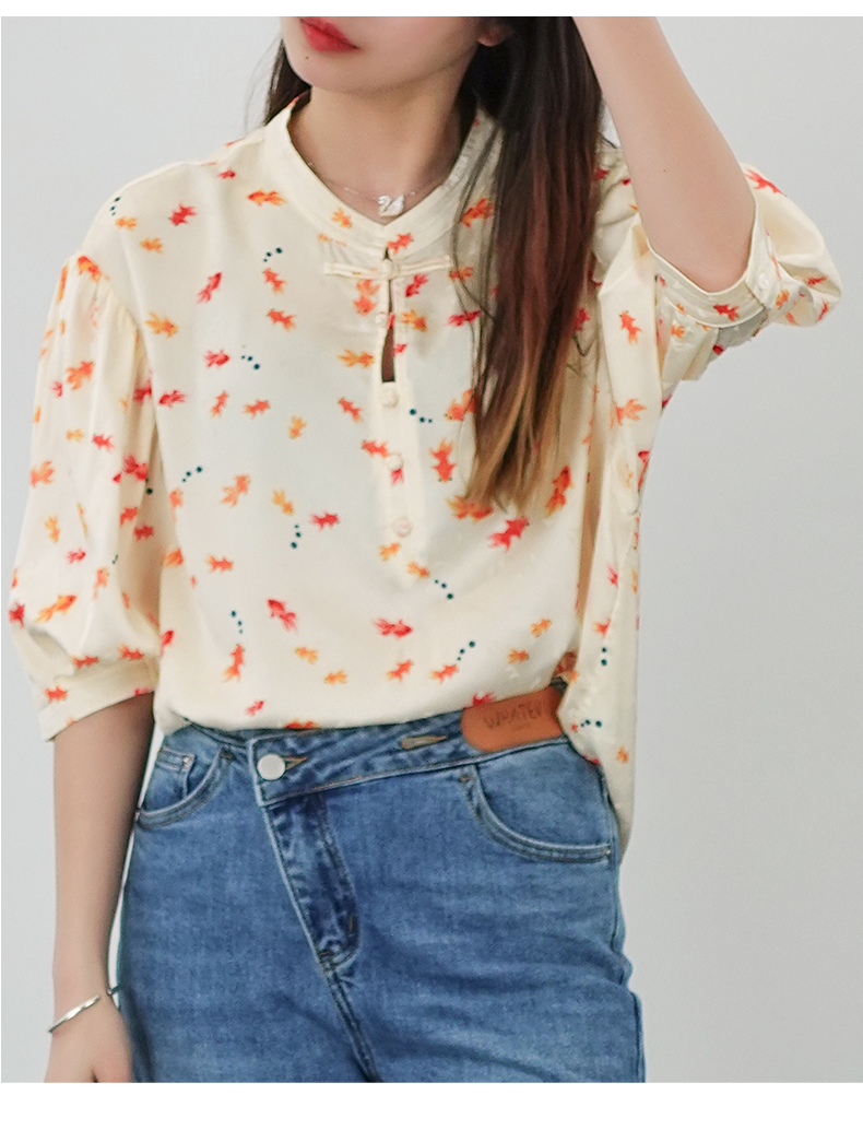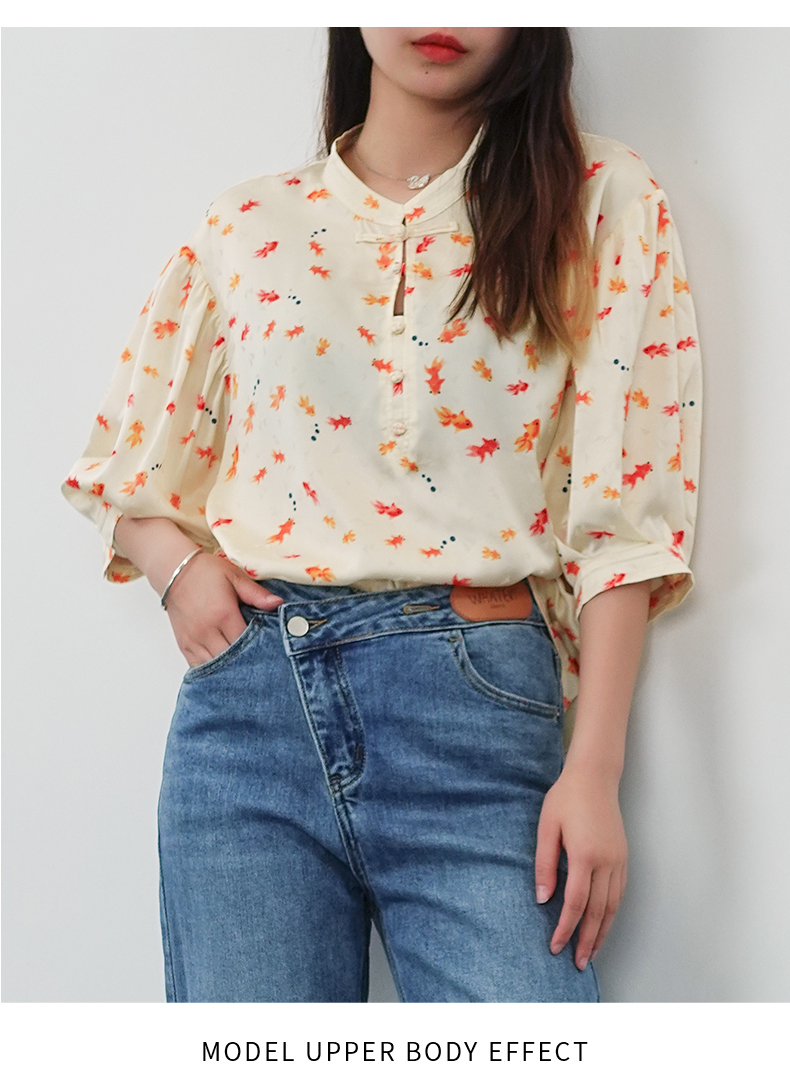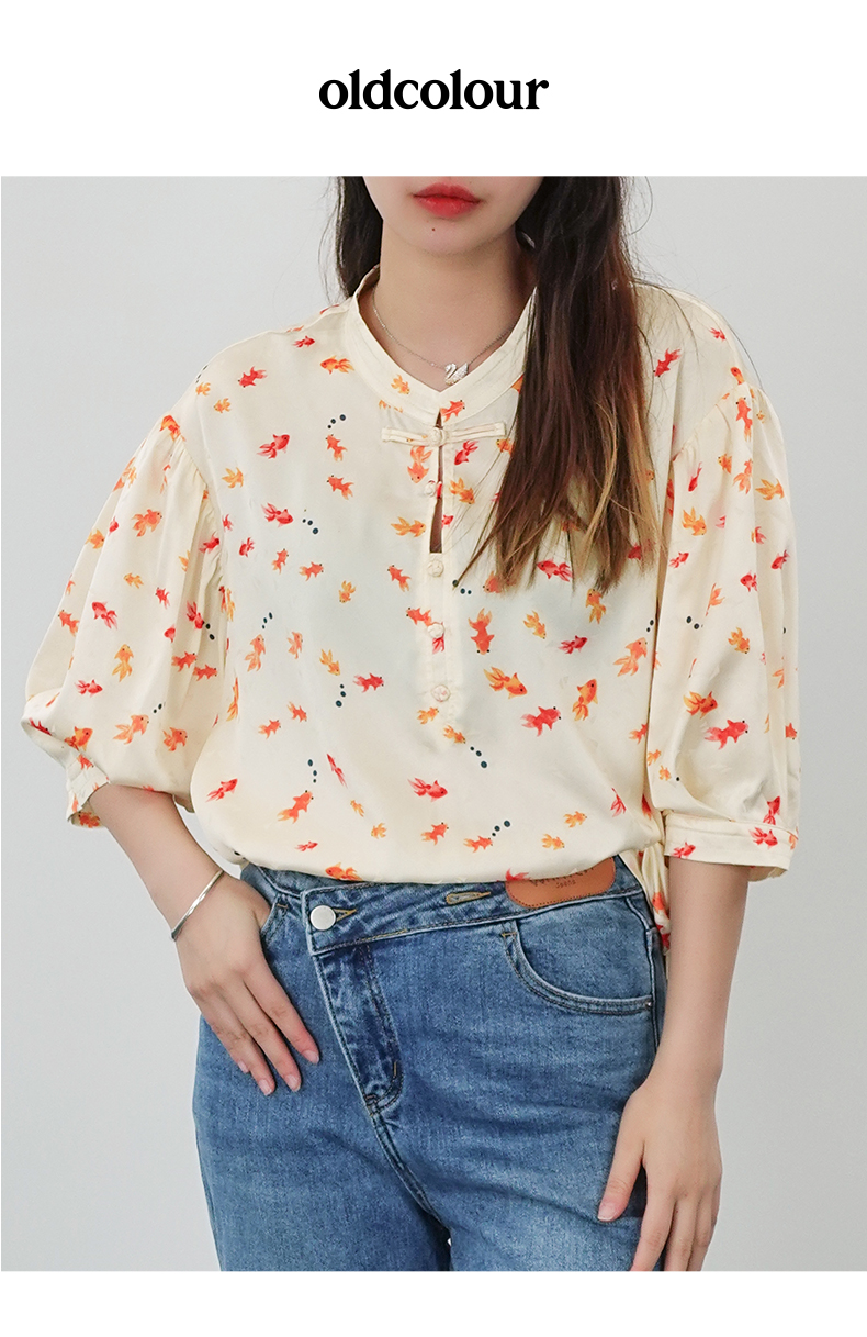 oldcolour2021夏宽松休闲上衣百搭复古花色旗袍衬衫N22011297