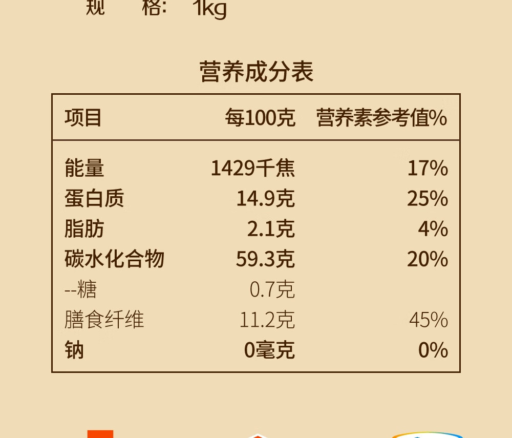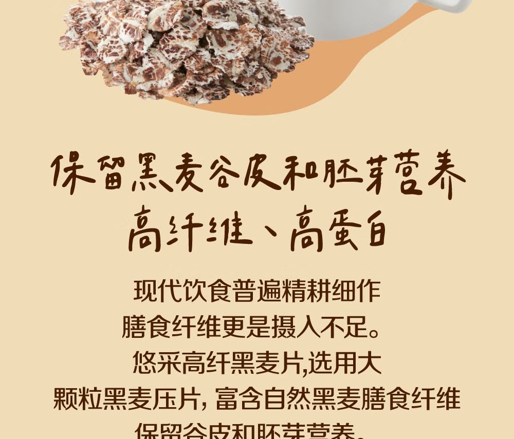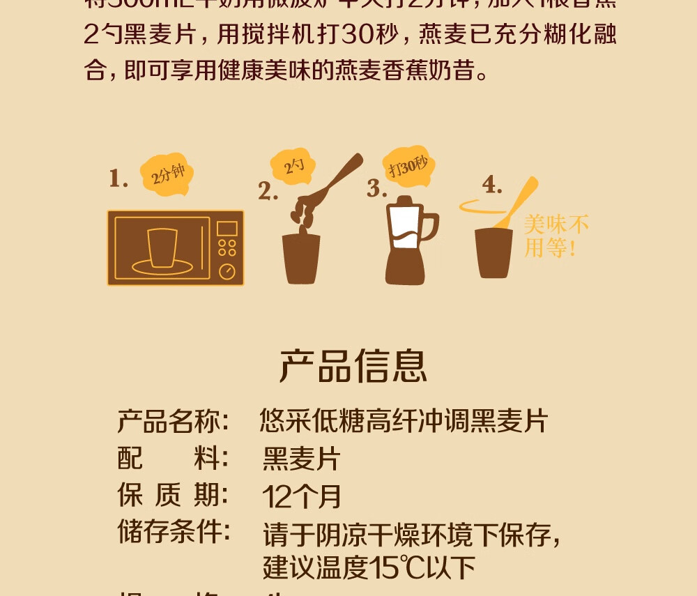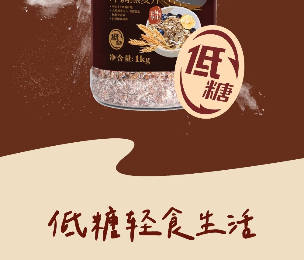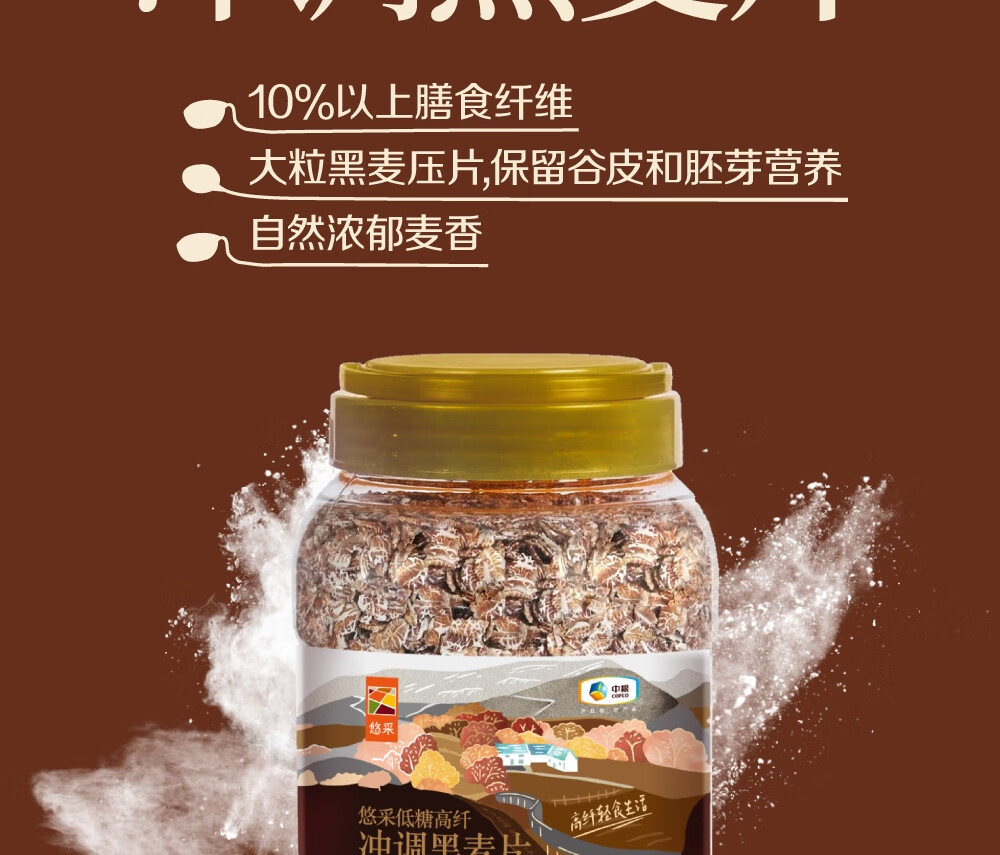 中粮悠采低糖高纤冲调黑麦片1kg/罐