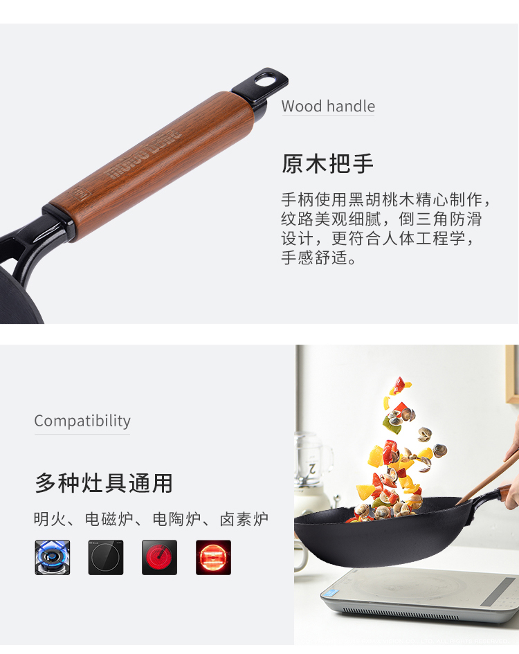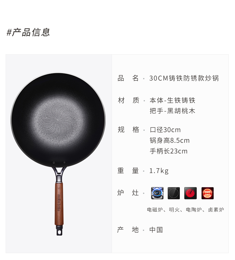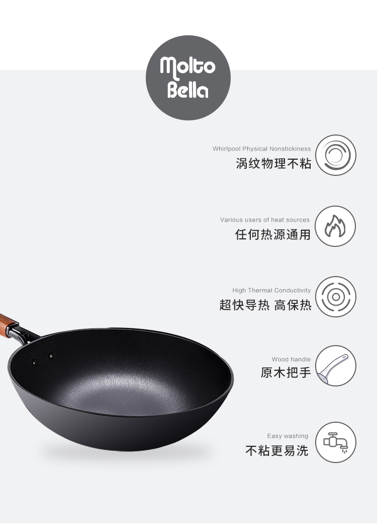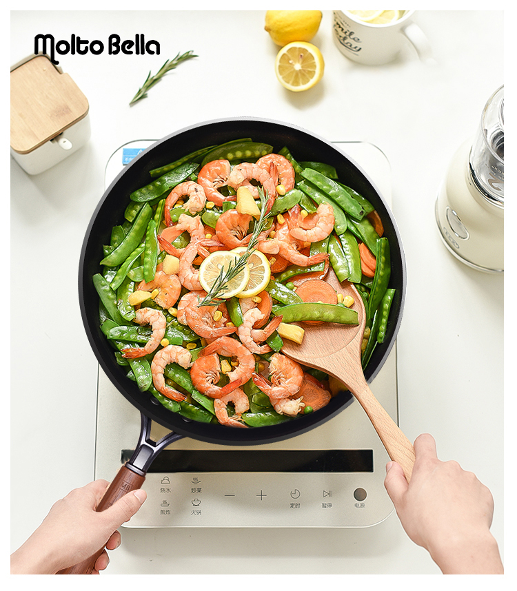 🎁乐美雅moltobella 轻质铸铁炒锅30cm-高盖