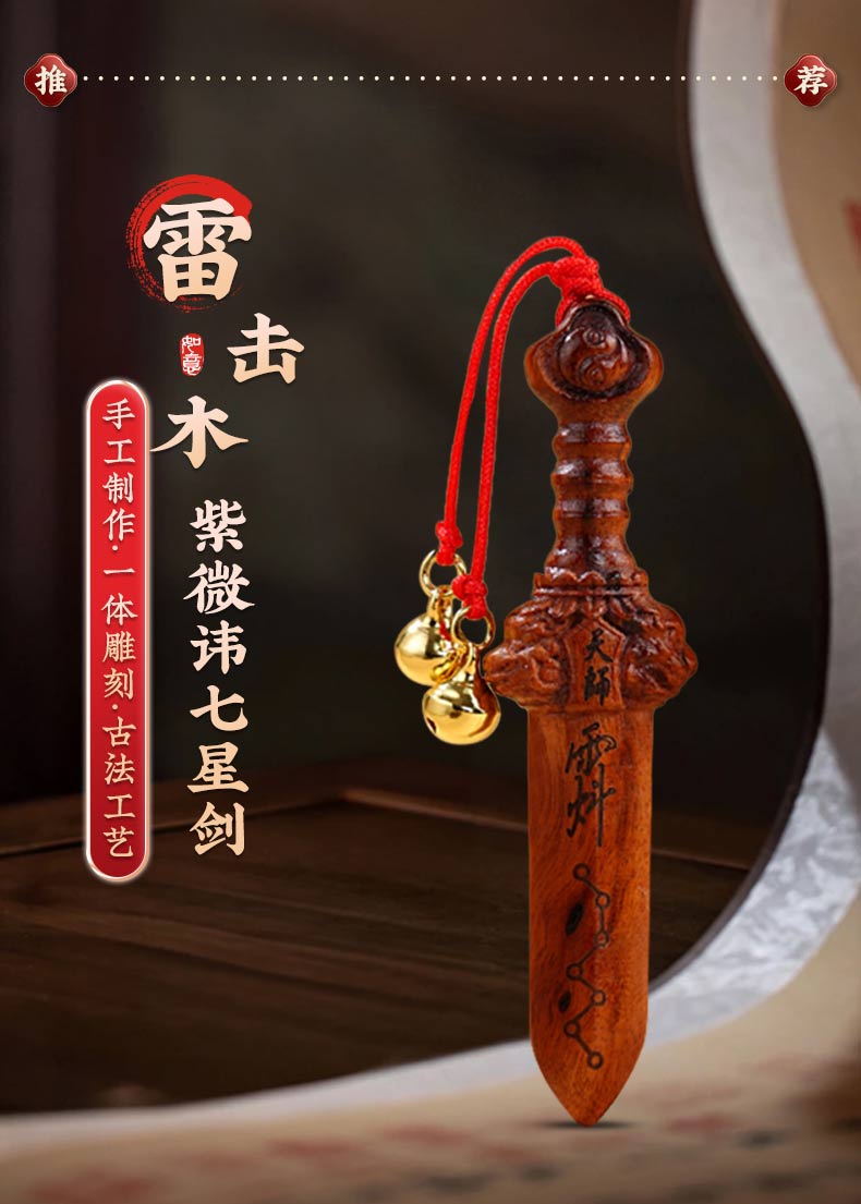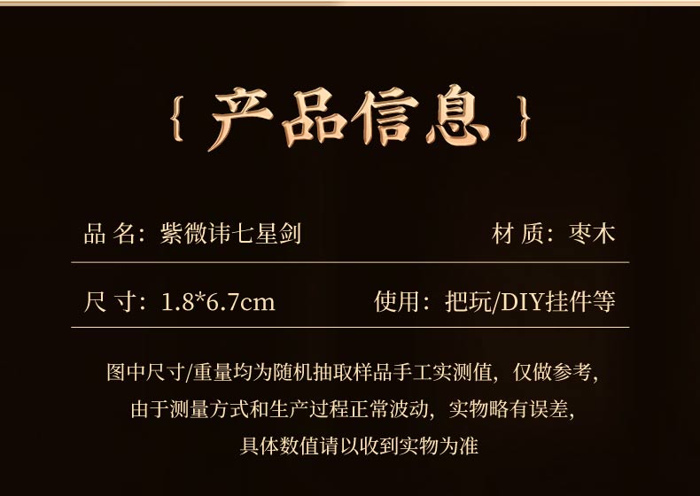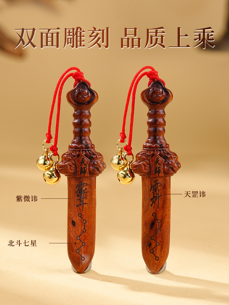 雷击木手把件七星剑紫微天罡讳挂件随身文玩工艺品
