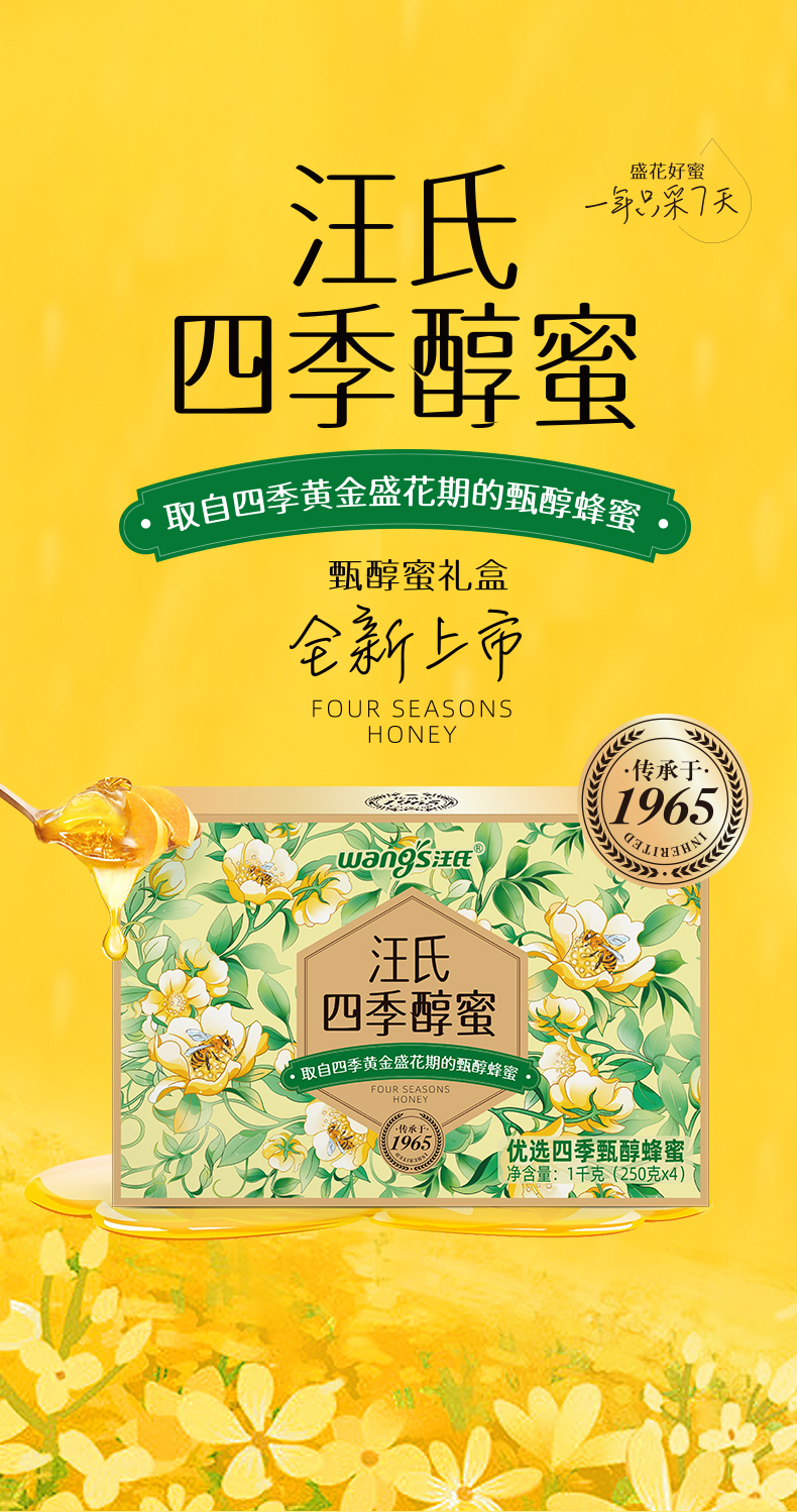 汪氏官方旗舰店蜂蜜纯正天然四季醇蜜礼盒玻璃装蜂蜜高档蜂蜜礼盒美味营养 畅享甜蜜四季
