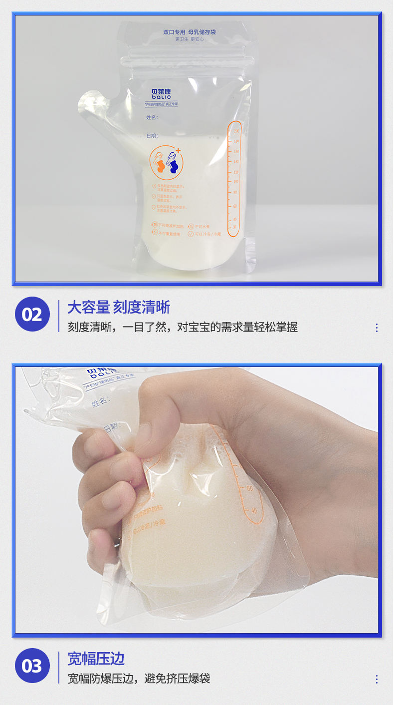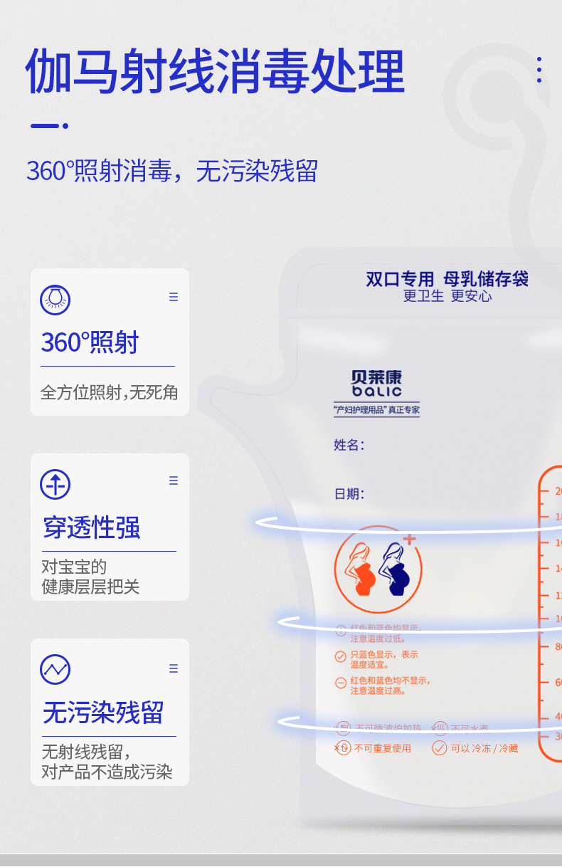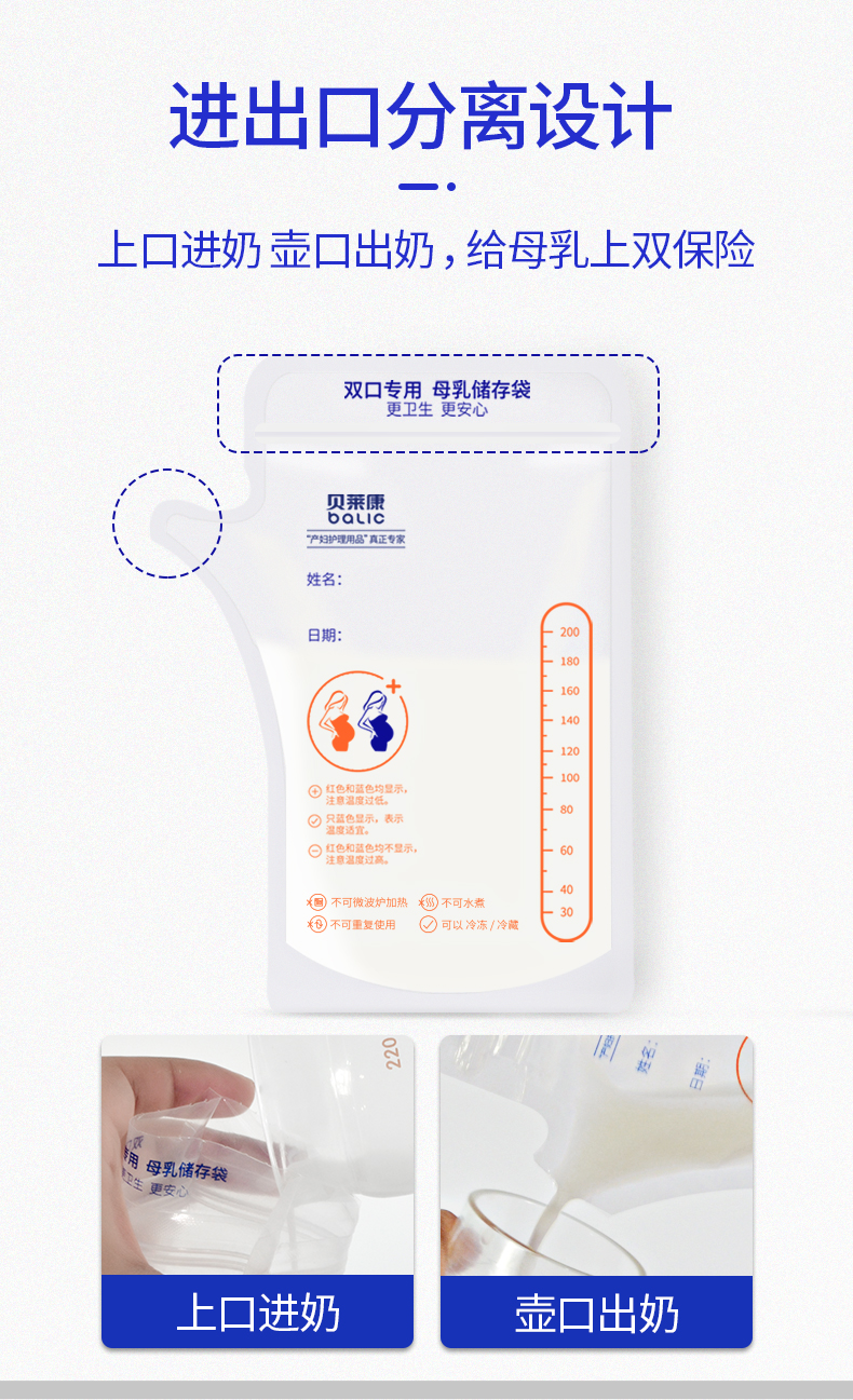 贝莱康双口专用母乳储存袋200ml30枚-盒
