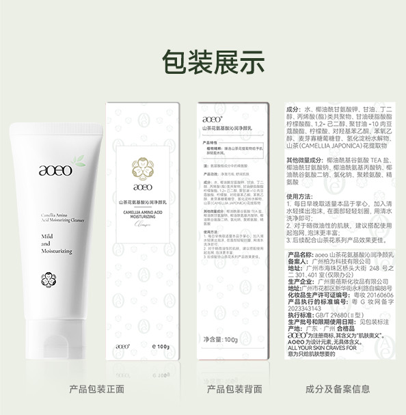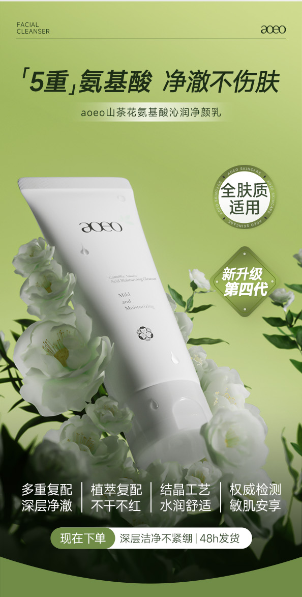 【混知推荐】 aoeo丨山茶花5重氨基酸沁润净颜乳洗面奶100g*3 拍1到手12件
