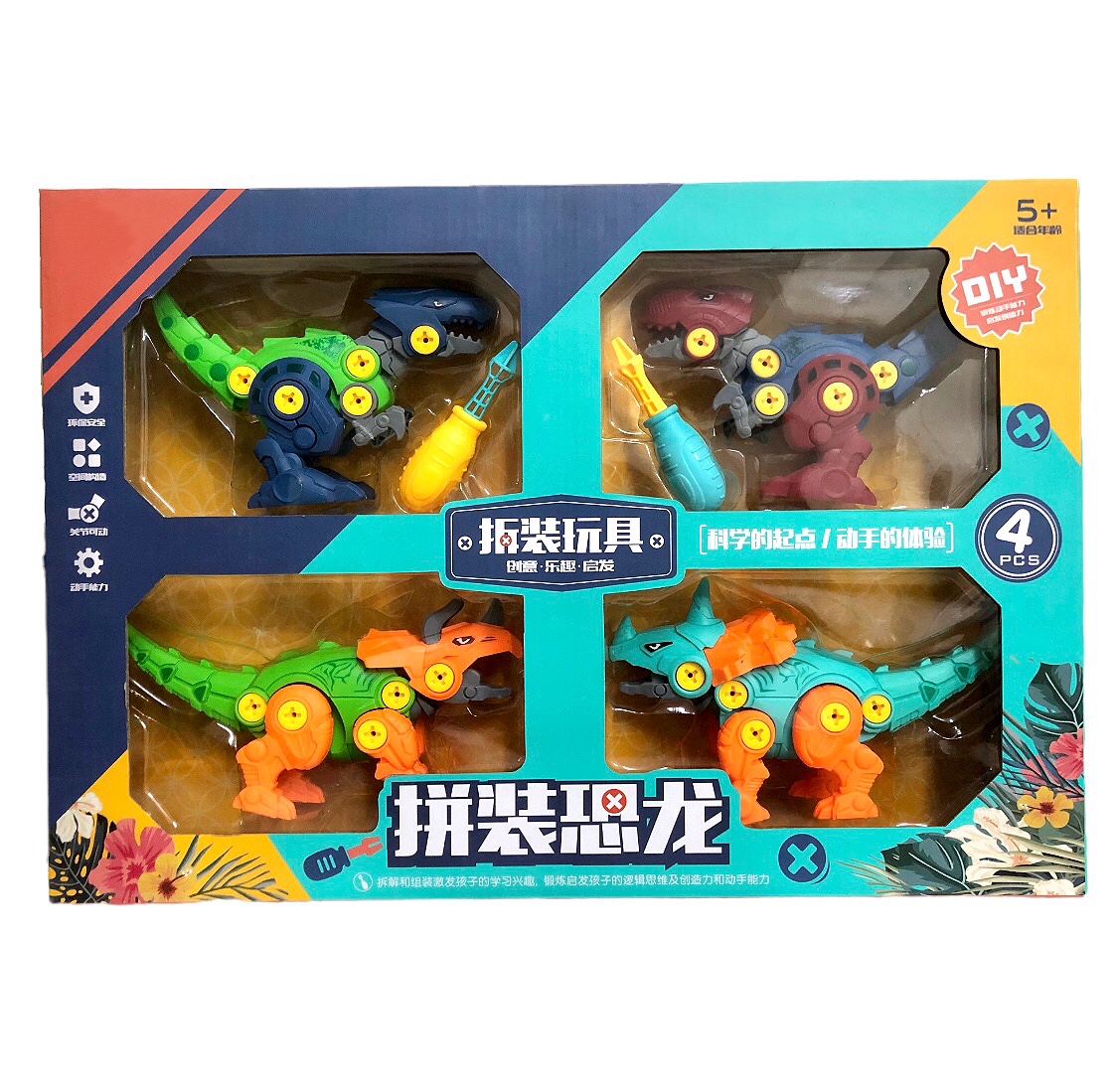 骏辉四只拼装恐龙彩盒装PZ830拼装玩具益智拆装仿真儿童拧螺丝智力开发