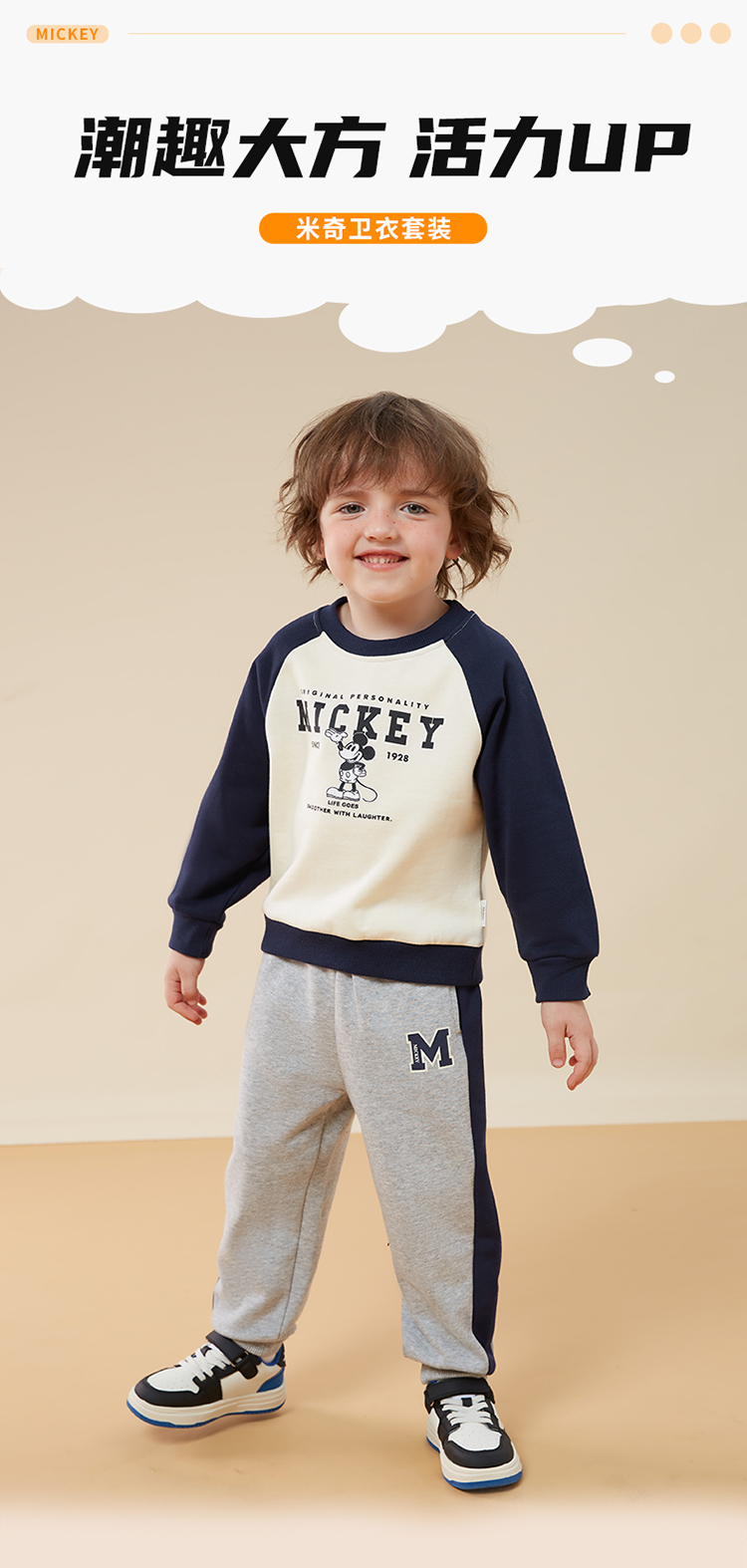 迪士尼童装男童套装时尚米奇儿童卫衣套装舒适柔软ZD3CT016