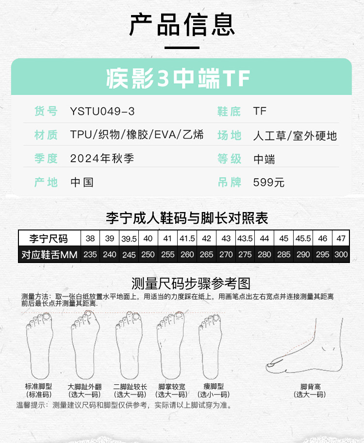 小李子Lining李宁疾影中端TF碎钉比赛训练足球鞋成人男YSTU049-3