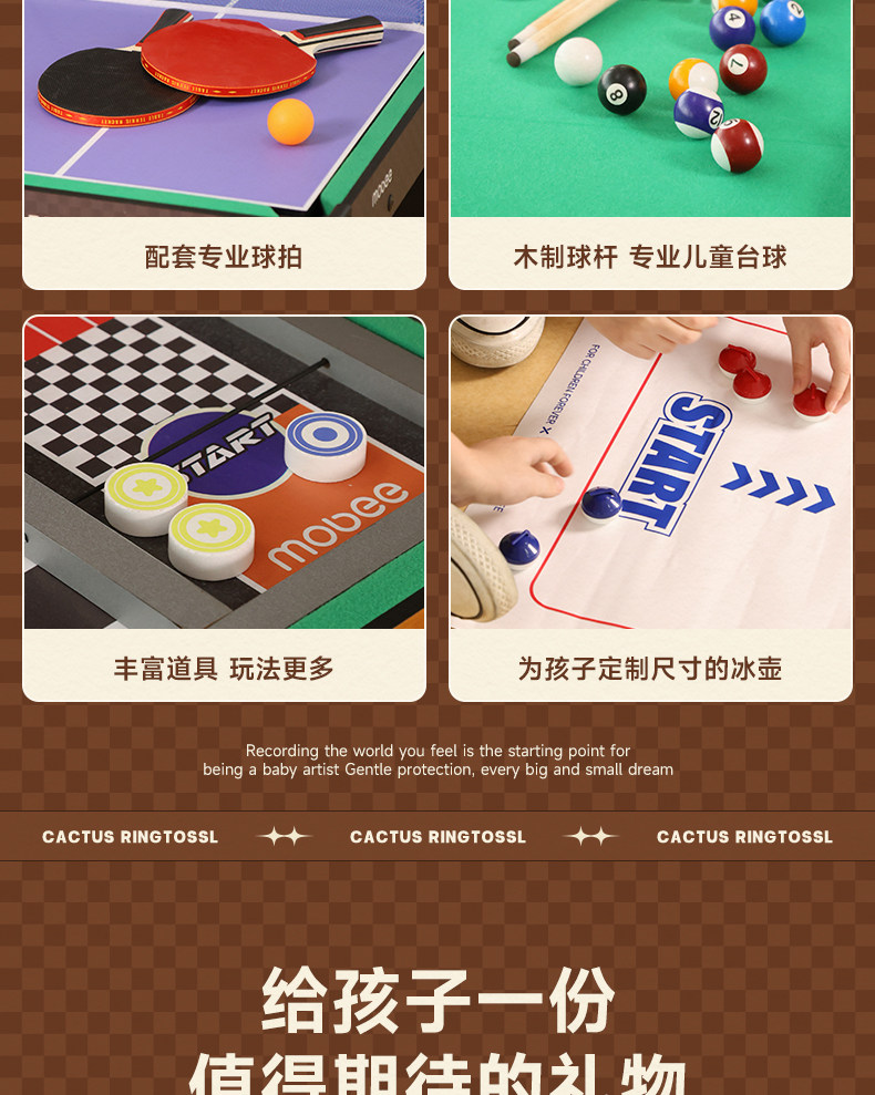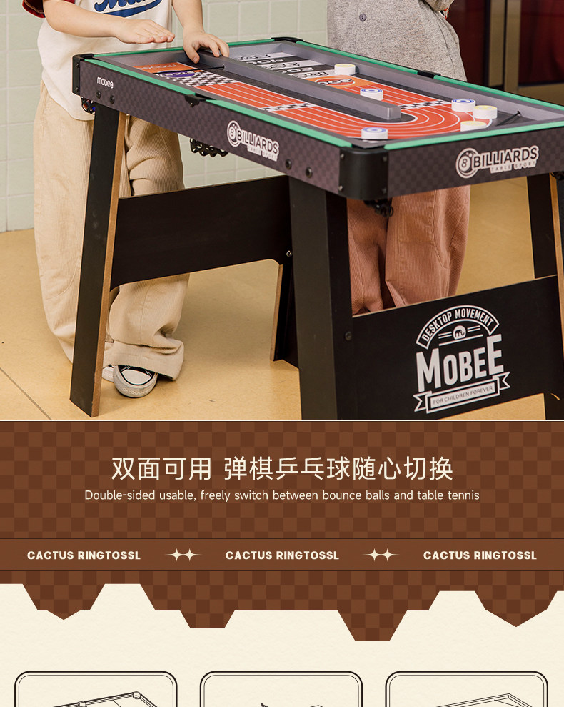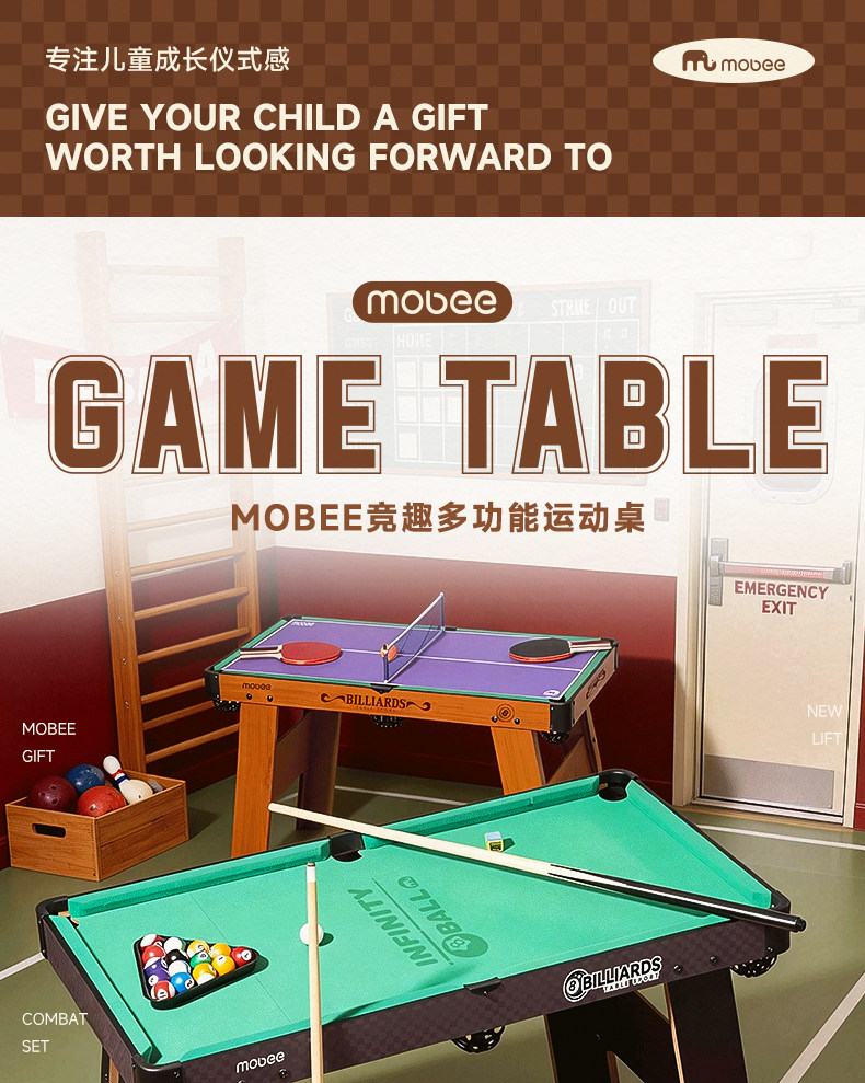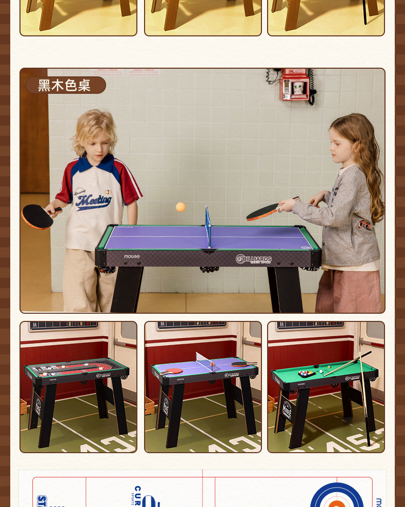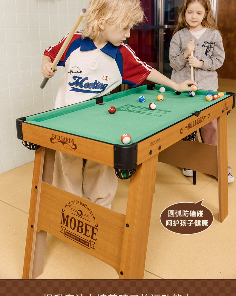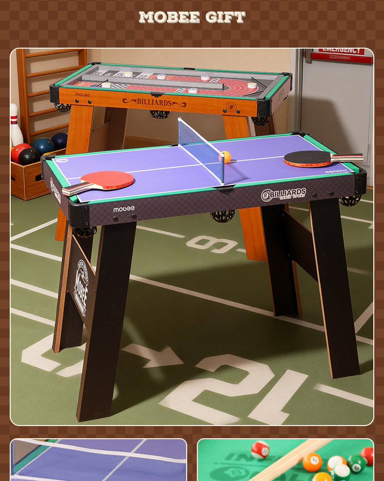 mobee台球桌家用儿童多功能游戏桌室内迷你台球+乒乓球+跳棋+保龄球+冰壶五合一男孩女孩玩具