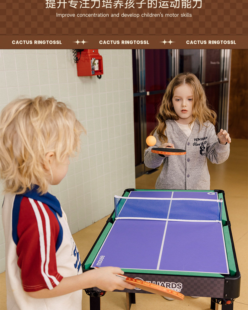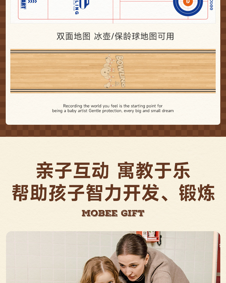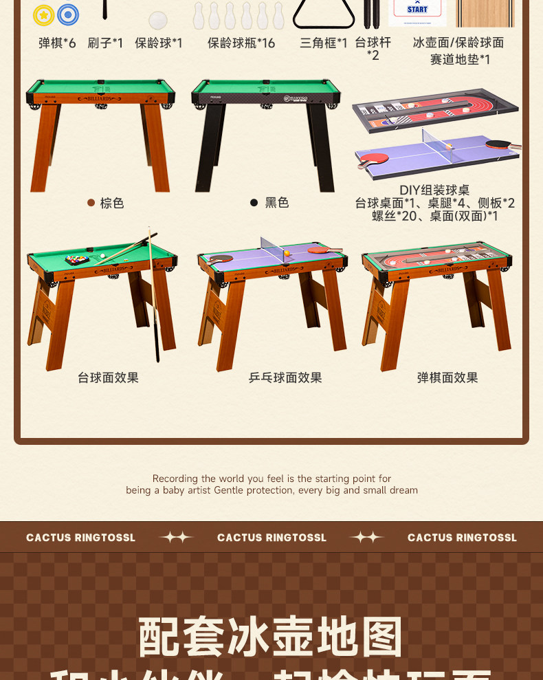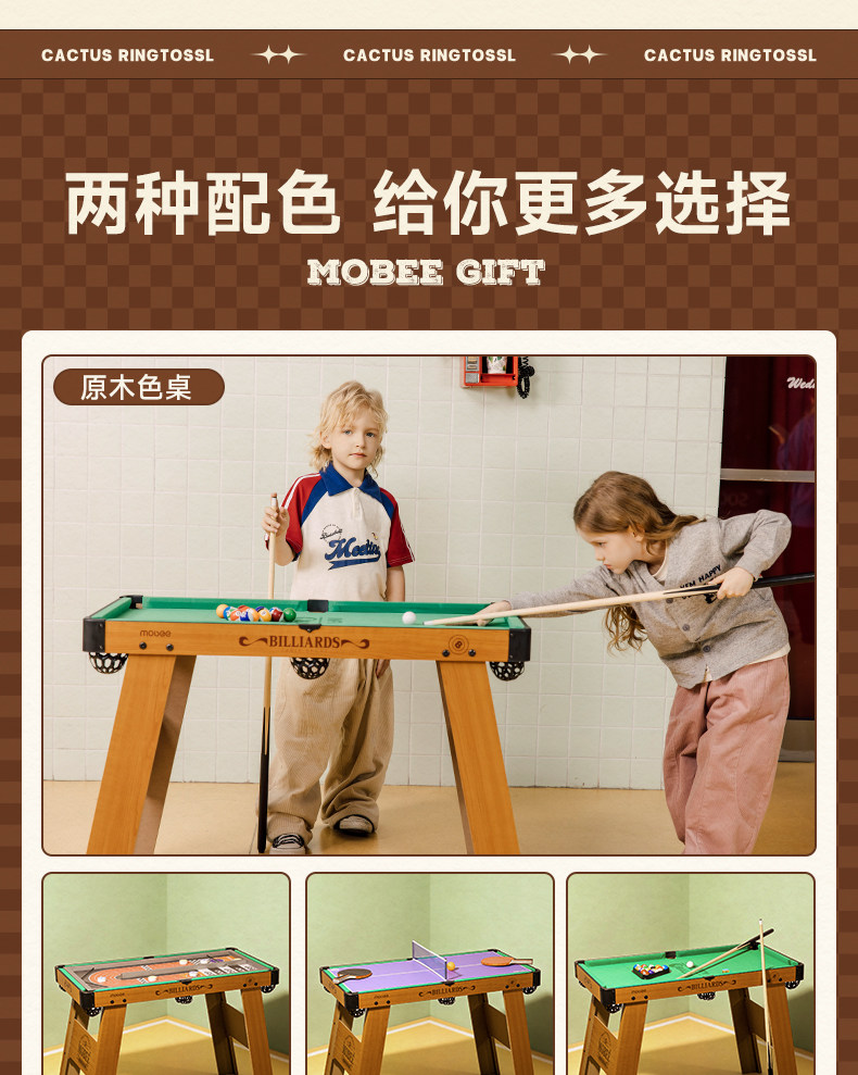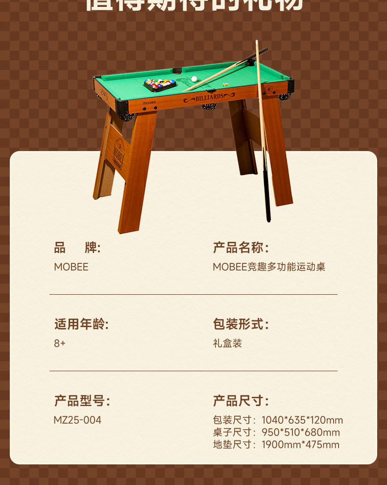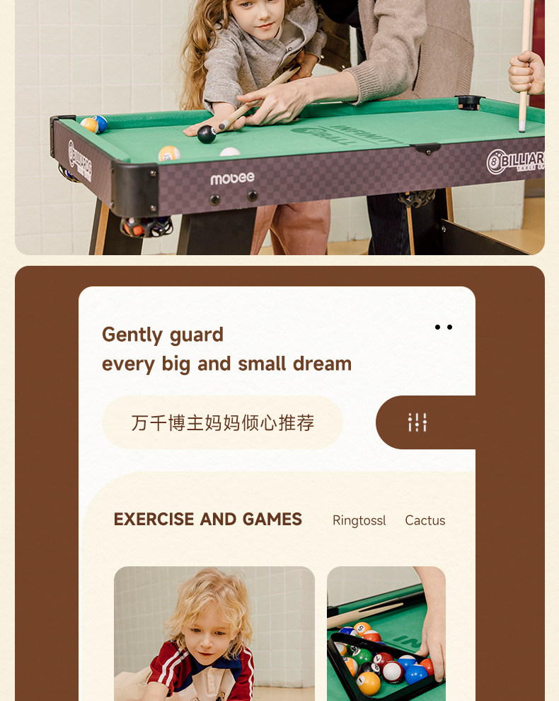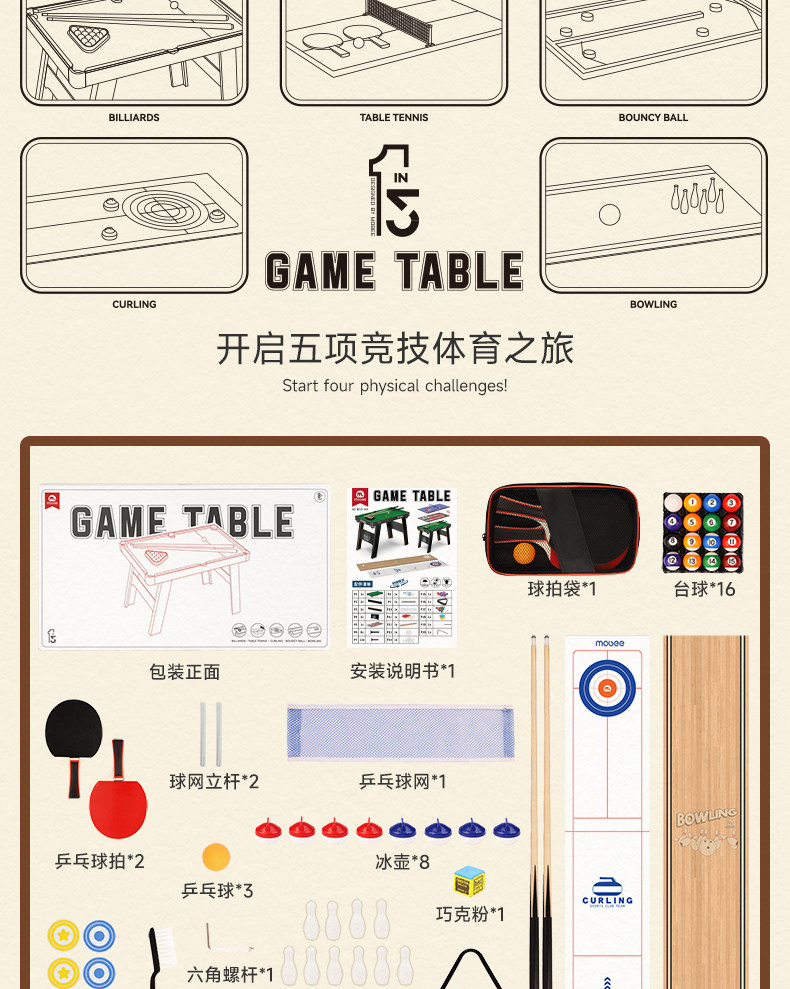mobee台球桌家用儿童多功能游戏桌室内迷你台球+乒乓球+跳棋+保龄球+冰壶五合一男孩女孩玩具