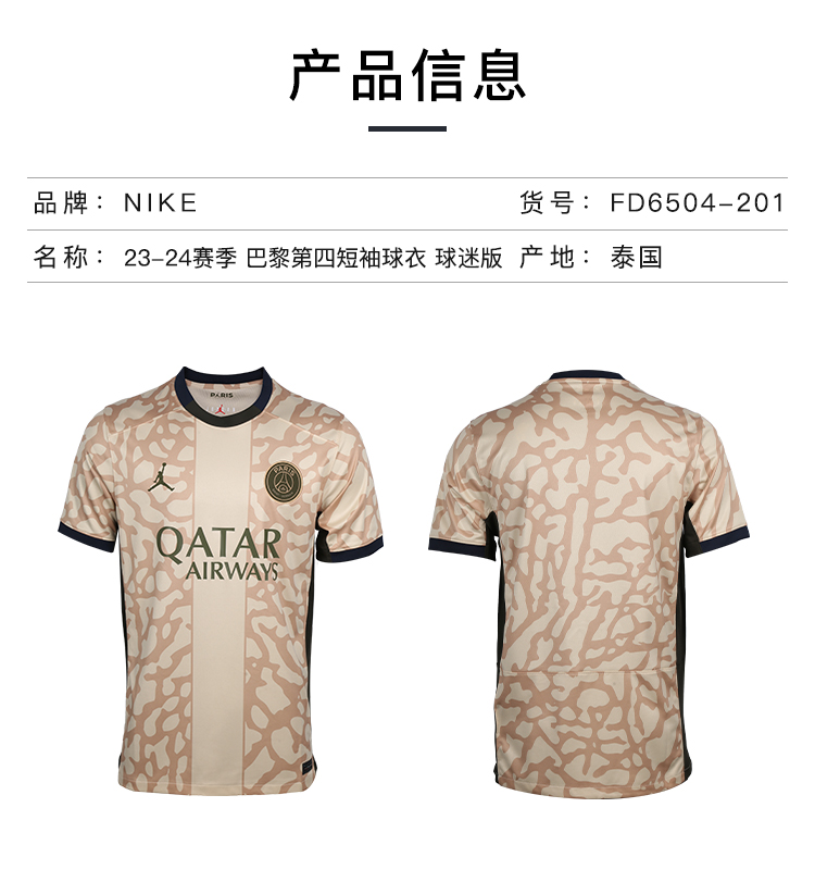 NIKE/耐克23-24赛季巴黎第四球迷版球衣成人短袖男FD6504-201