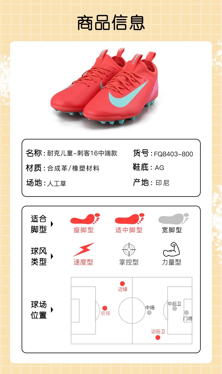 小李子耐克儿童足球鞋刺客16MG短钉魔术贴学生训练鞋FQ8290-800