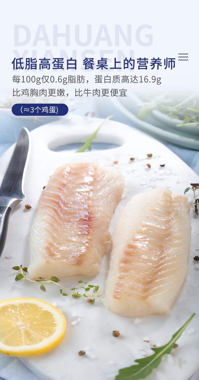 【品名】大黄鲜森狭鳕鱼鱼柳